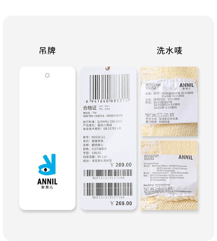 【实体店同款】女童圆领背心秋季新款安奈儿童装XG532121