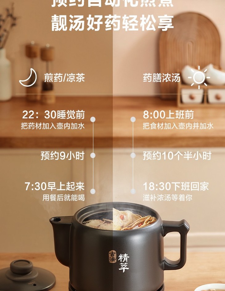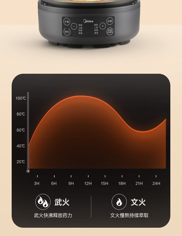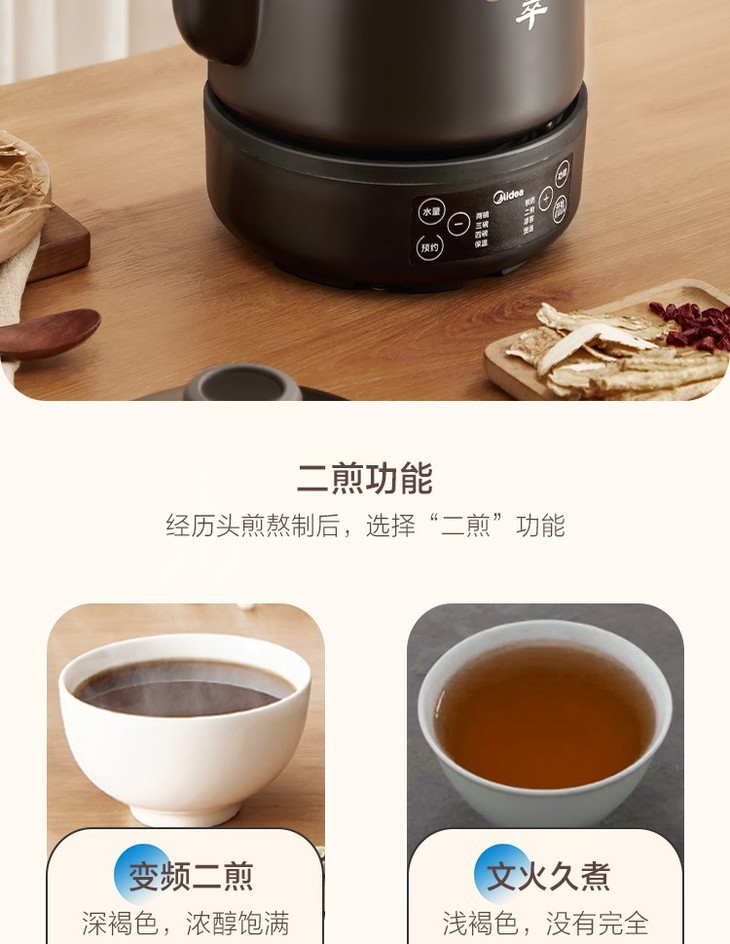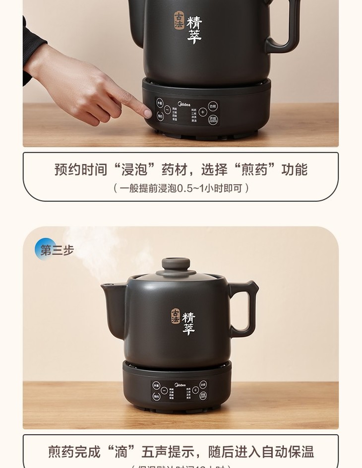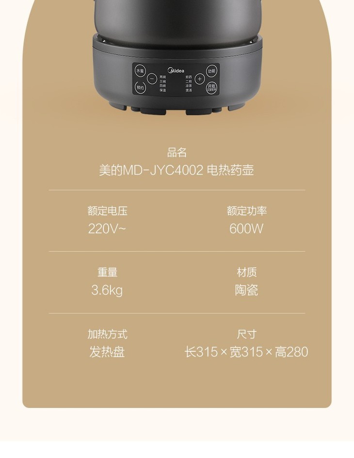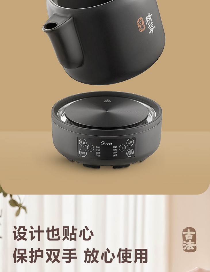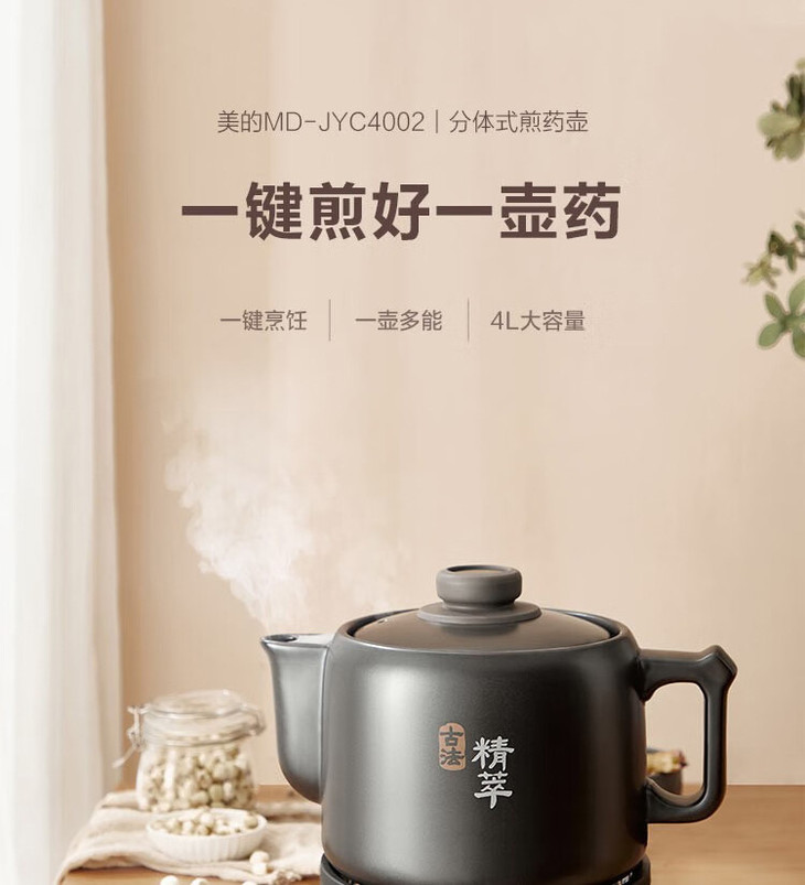 【美的 MD-JYC3002煎药壶3L】防干烧全自动预约 煎药煲汤多功能 3升分体陶瓷养生壶