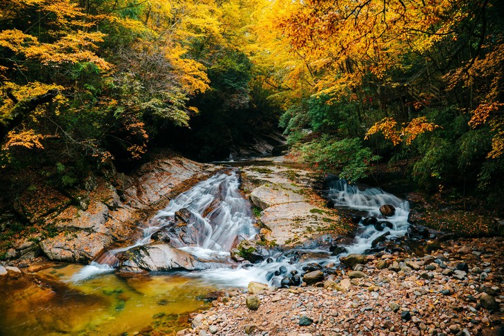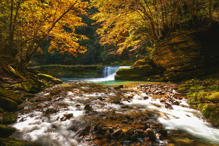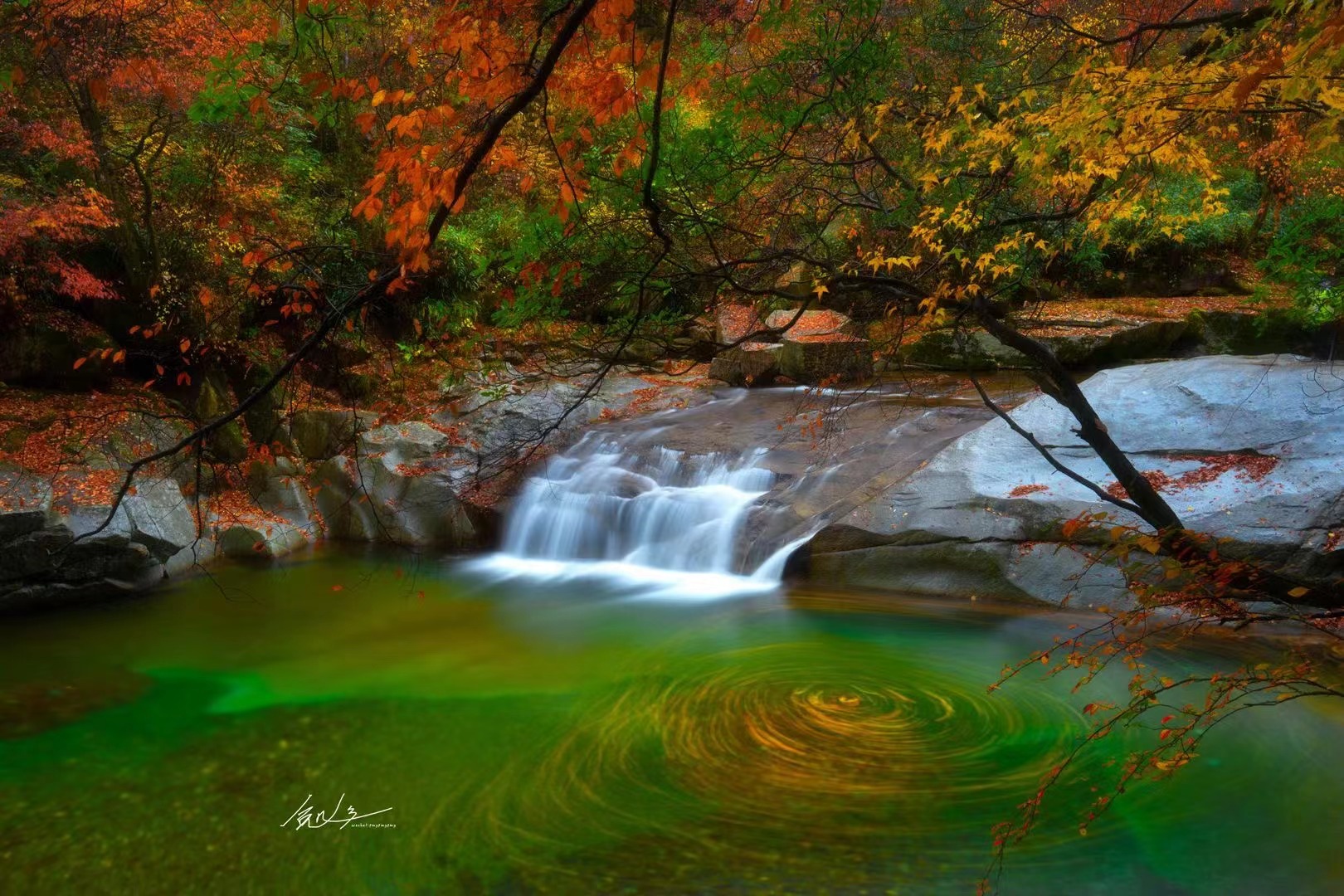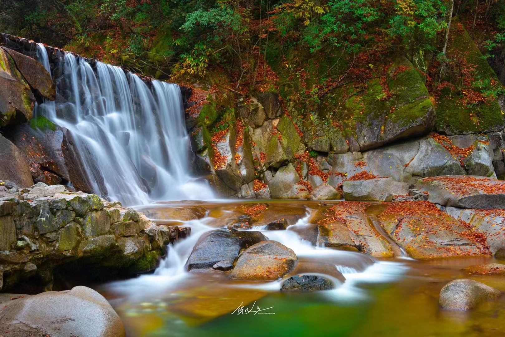 从红尘峡启程,万亩红叶如火海般蔓延,色彩斑斓,是镜头下的绝佳景致。随后漫步至枫林瀑布,红叶与瀑布相映成趣,每一帧都是自然的杰作。