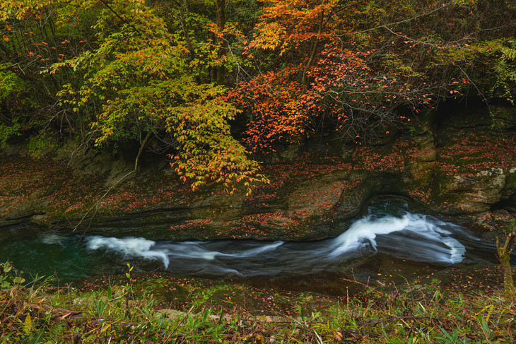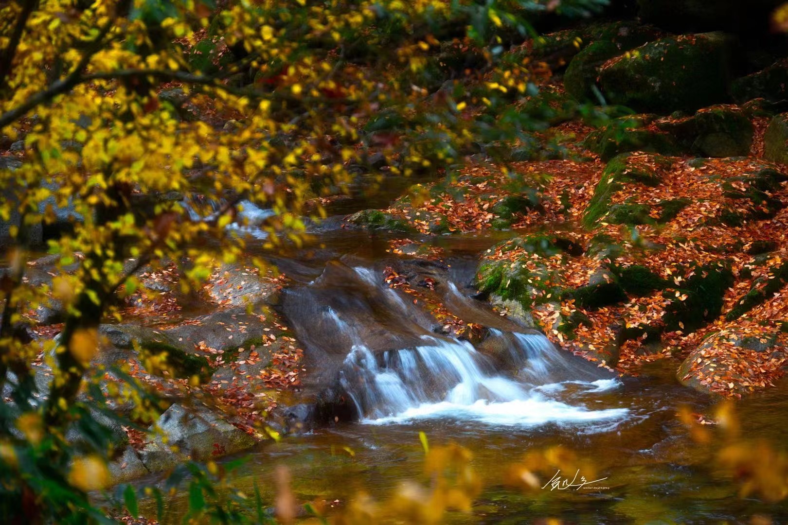 早起,搭乘缆车拍摄燕子岭云海日出,之后前往十八月潭景区拍摄创作。十八月潭,漫山的红叶随着秋风飘落,整座光雾山都在下着红叶雨,红叶沿着溪流在流淌,遇到漩涡就不停的回旋,非常的漂亮;