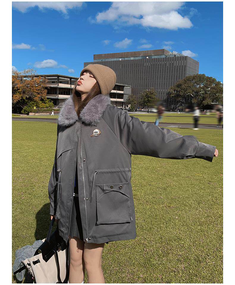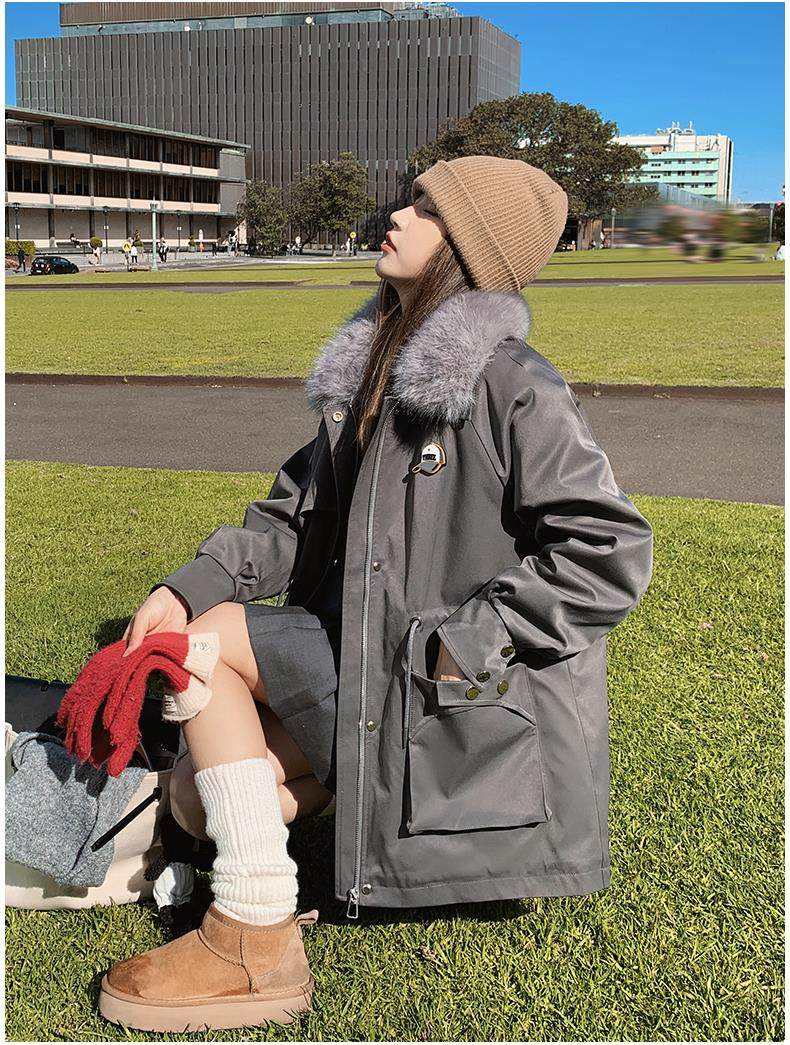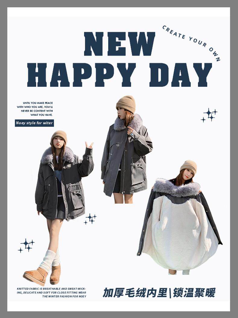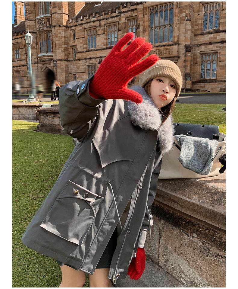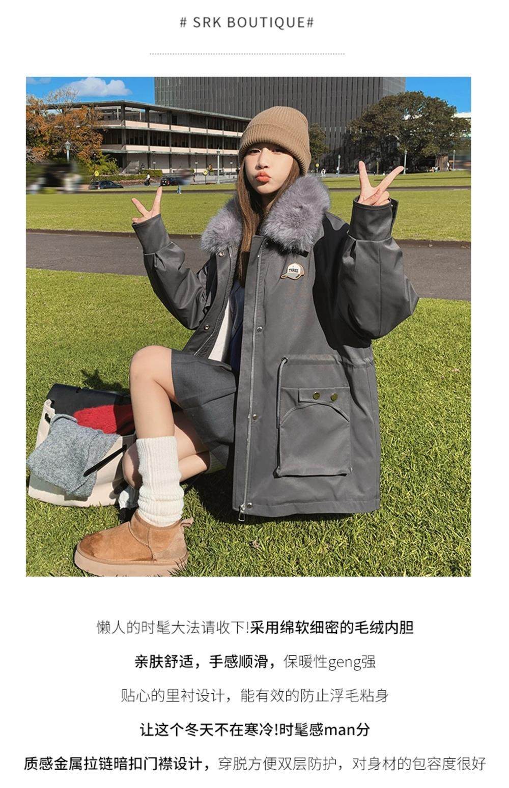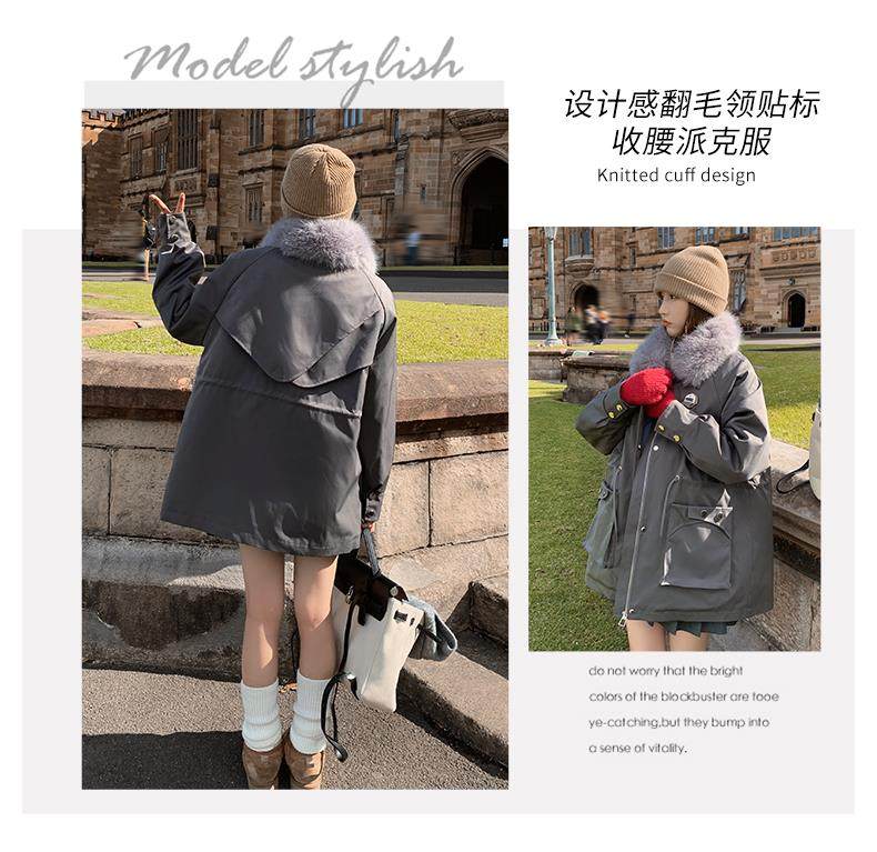 🔥🔥加绒【环保皮草】秋冬工装风加绒中长棉服-喜出