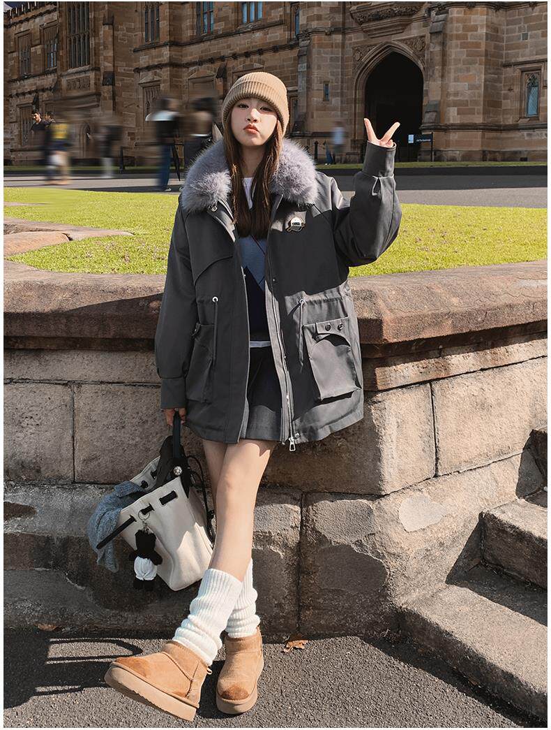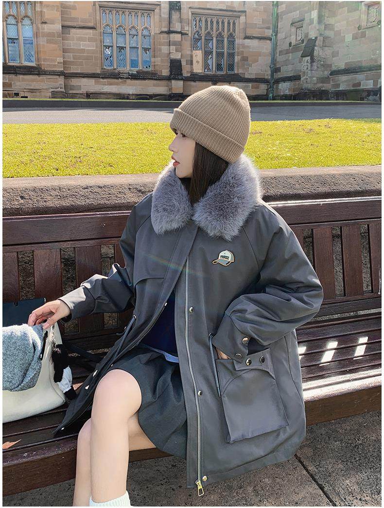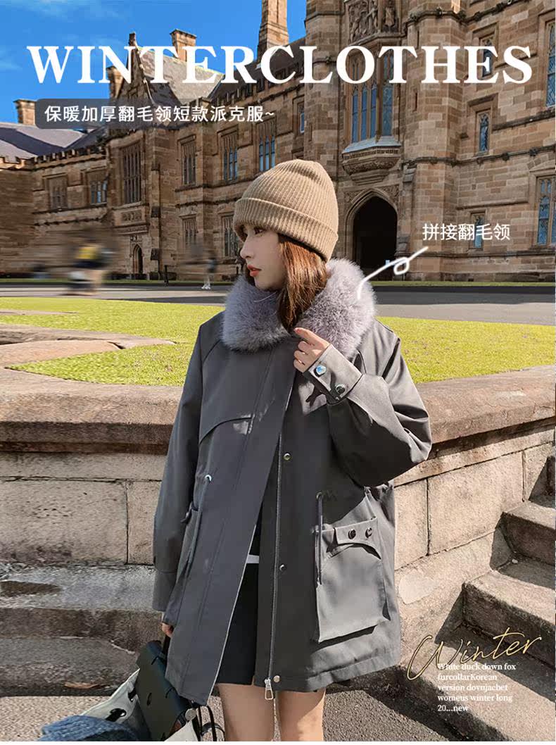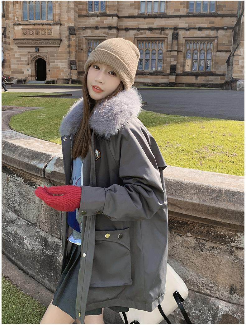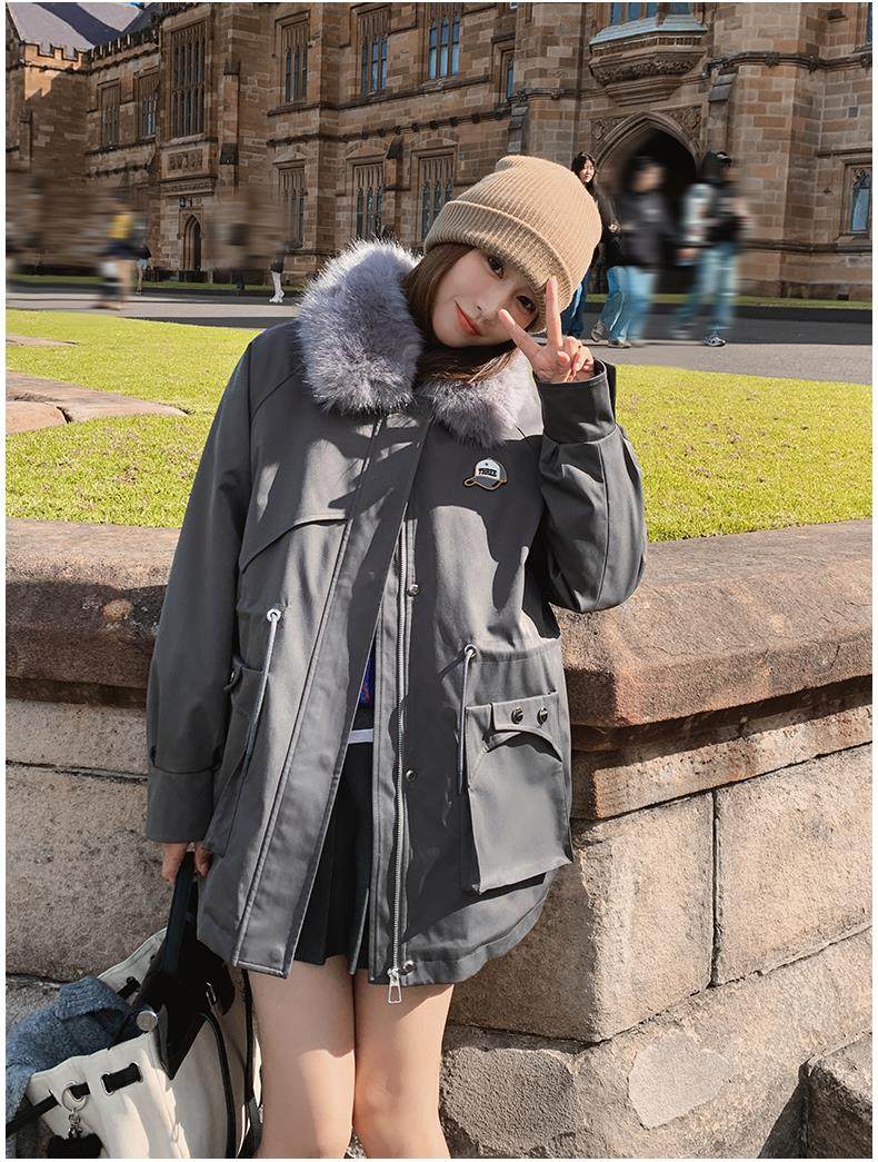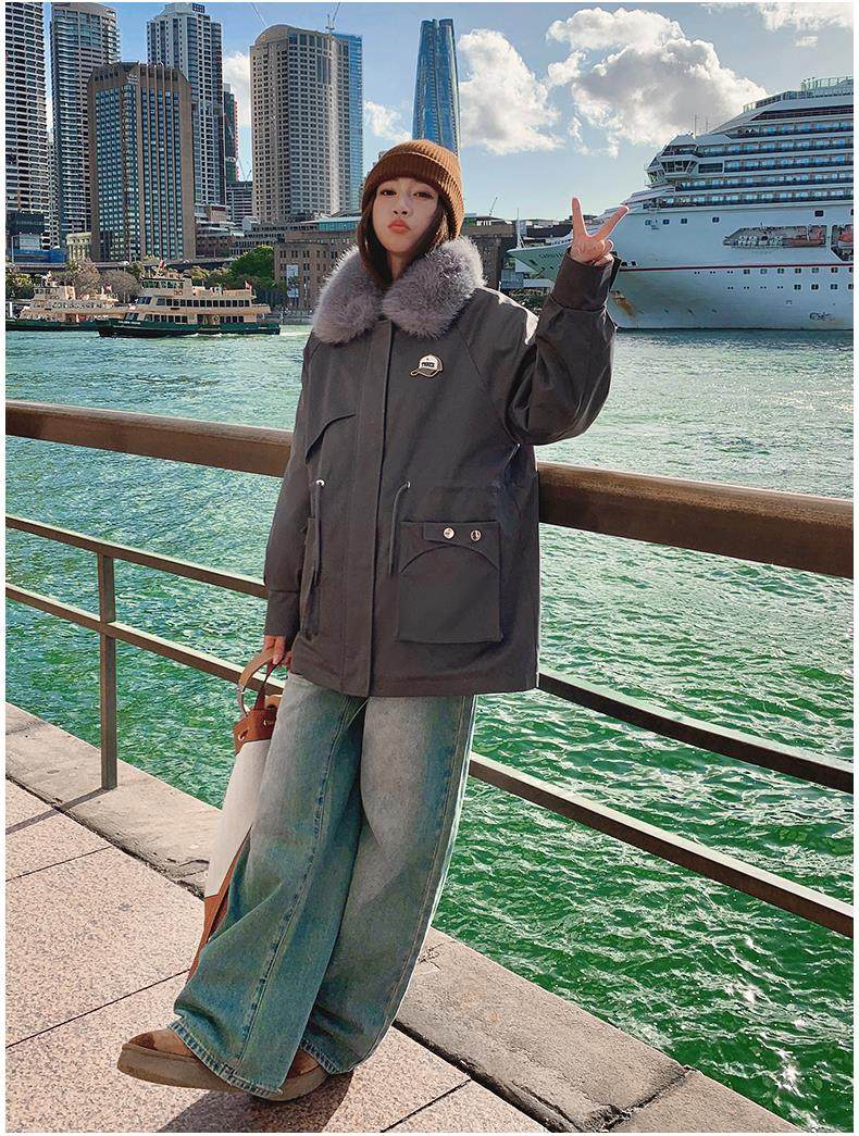 🔥🔥加绒【环保皮草】秋冬工装风加绒中长棉服-喜出