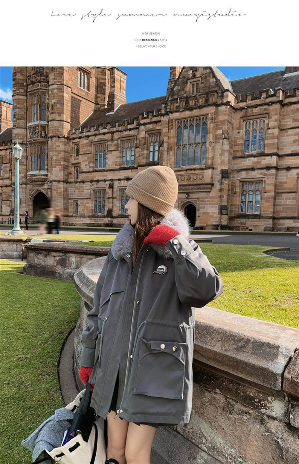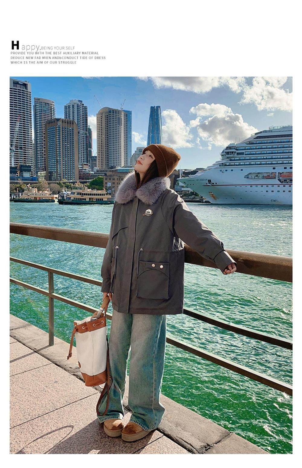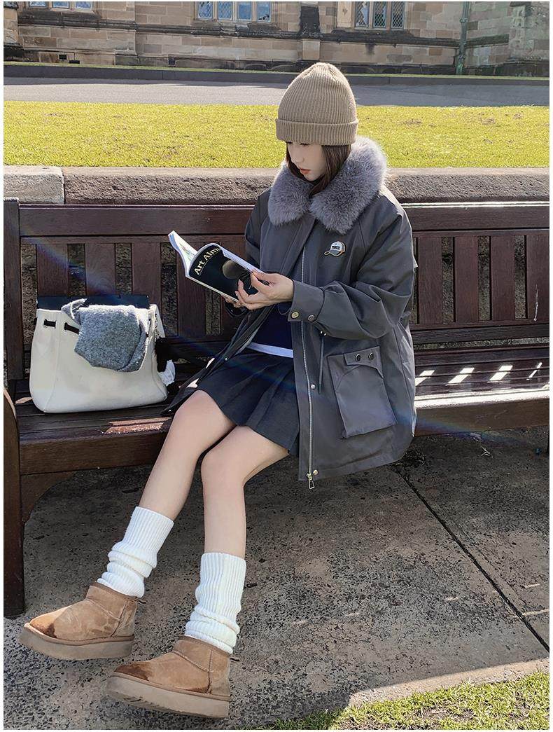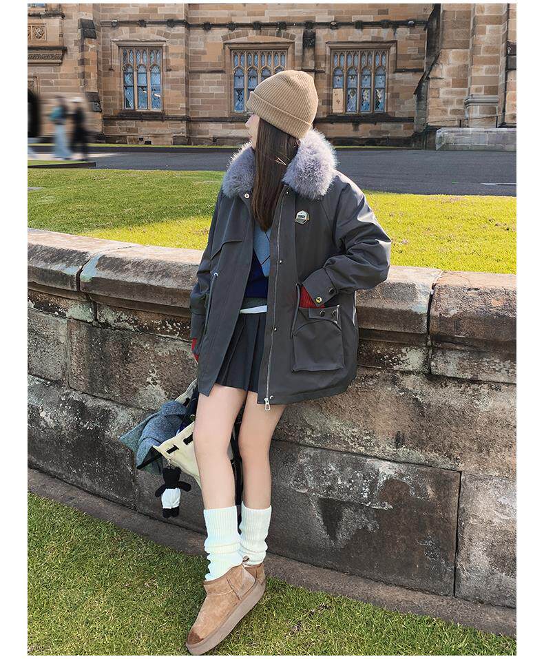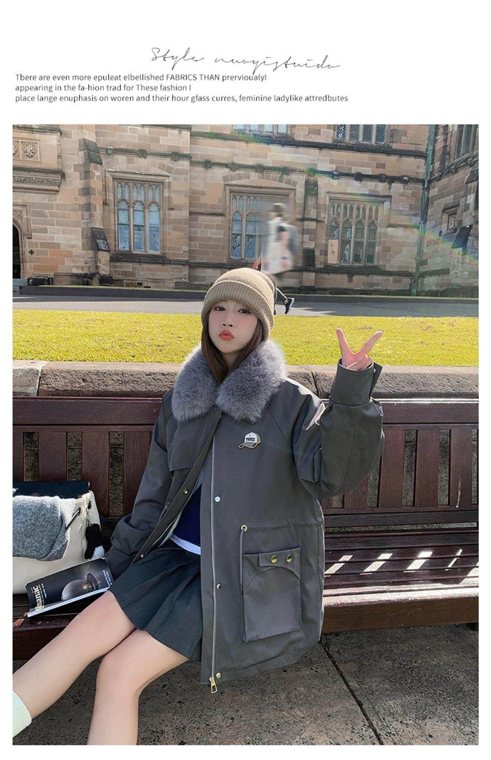 🔥🔥加绒【环保皮草】秋冬工装风加绒中长棉服-喜出