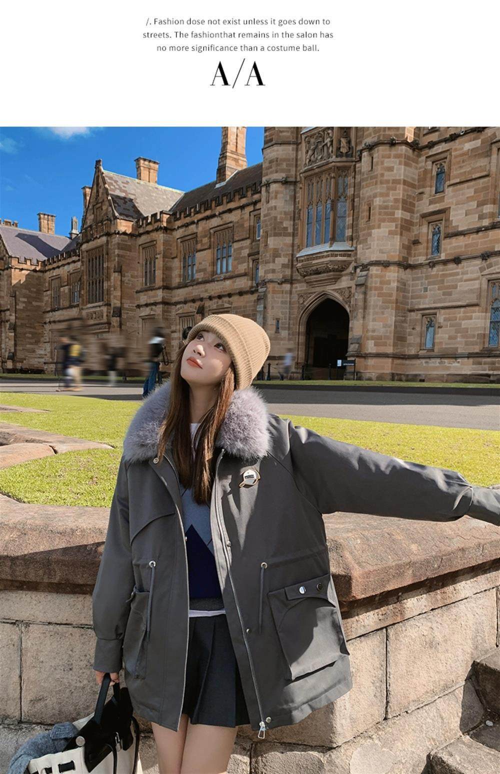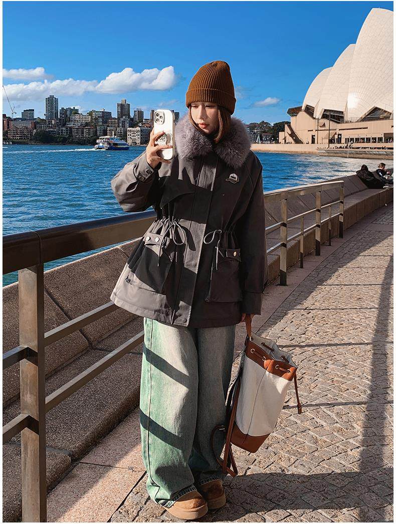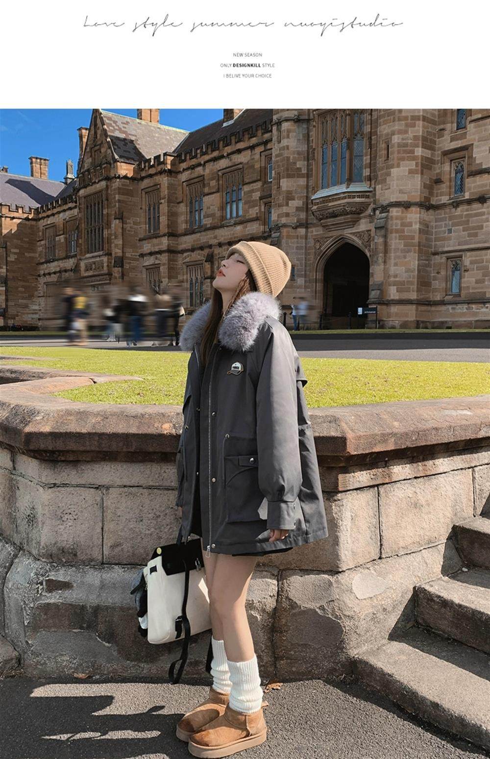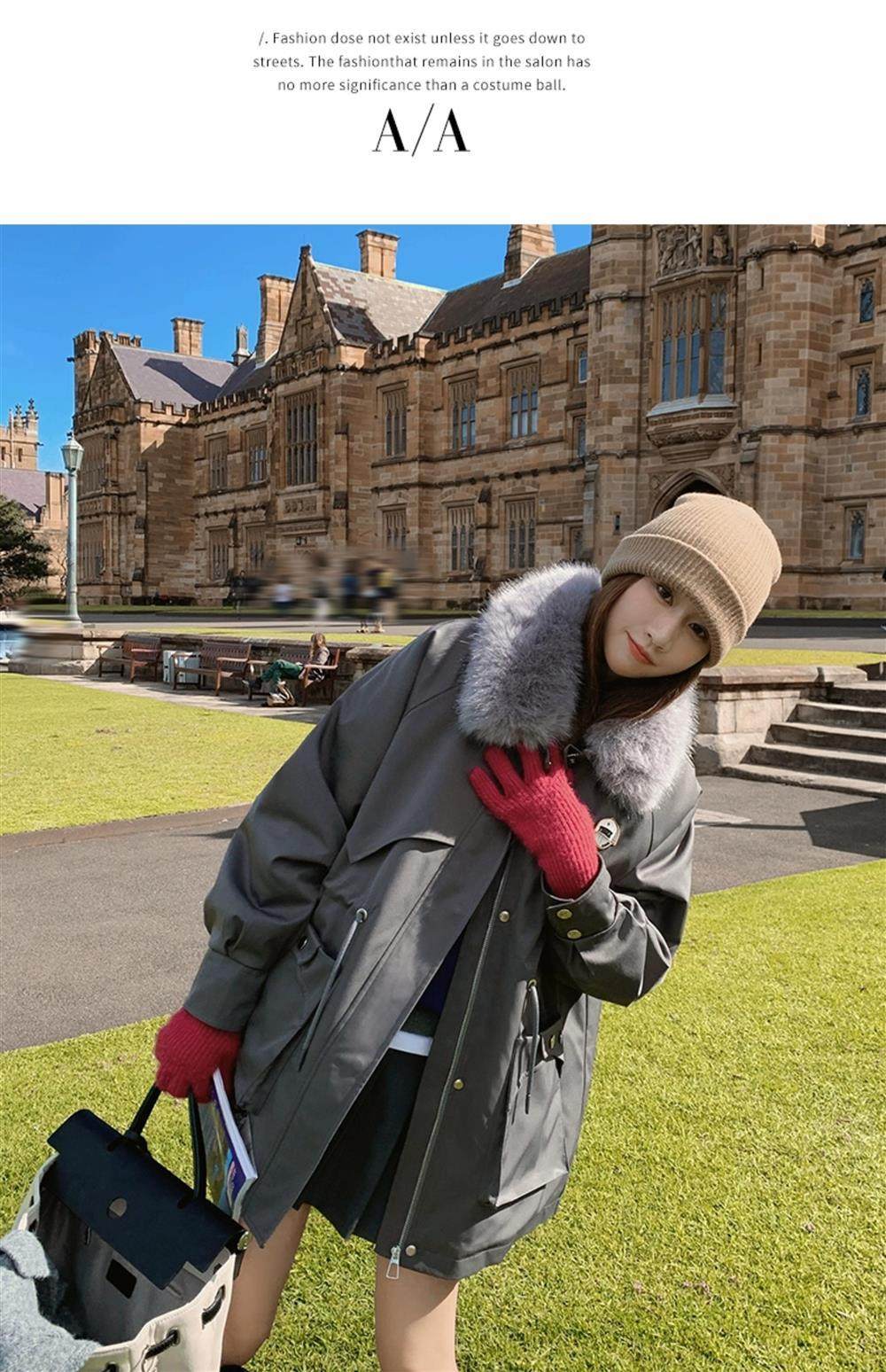 🔥🔥加绒【环保皮草】秋冬工装风加绒中长棉服-喜出