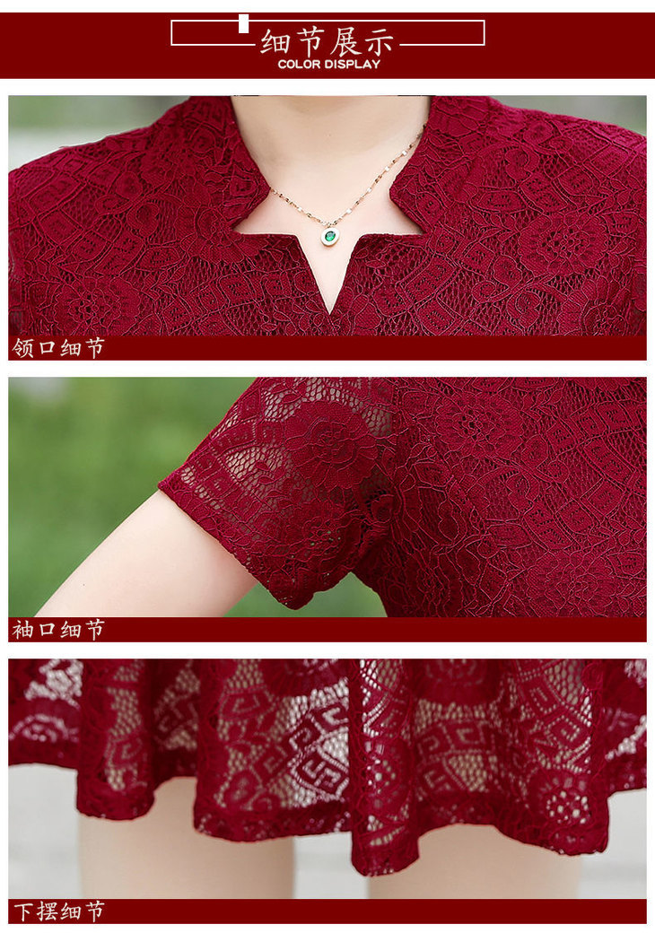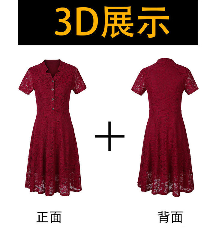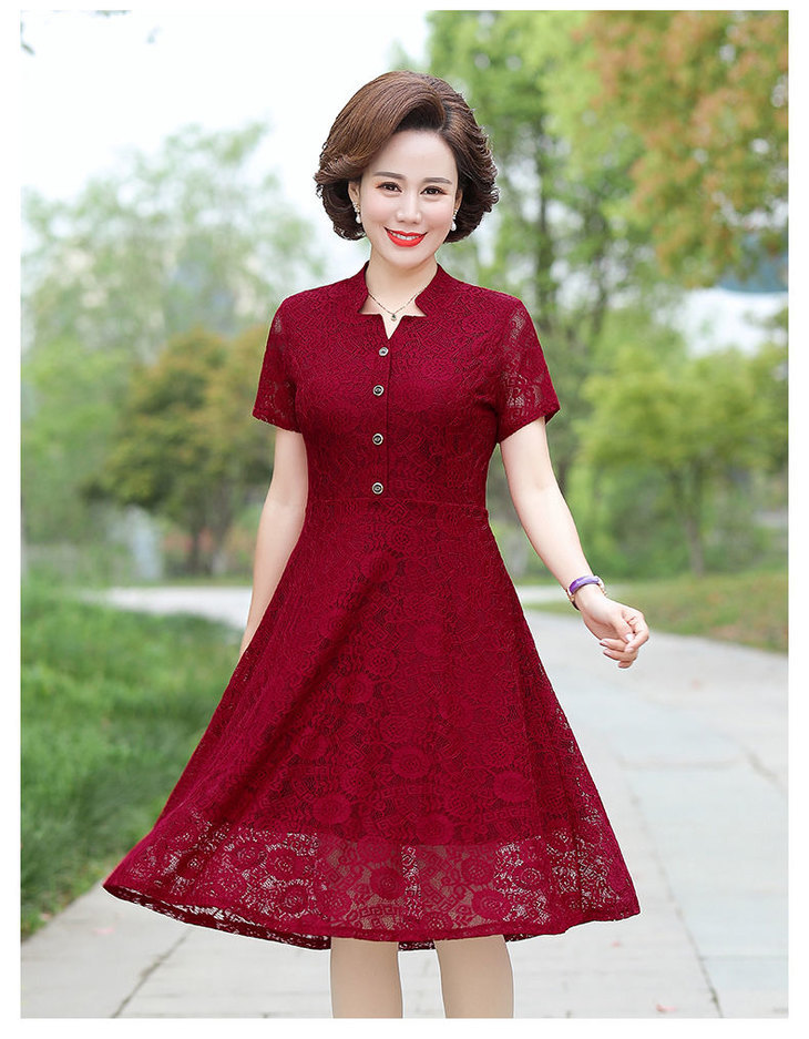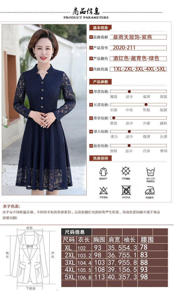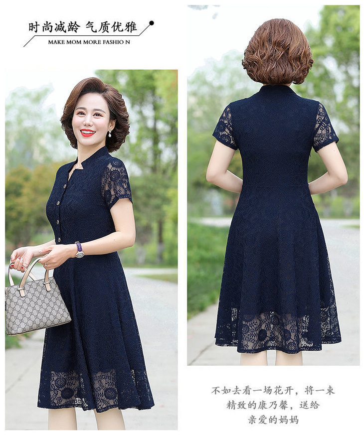YQ-555 妈妈装短袖裙子女中长款长袖连衣裙网纱蕾丝裙纯色春季修身裙