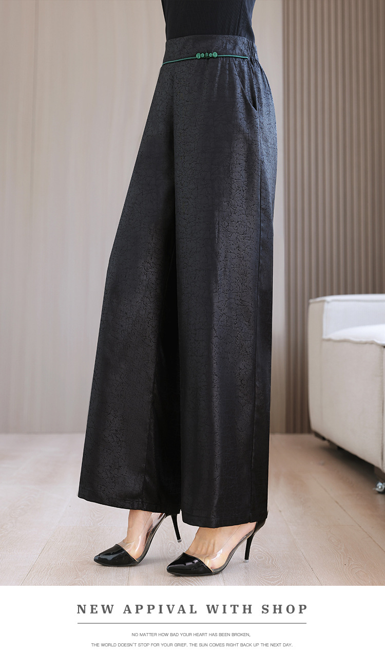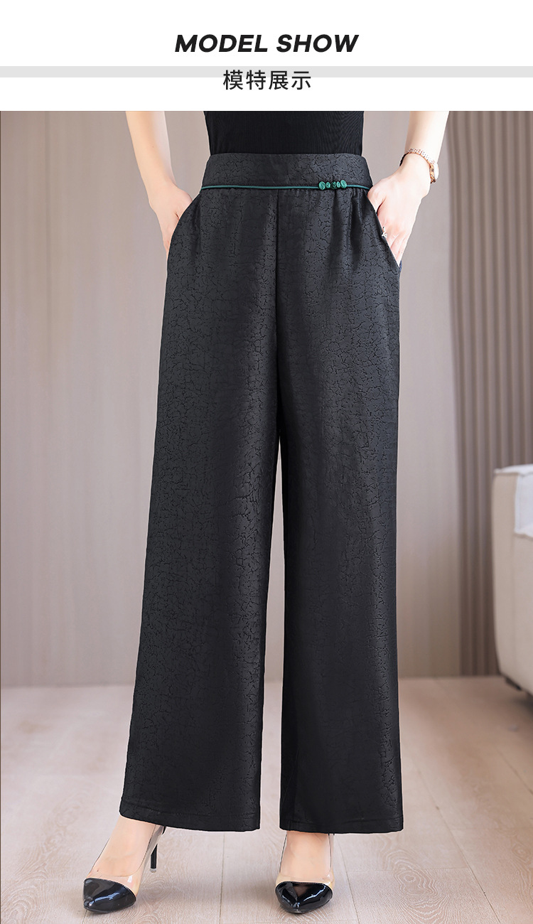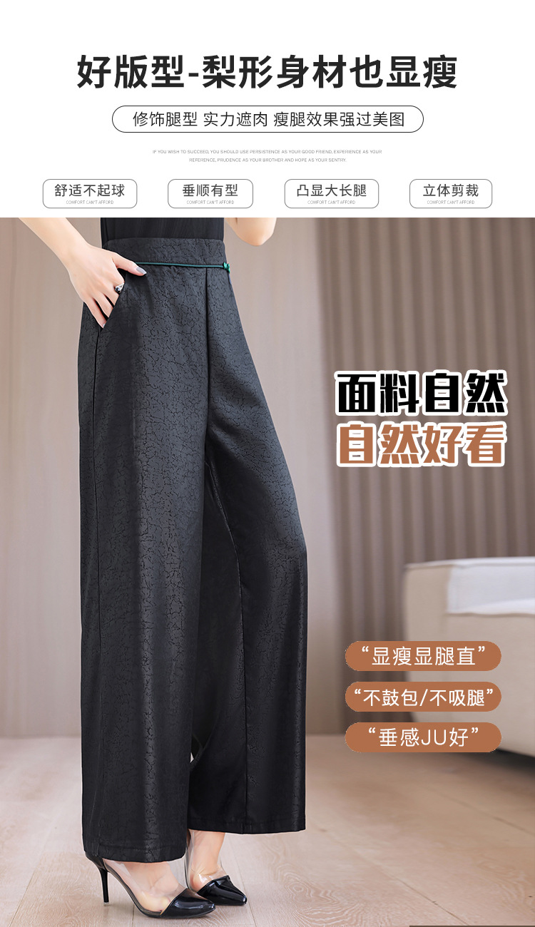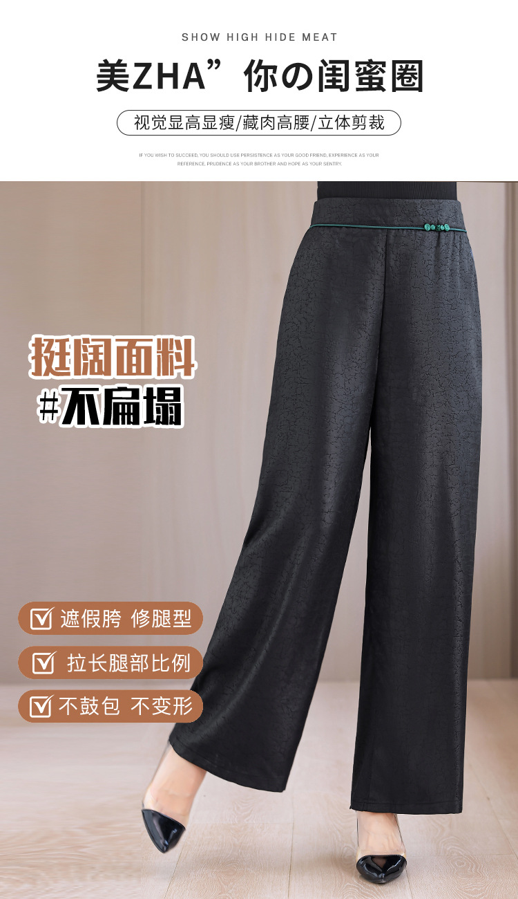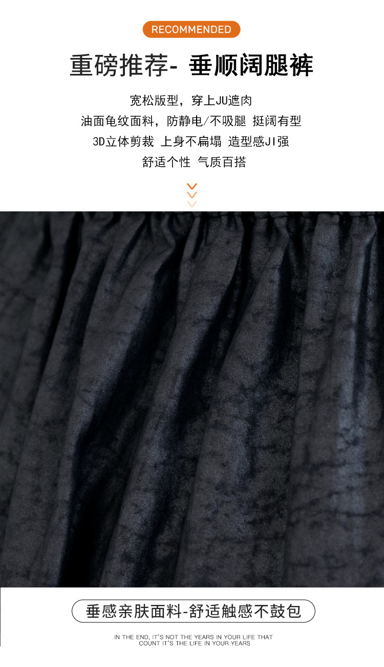 KQL 422H5305休闲裤松紧腰宽松大码高腰垂感阔腿裤