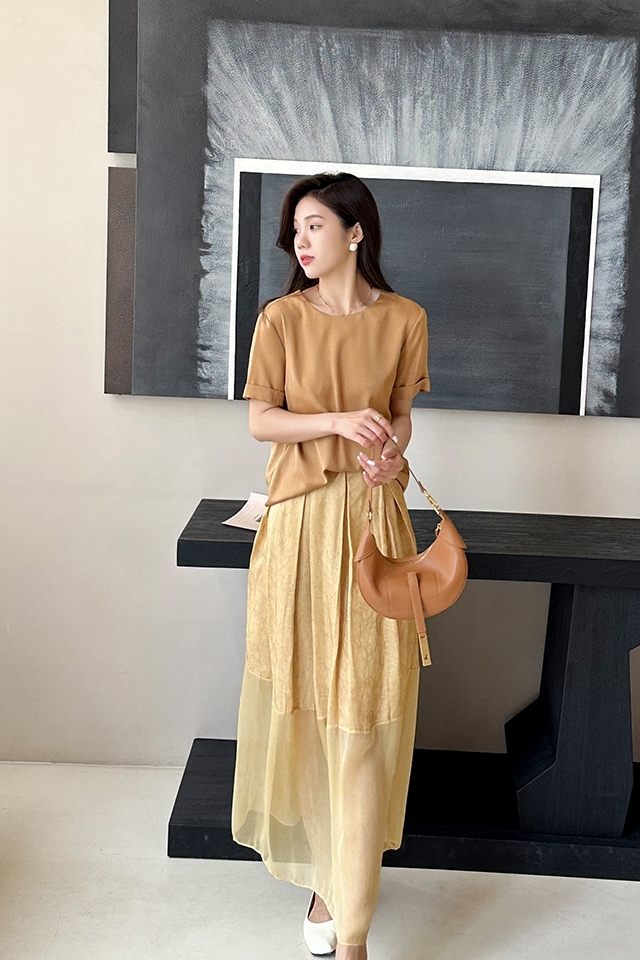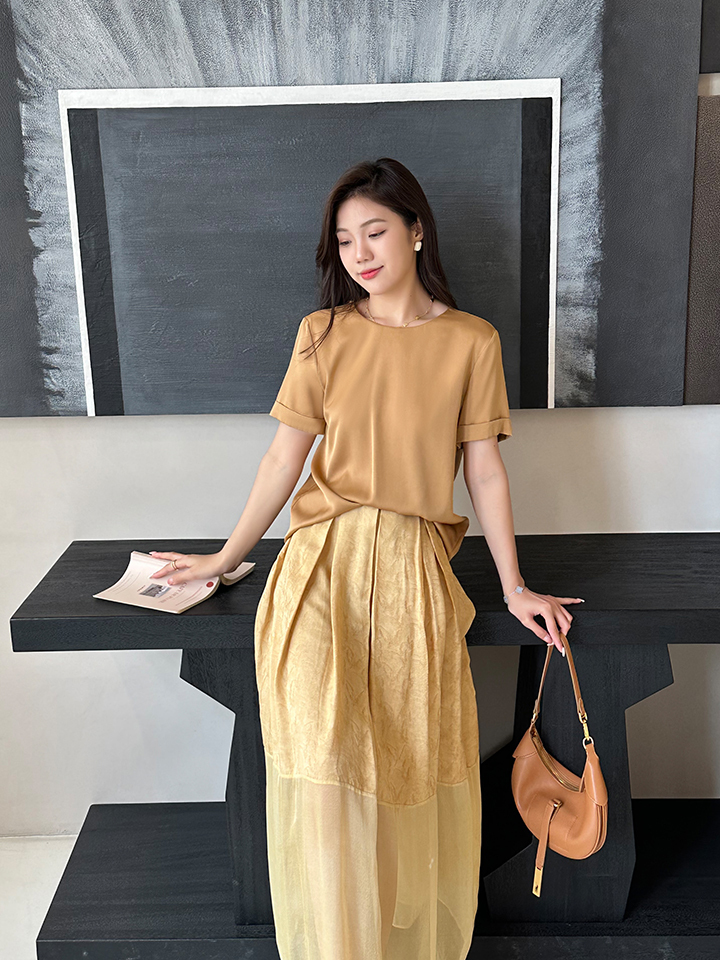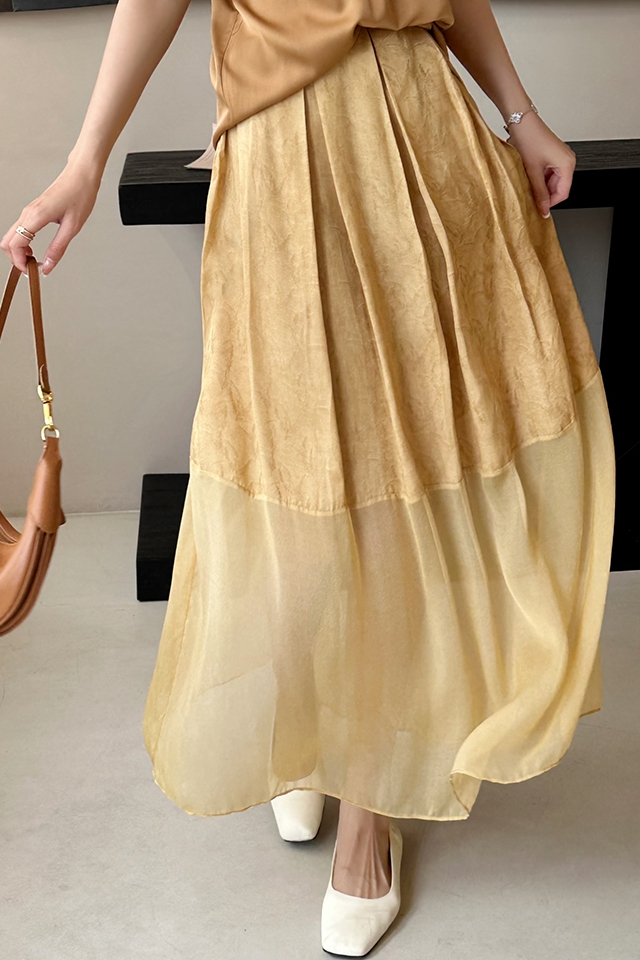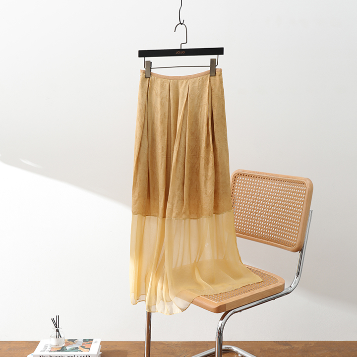 洛诗琳04612气质拼接半身裙2025夏季蚕丝混纺暗纹提花裙22211