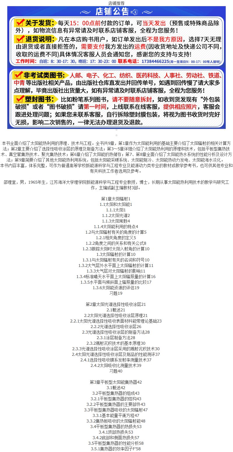 太阳能热利用技术 邵理堂 太阳能光热转换及其利用技术 太阳能热利用的原理技术与工程 新能源科学与工程 能源动力类专业应用教材 化学工业出版社 9787122399090