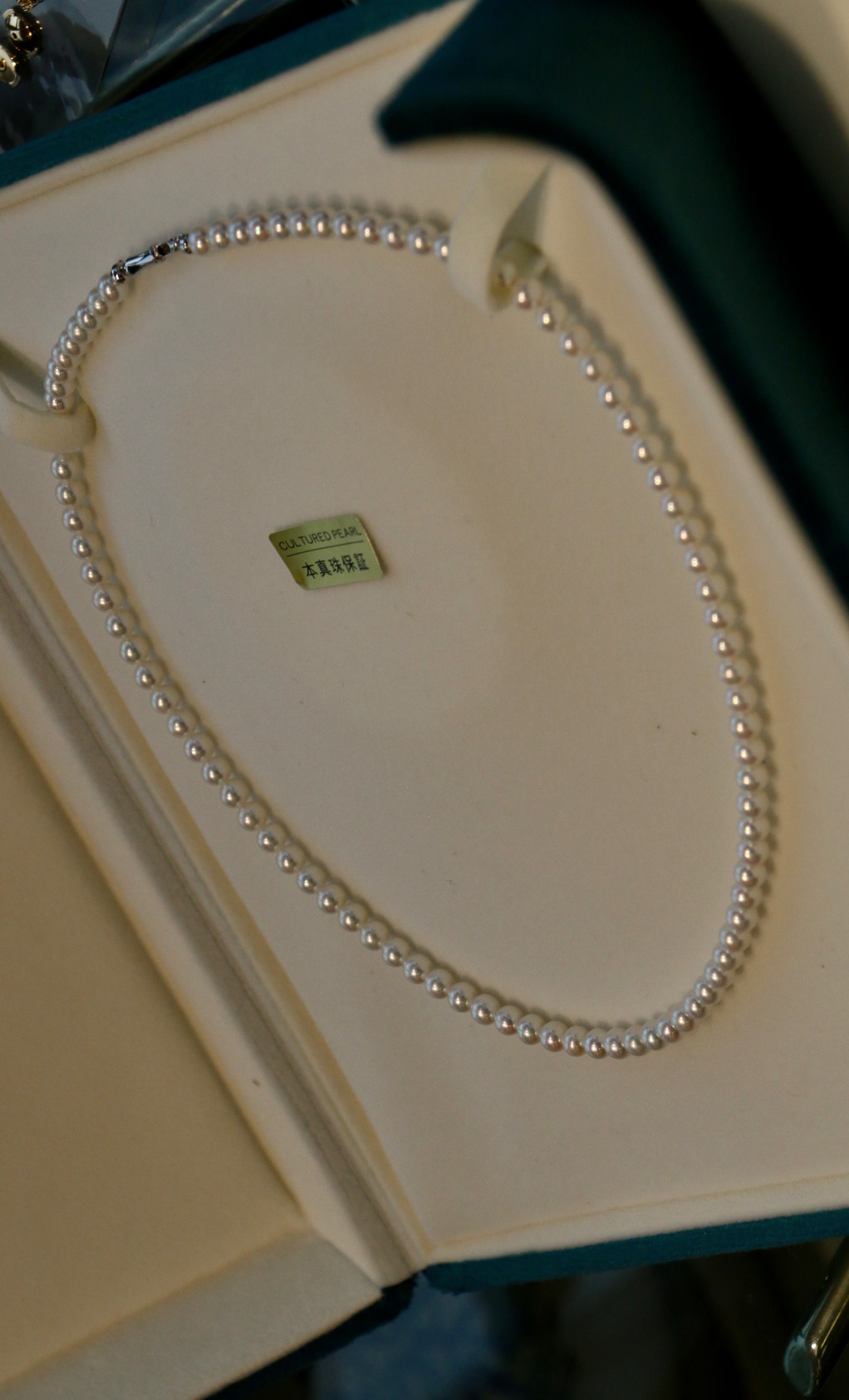 甄珠贝 4-5mm 天花板级别 精品国珠 超亮 正圆无暇 进口925银竹节扣
