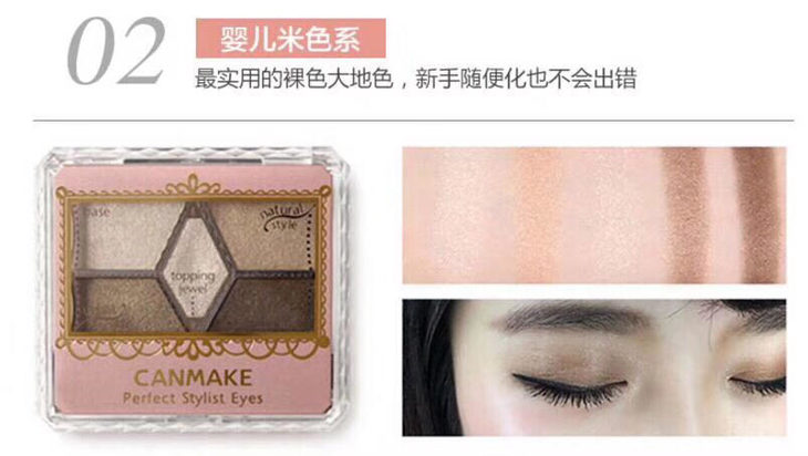 日本CANMAKE五色眼影:#02 🔥🔥井田五色雕刻眼影🌺 細膩顯色⭐ ,👇🏻包裝很小巧 方便攜帶 ,👌🏻自帶刷子,㊙️只需花一點時間塗上眼影就能感受到完妝後的不同肌膚透出亮麗淡紅色澤👣,而且效果持久。🎄 無論是耀眼的眼妝或是含蓄的妝感✌ 最後🉐迭上透明的亮粉讓雙眼如寶石般璀璨。