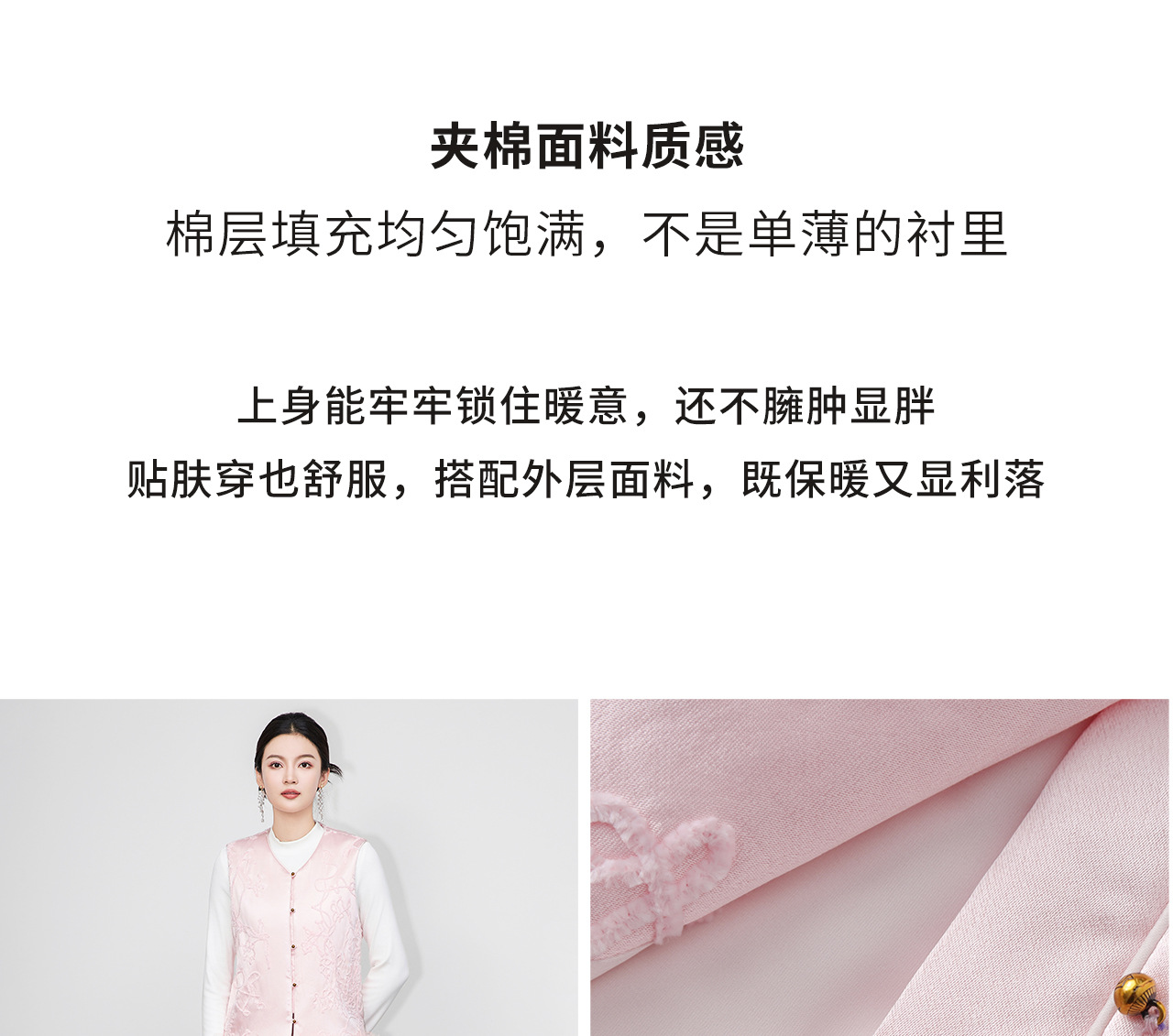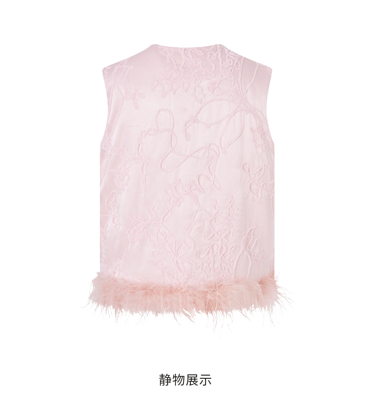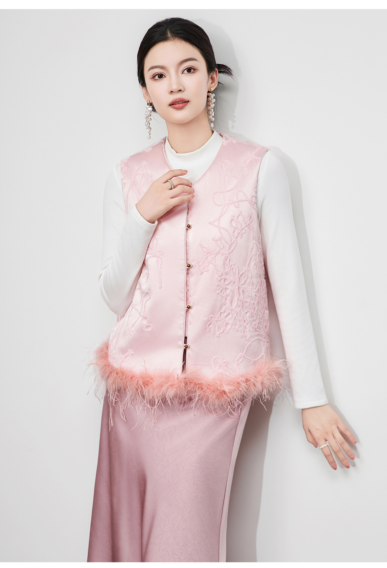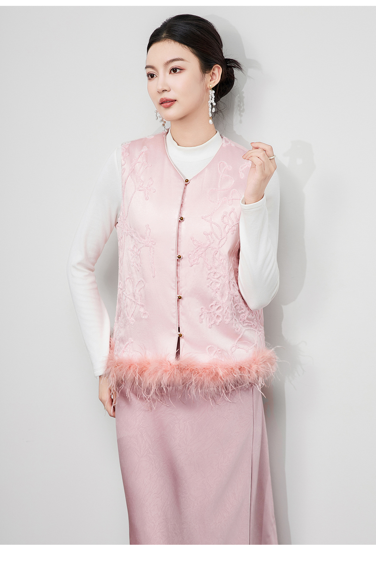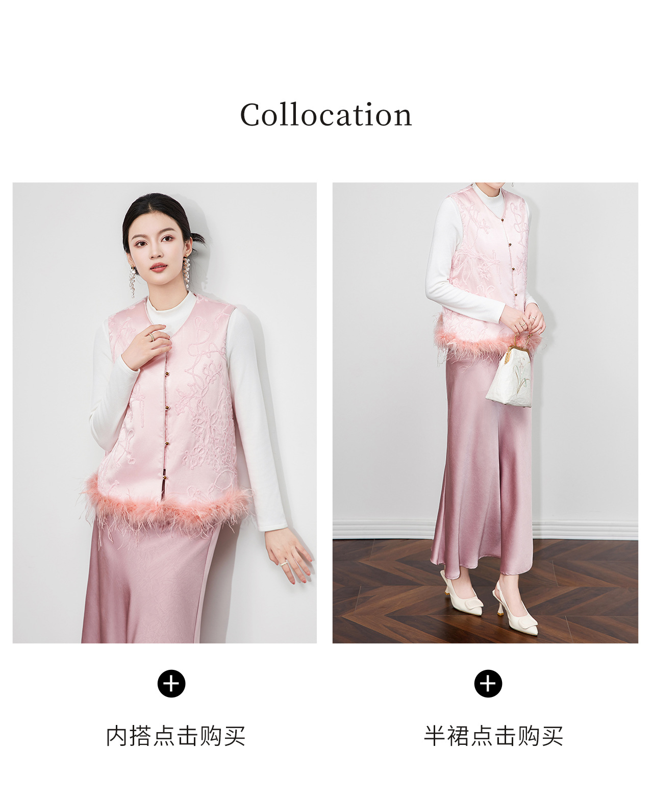 「高货wl」全新升级【铂金会员459/天猫619/差价160】(65211)洛诗琳新中式夹棉马甲2025秋冬植绒气质国风鸵鸟毛外套女