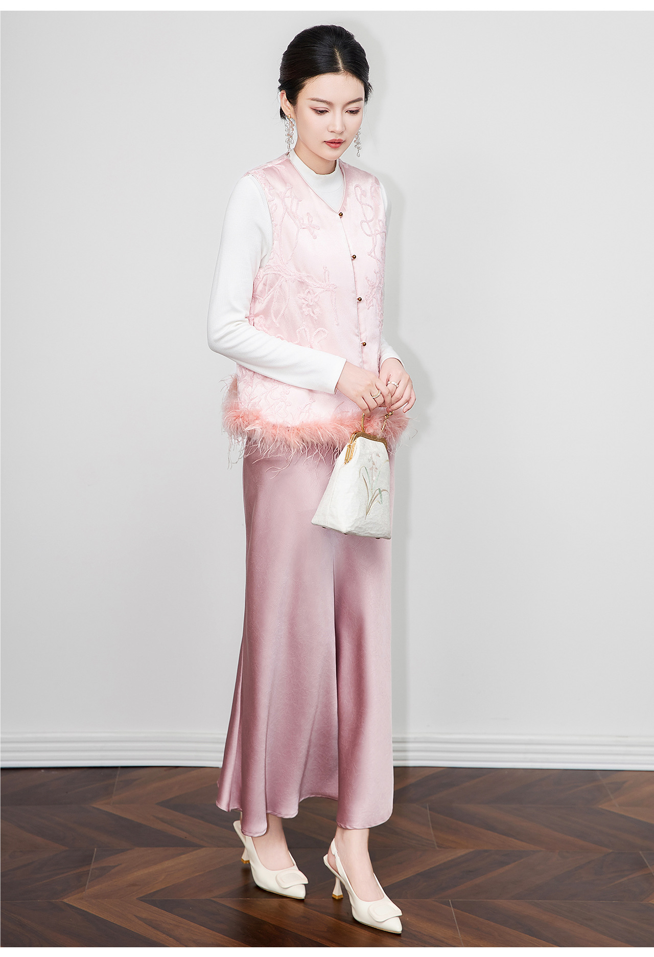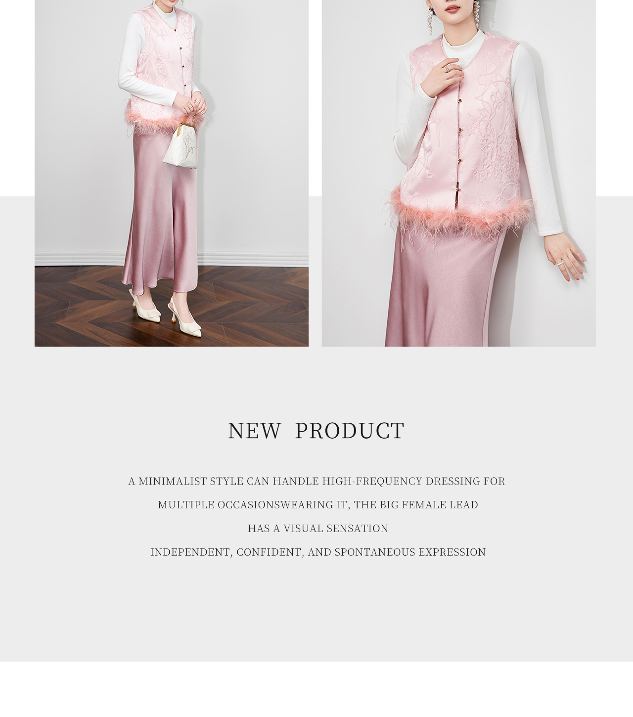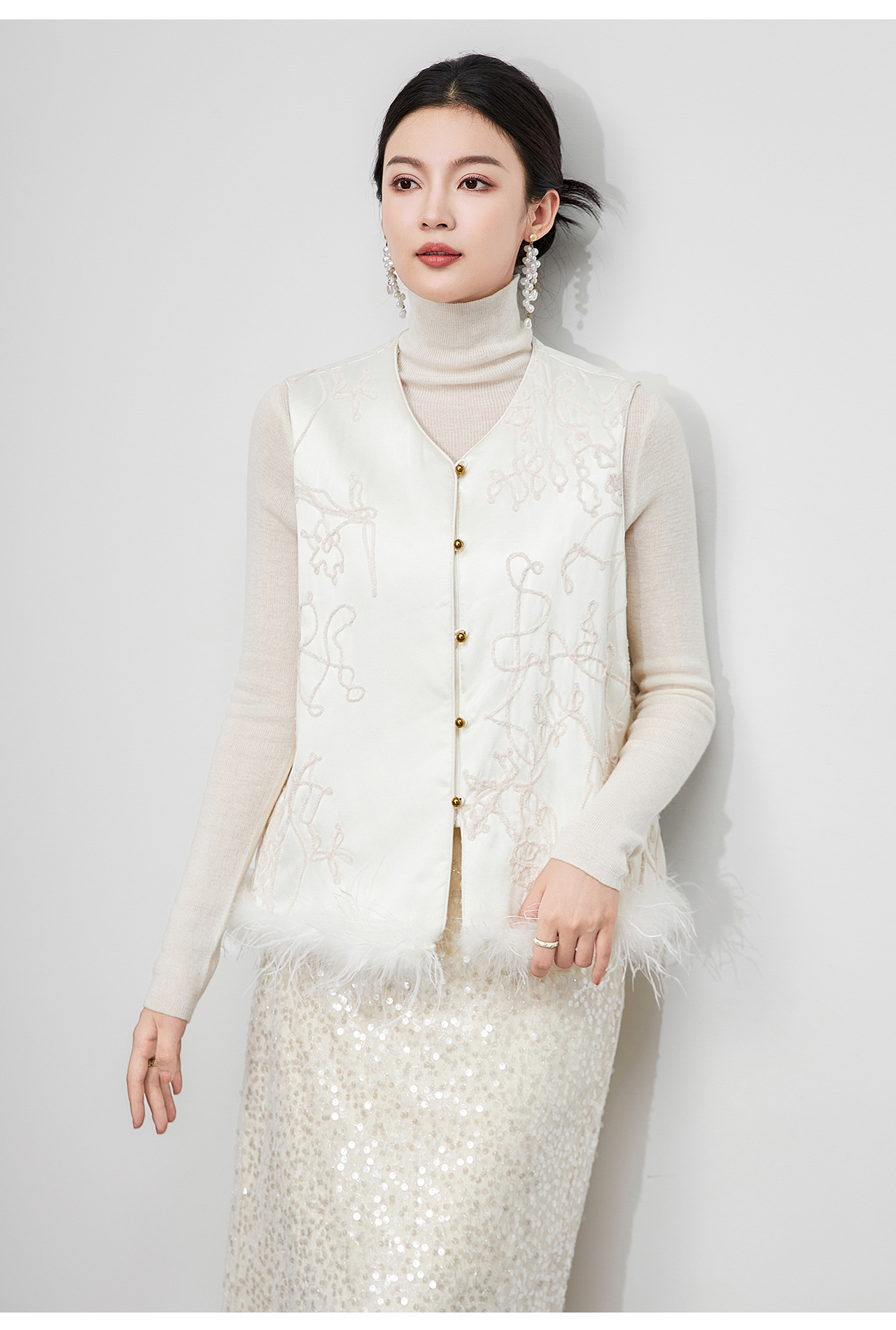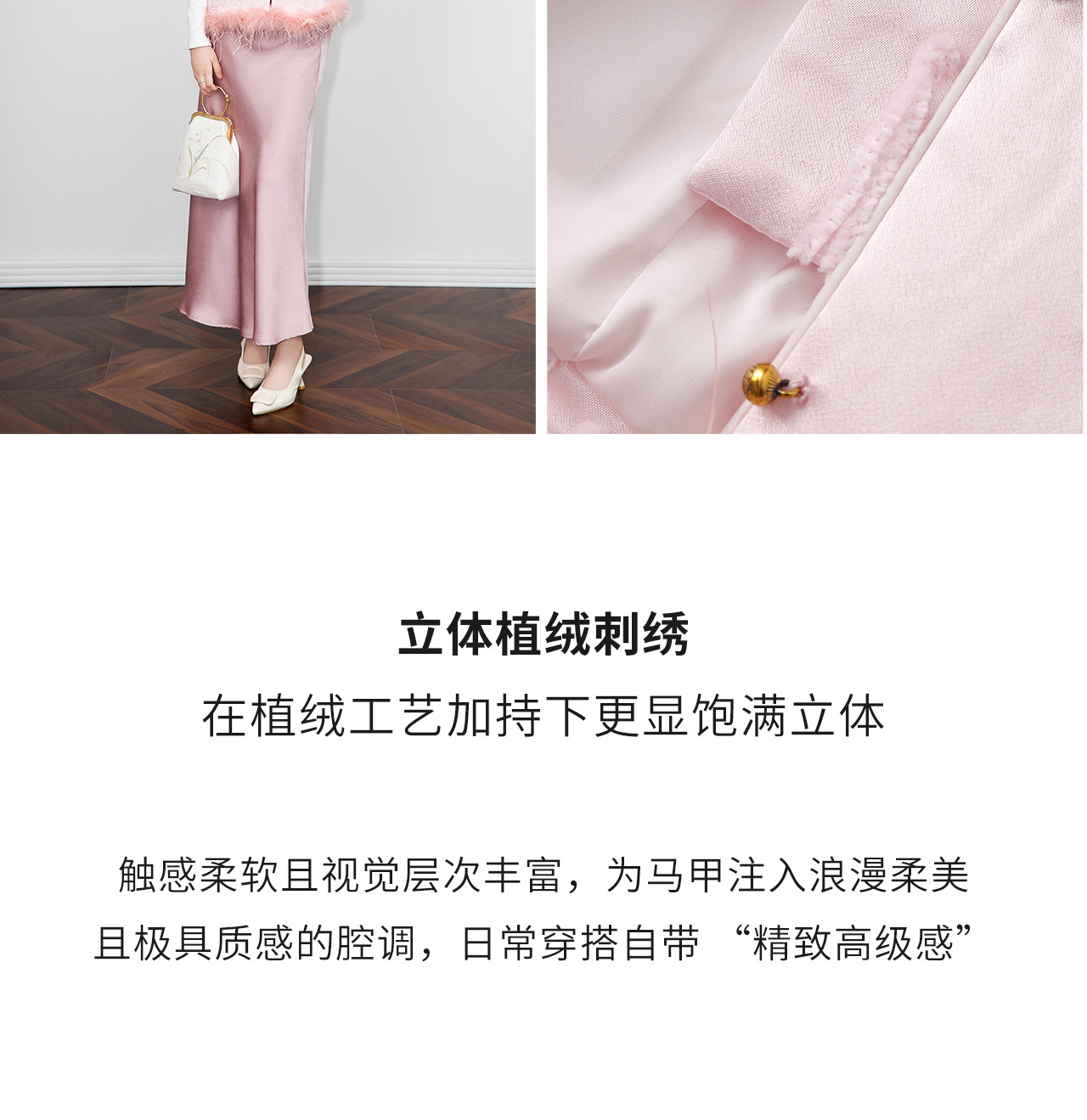 「高货wl」全新升级【铂金会员459/天猫619/差价160】(65211)洛诗琳新中式夹棉马甲2025秋冬植绒气质国风鸵鸟毛外套女
