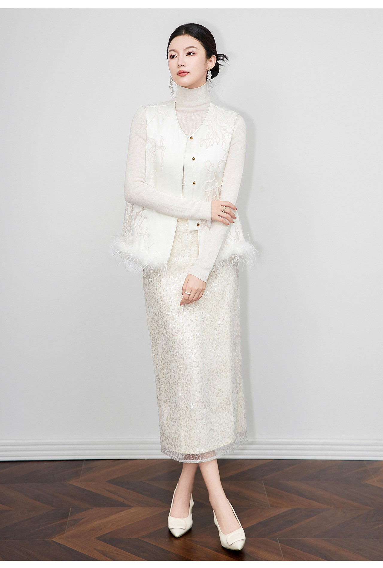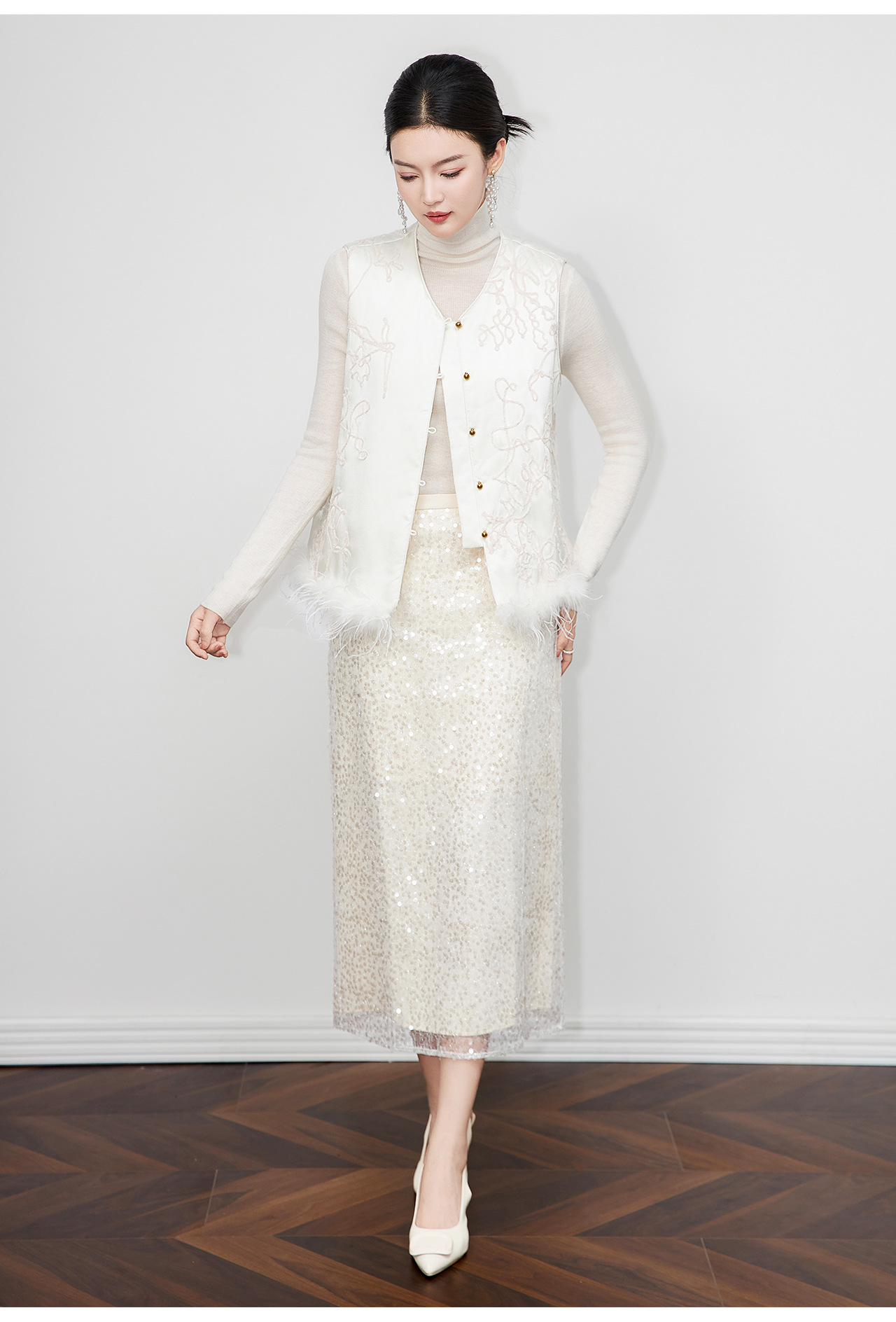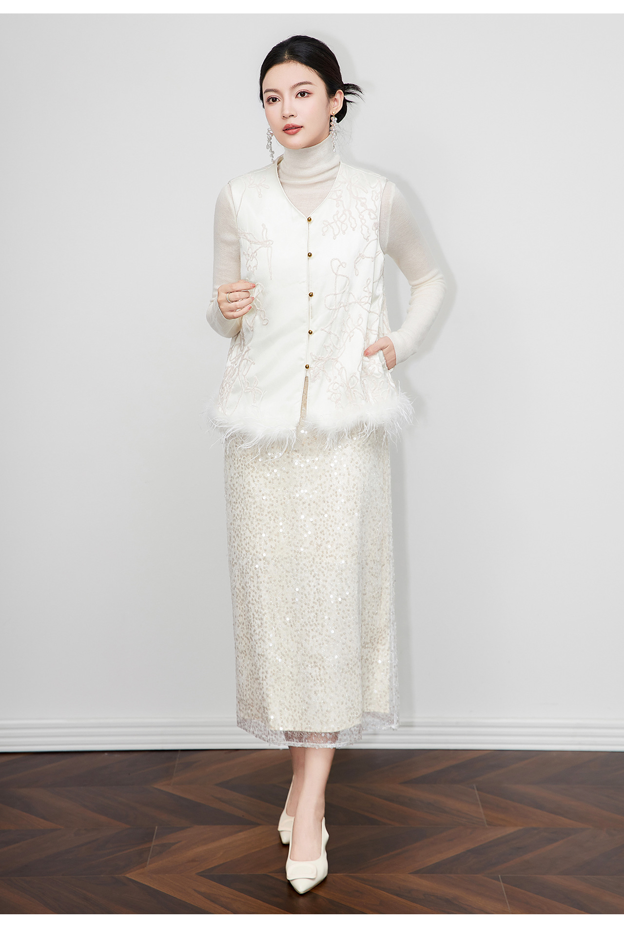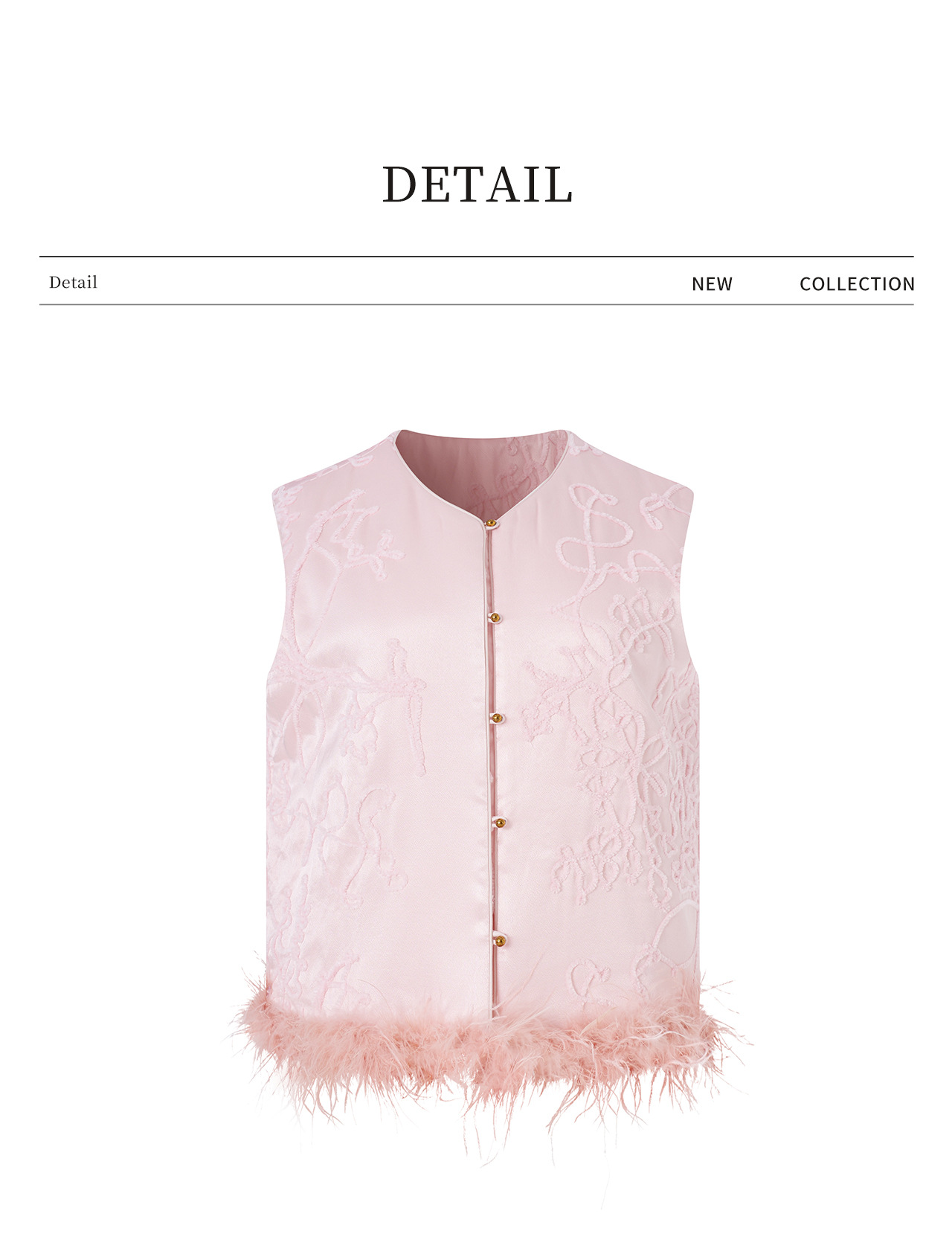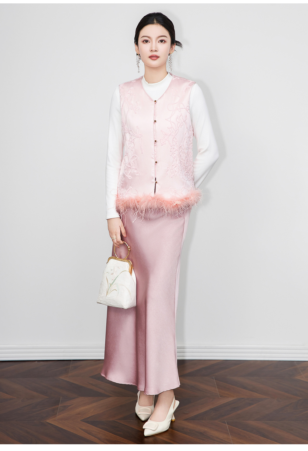 「高货wl」全新升级【铂金会员459/天猫619/差价160】(65211)洛诗琳新中式夹棉马甲2025秋冬植绒气质国风鸵鸟毛外套女