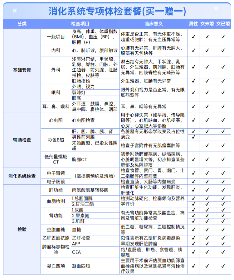 【父母双人|消化系统专项|需预约】含胃肠镜+胸部CT+六彩超+乙肝+肿瘤两项 E8