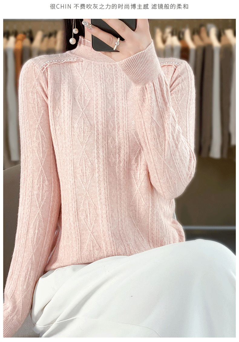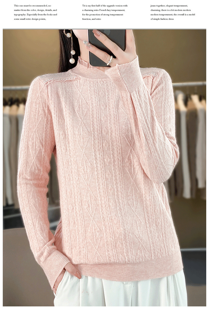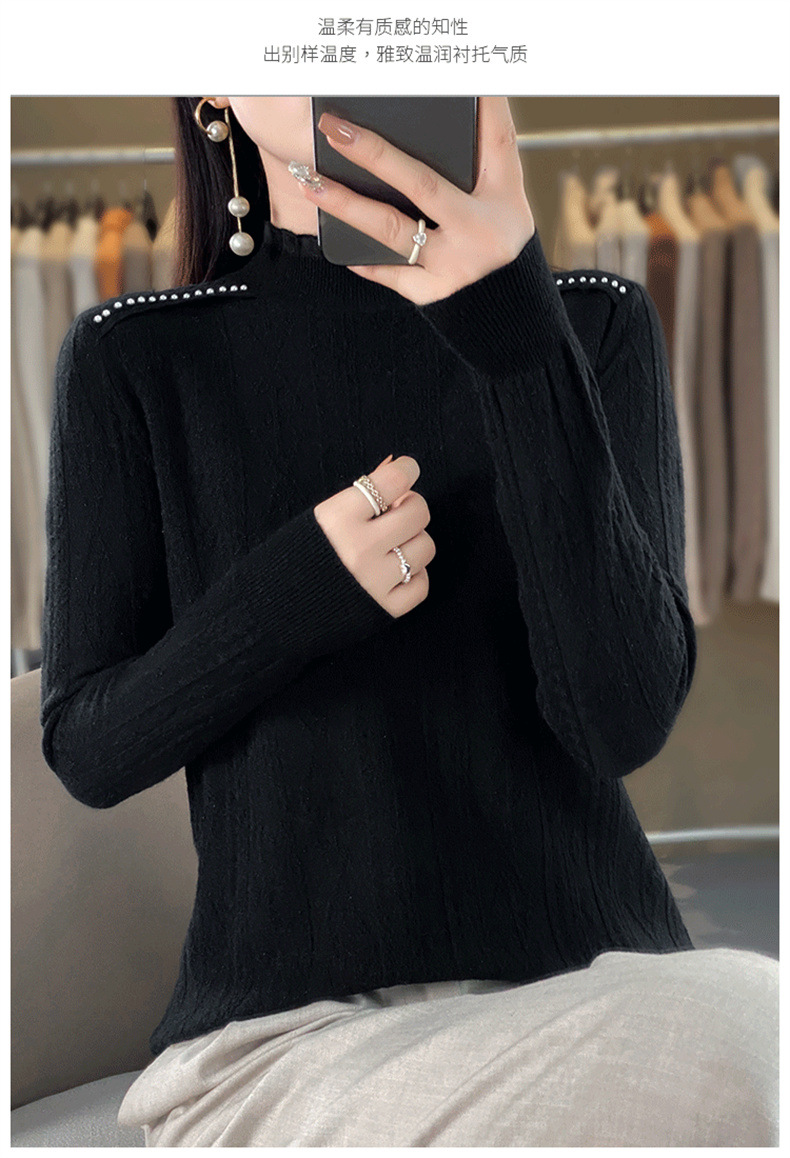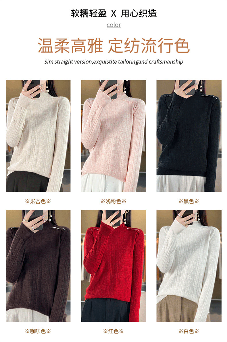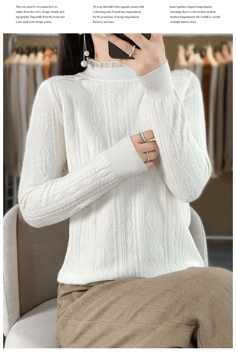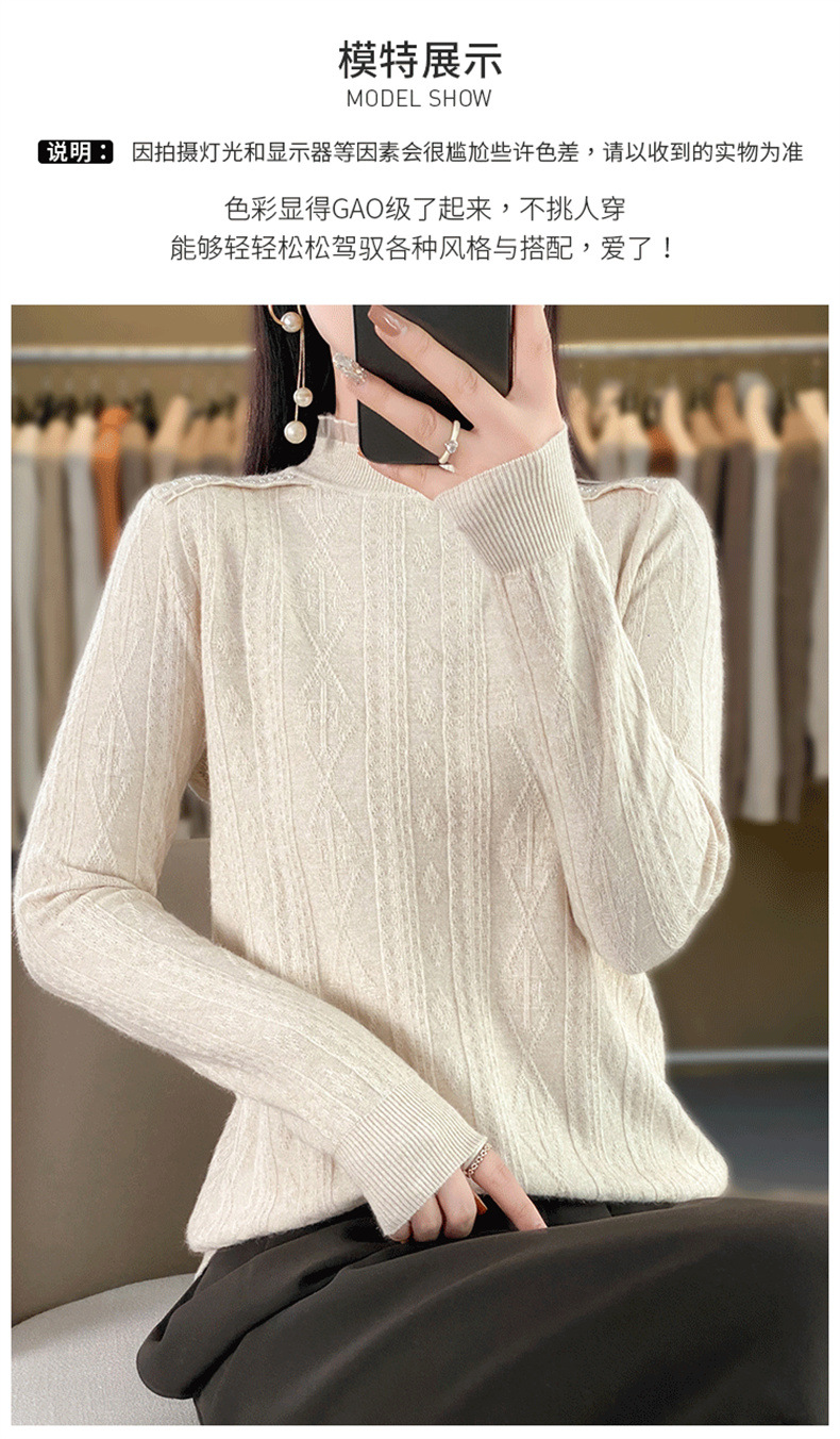 QHJY-JY891款甜美安迪绒打底衫女半高领毛衣修身蕾丝内搭针织衫