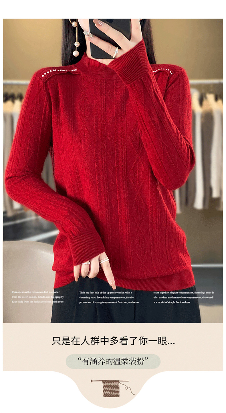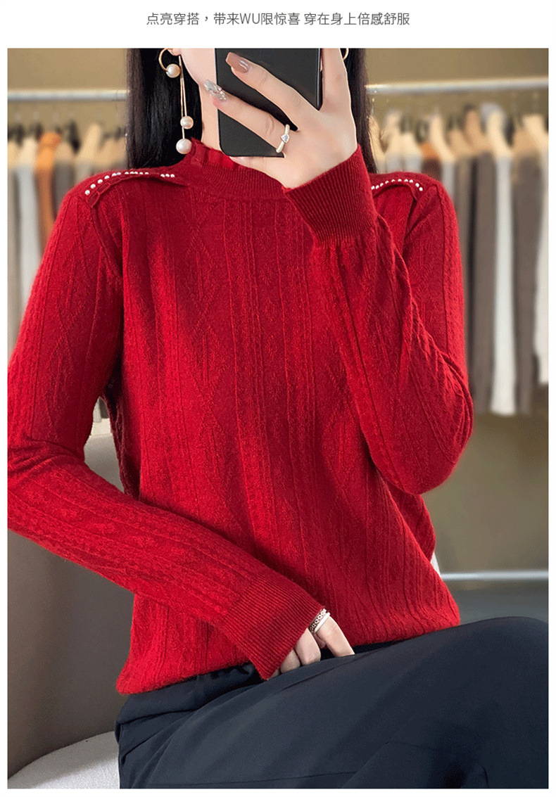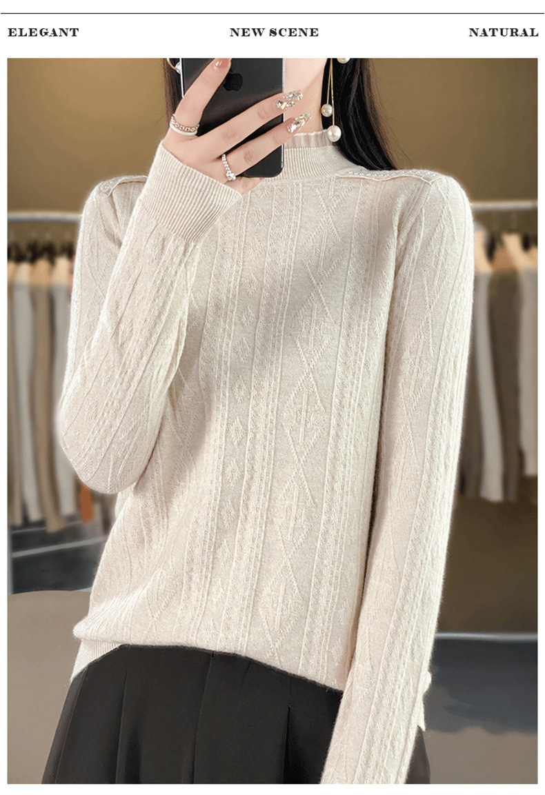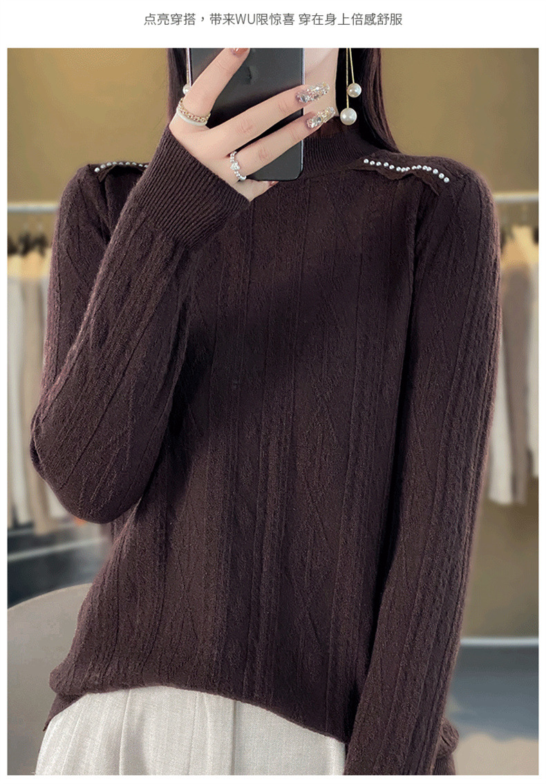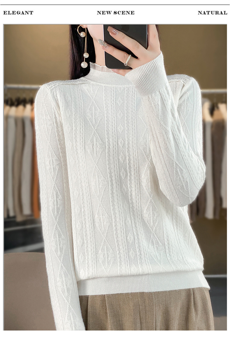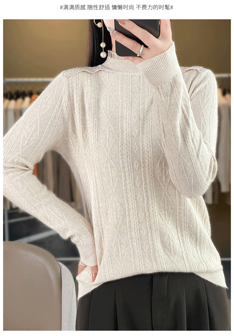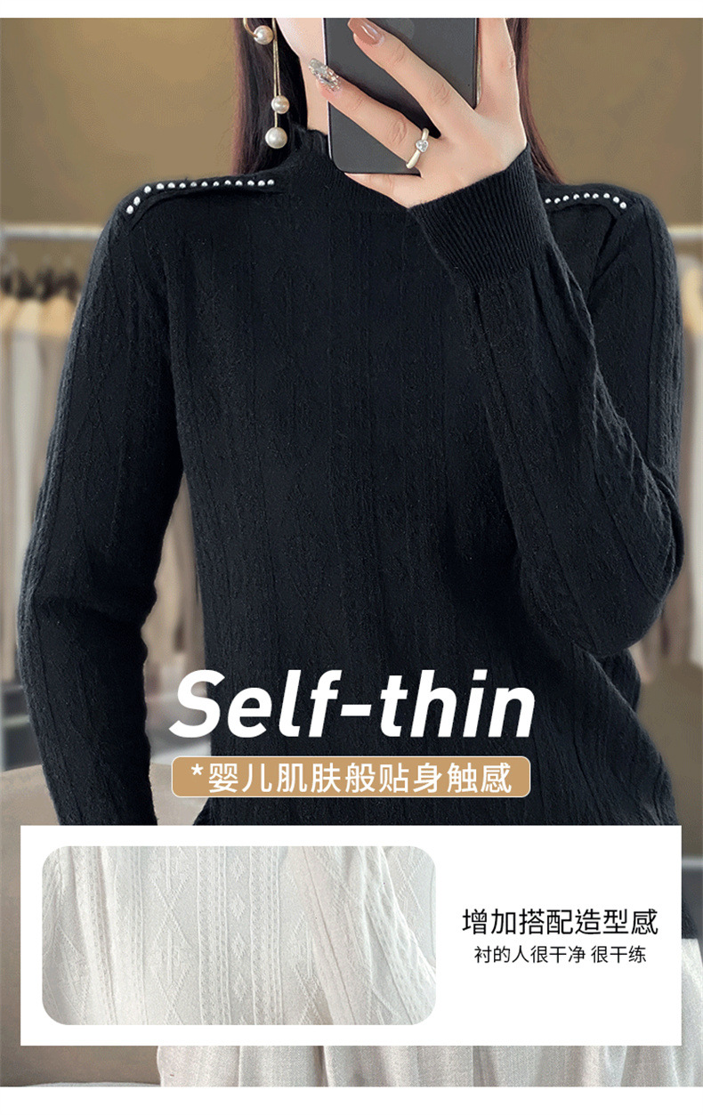 QHJY-JY891款甜美安迪绒打底衫女半高领毛衣修身蕾丝内搭针织衫