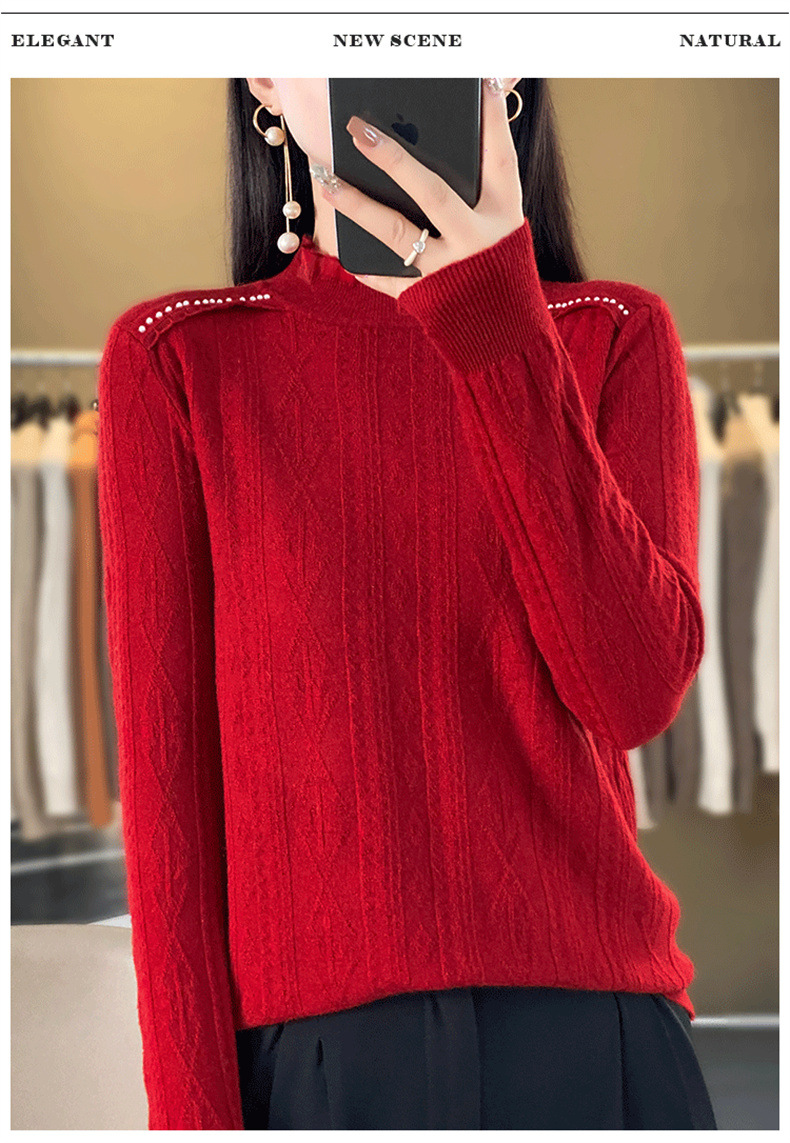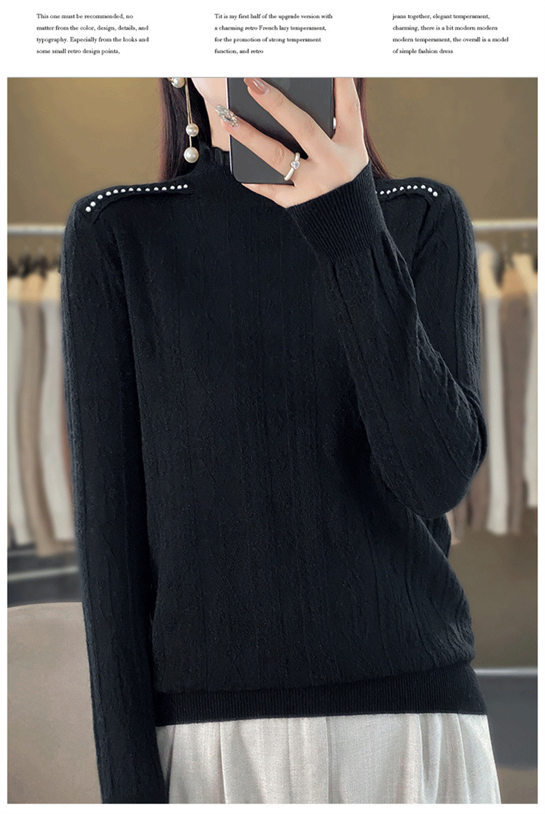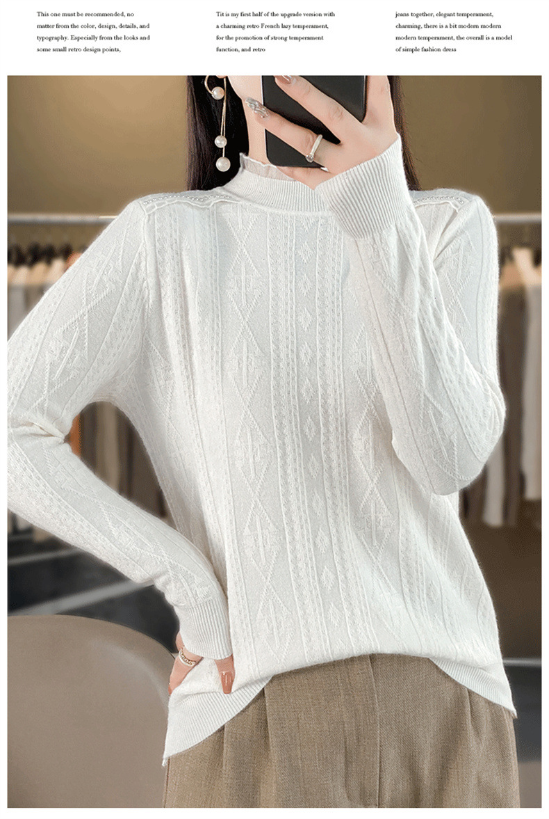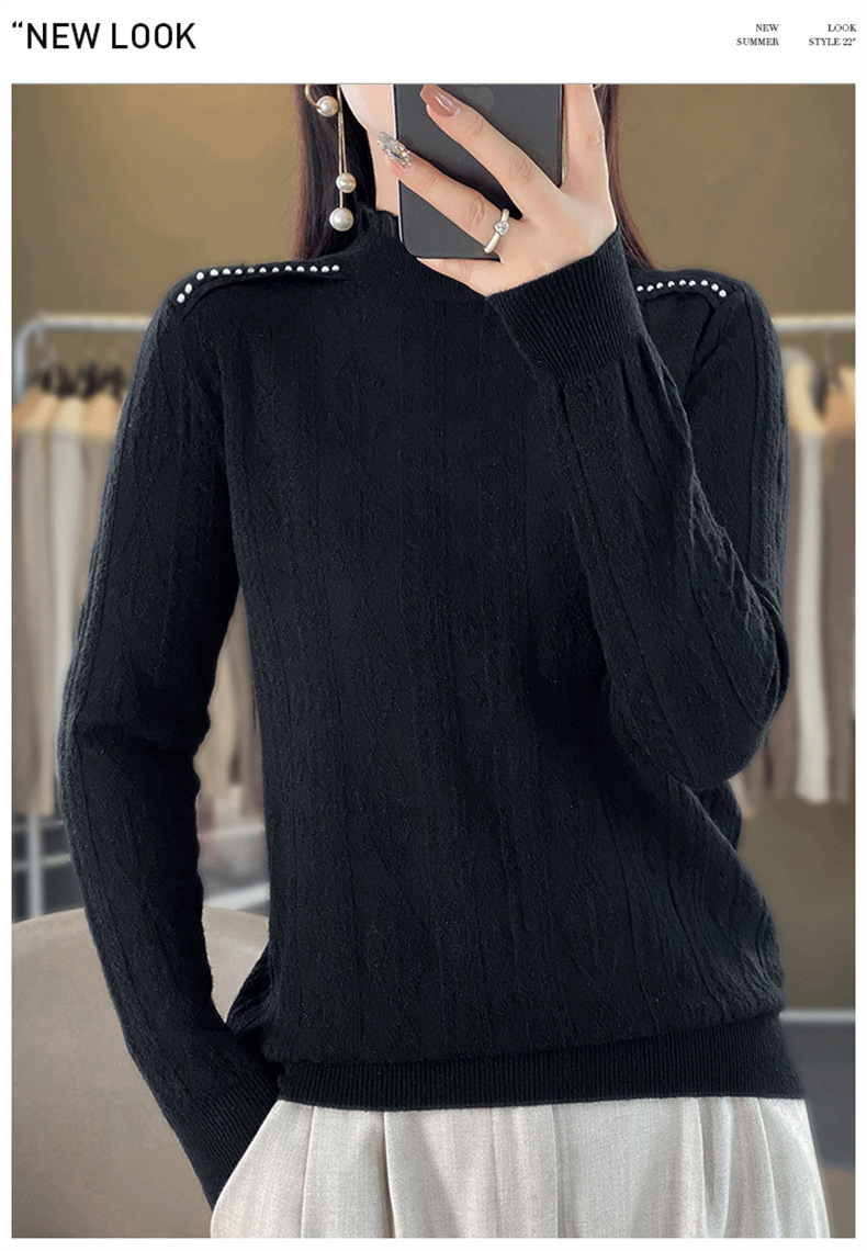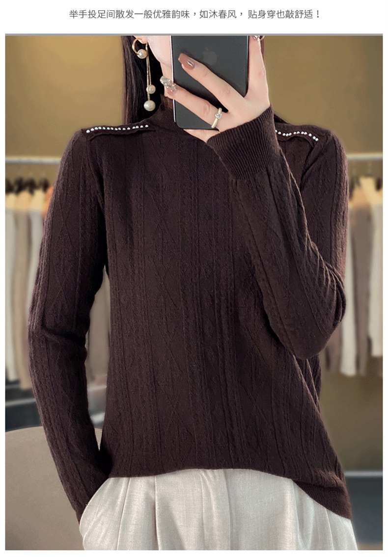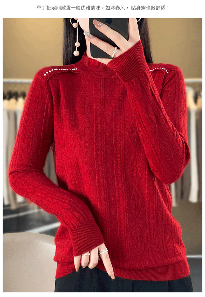 QHJY-JY891款甜美安迪绒打底衫女半高领毛衣修身蕾丝内搭针织衫