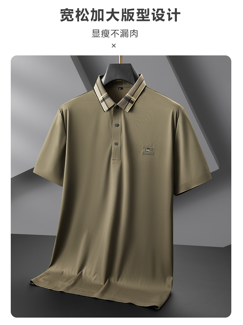 【冰丝高弹】【新款DDP】大依优型大码短袖Polo衫前胸印花电脑领设计翻领加肥加大男士大号弹力透气舒适夏季半袖