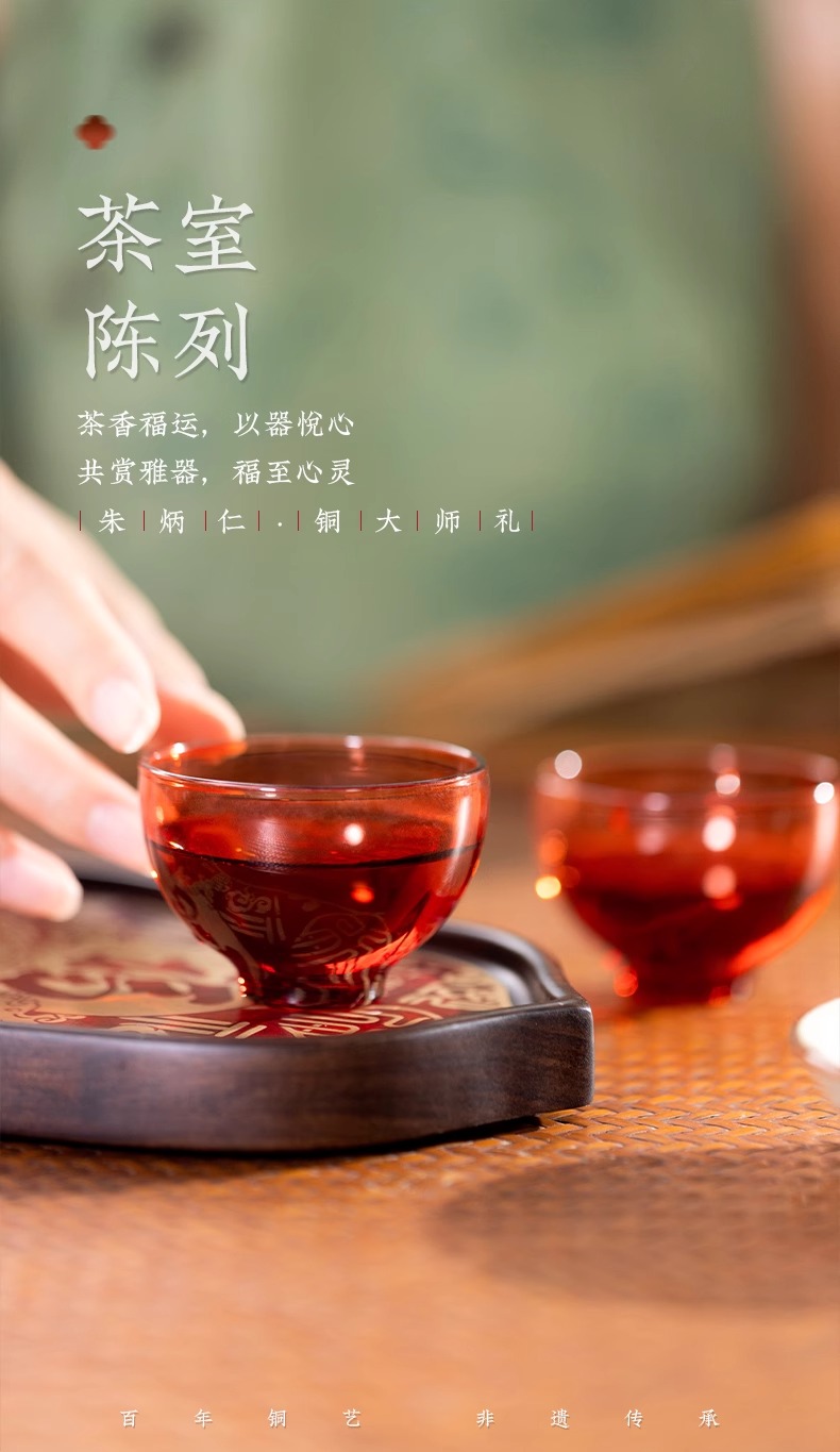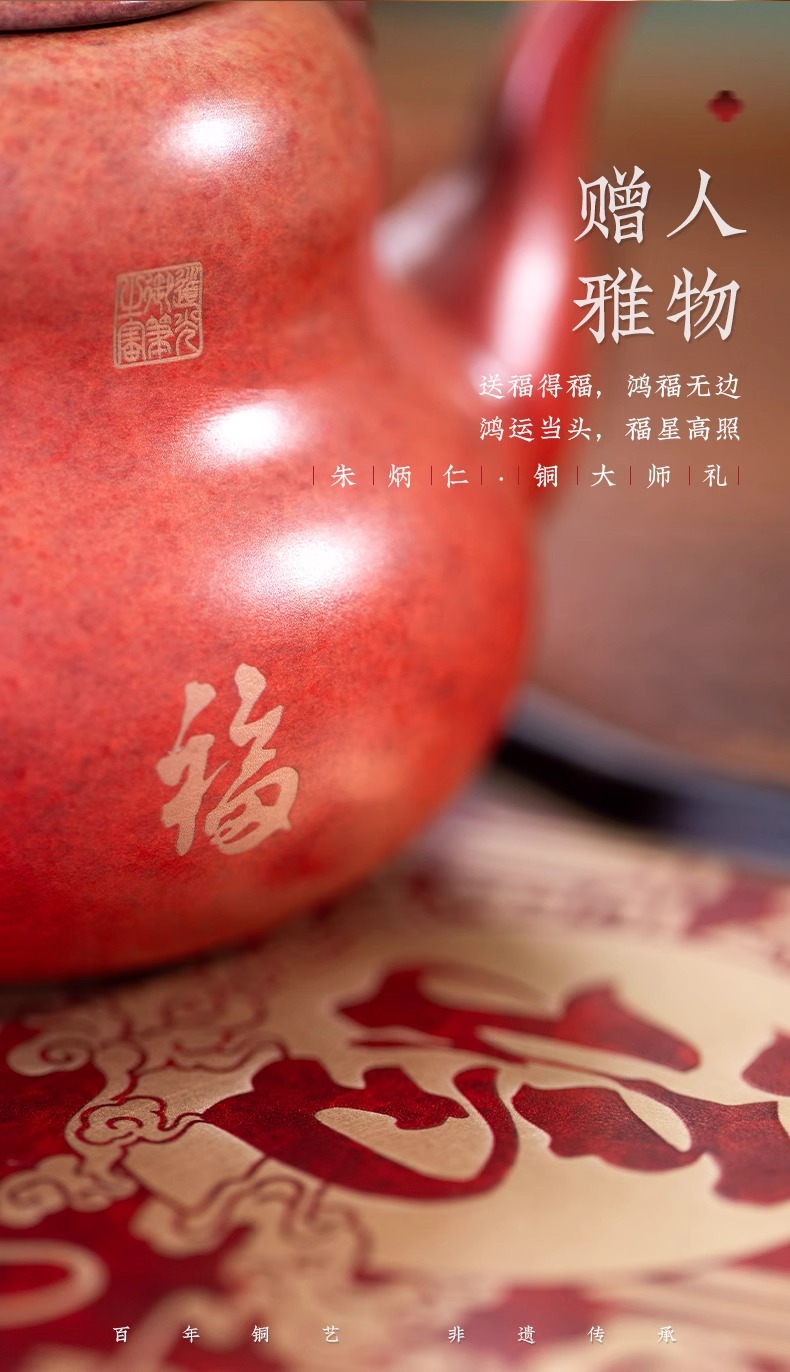 朱炳仁铜 精铜 清流乾坤系列 海棠盘 铜茶盘 非遗家居摆件艺术品