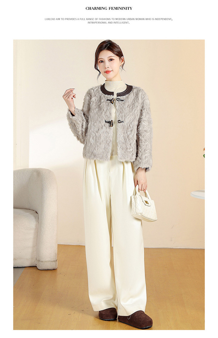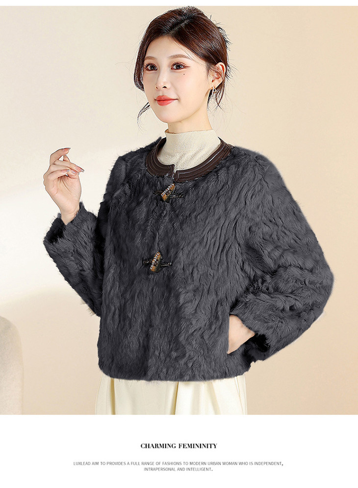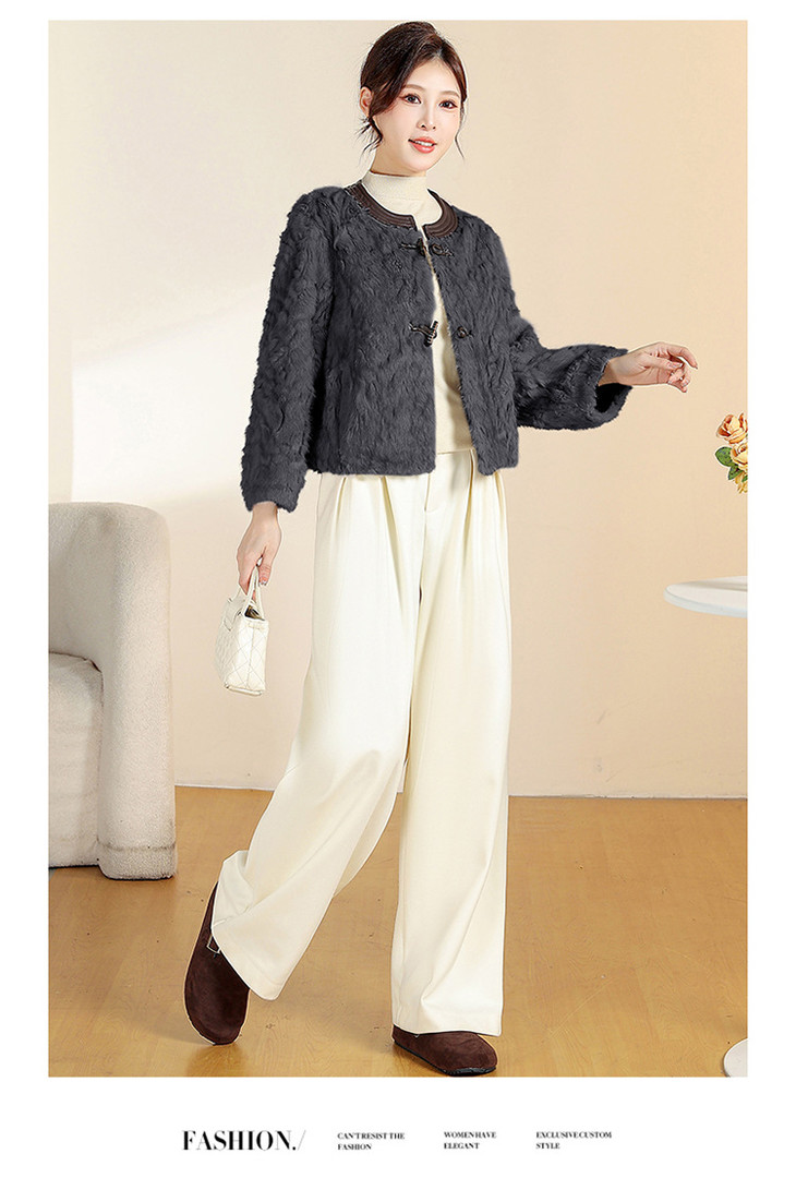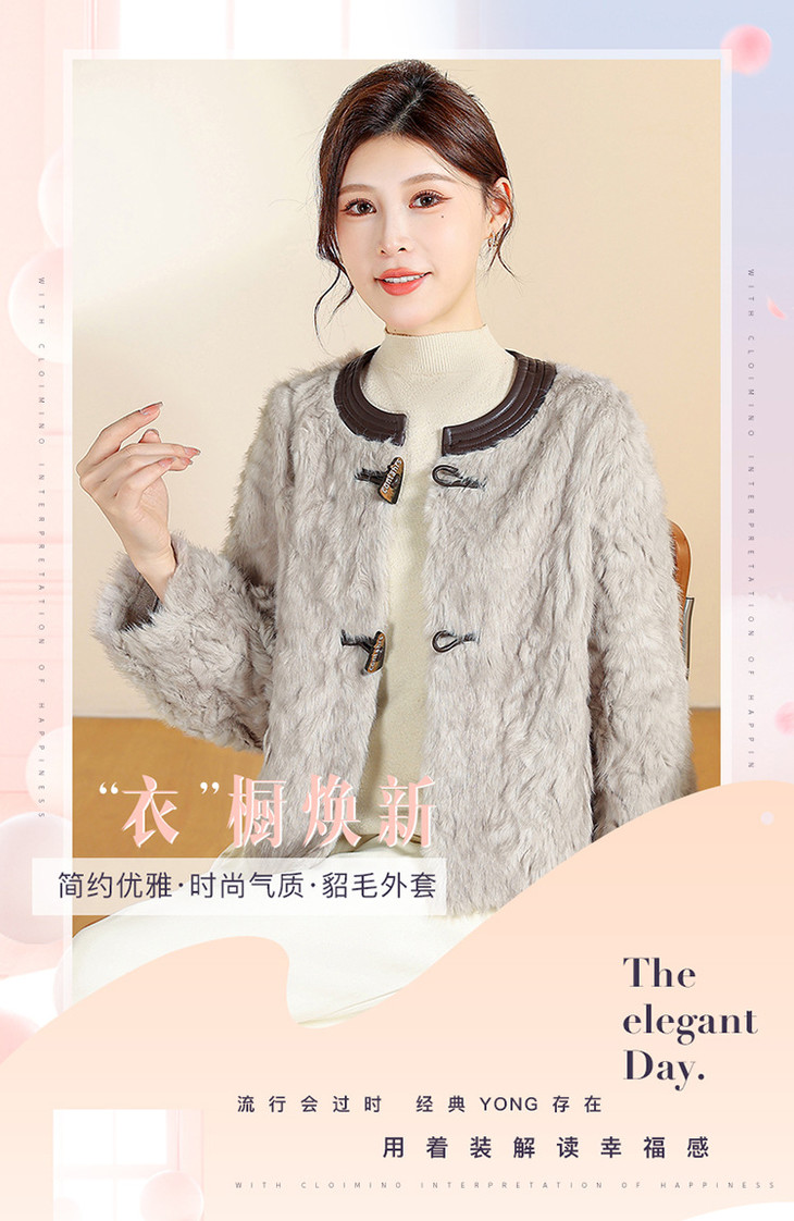 仿貂毛外套短款小个子小香风,气质优雅女装厚款皮毛上衣CC-YIYI-JK25B22-Y