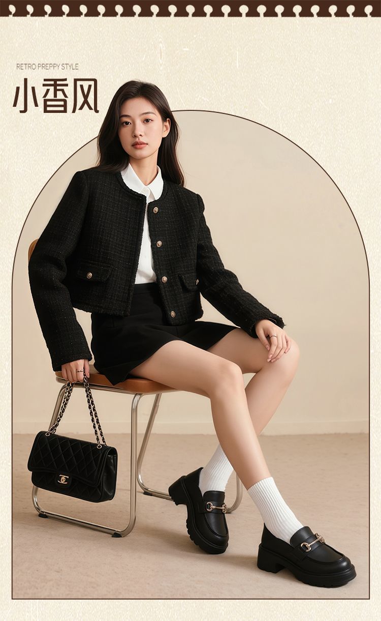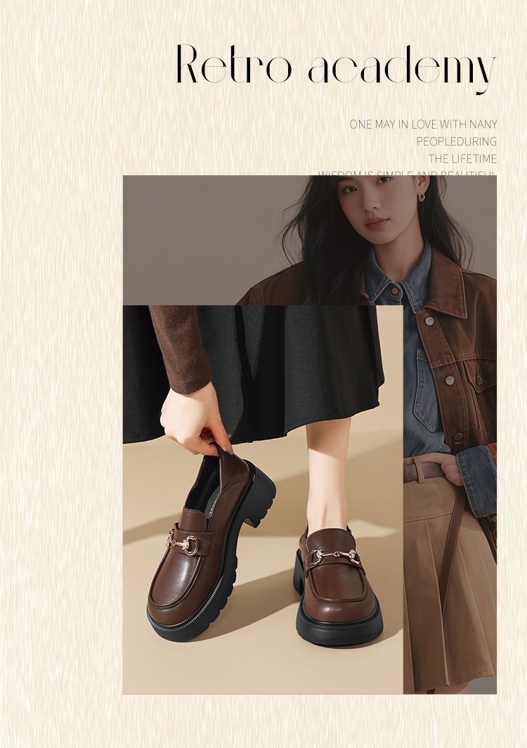 ZHR则则厚底乐福鞋增高5cm英伦单鞋女2025新款小皮鞋通勤女鞋