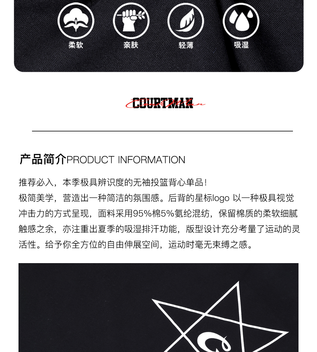 COURTMAN野球帝美式投篮背心跑步训练男女同款篮球坎肩尖角五星系列