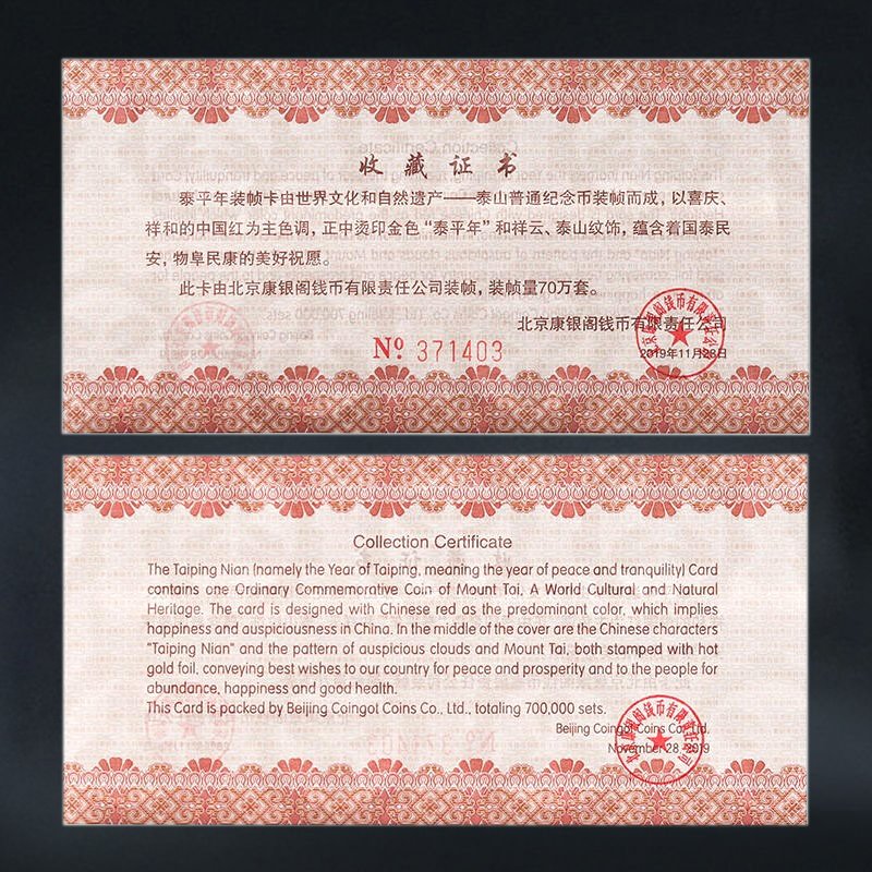 泰山纪念币 红包卡册 康银阁出品