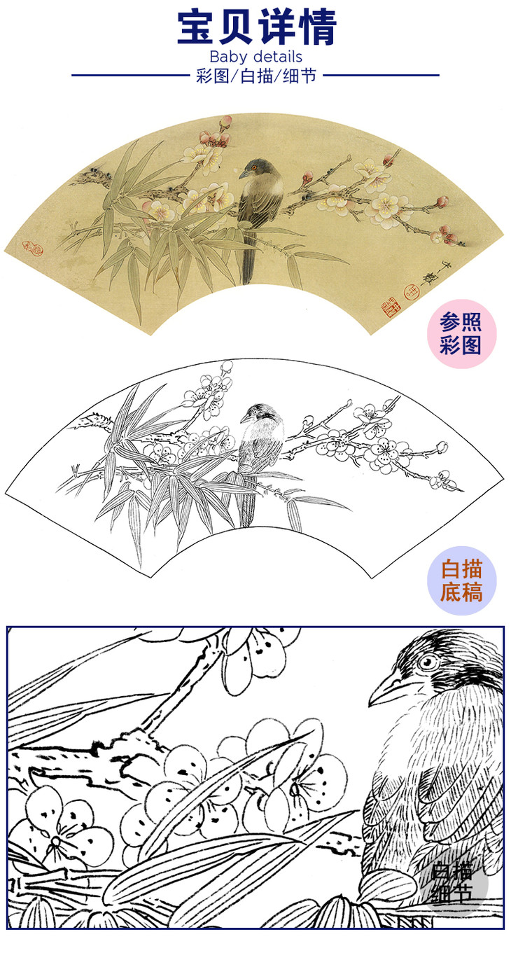 工笔花鸟白描底稿-周中耀扇面小品《清芬独赏》-多种白描尺寸可选-SL17