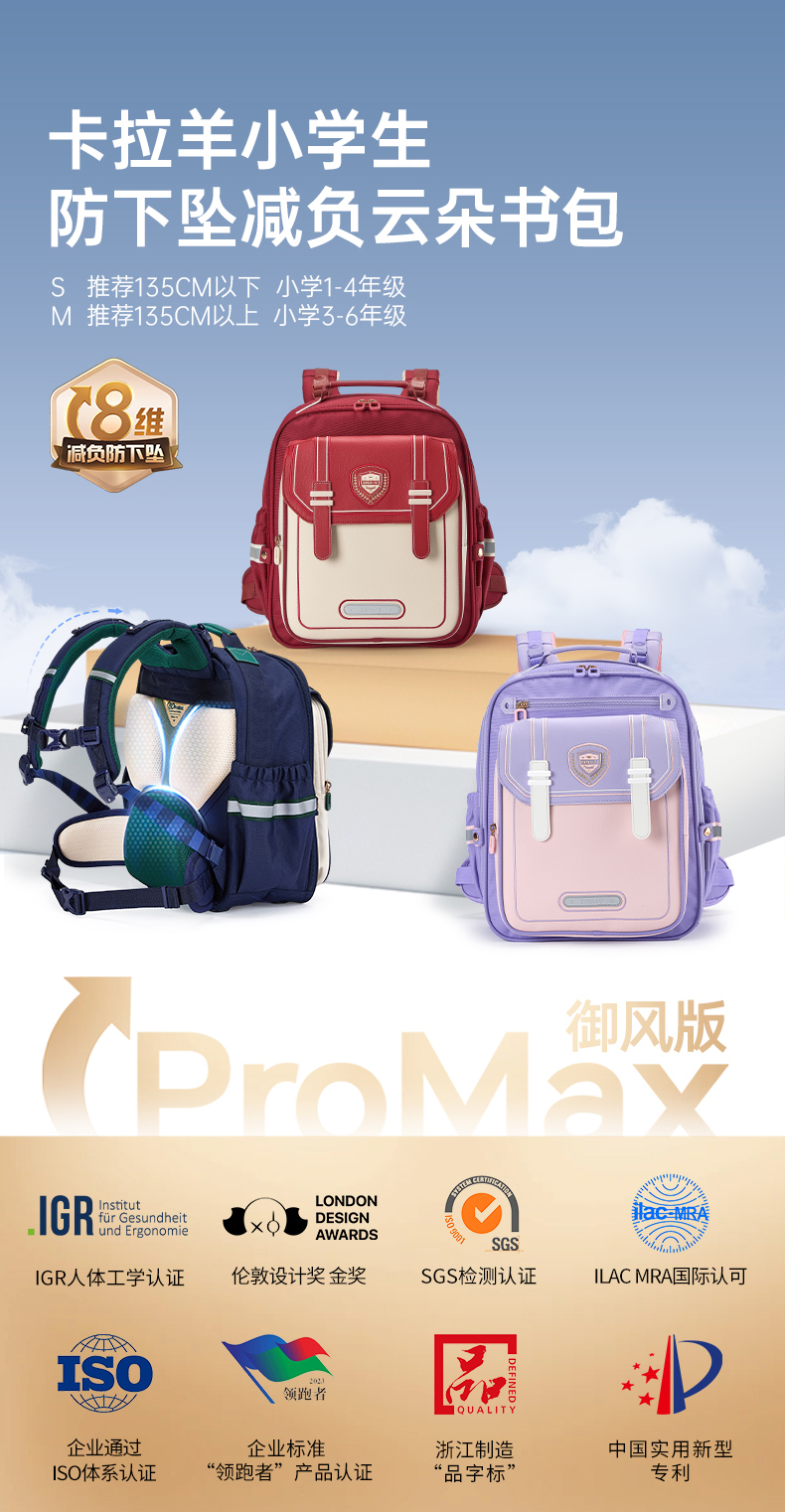 【蒋勤勤代言】卡拉羊1-6年级小学生8维减负云朵书包 御风系列CX2262+2792
