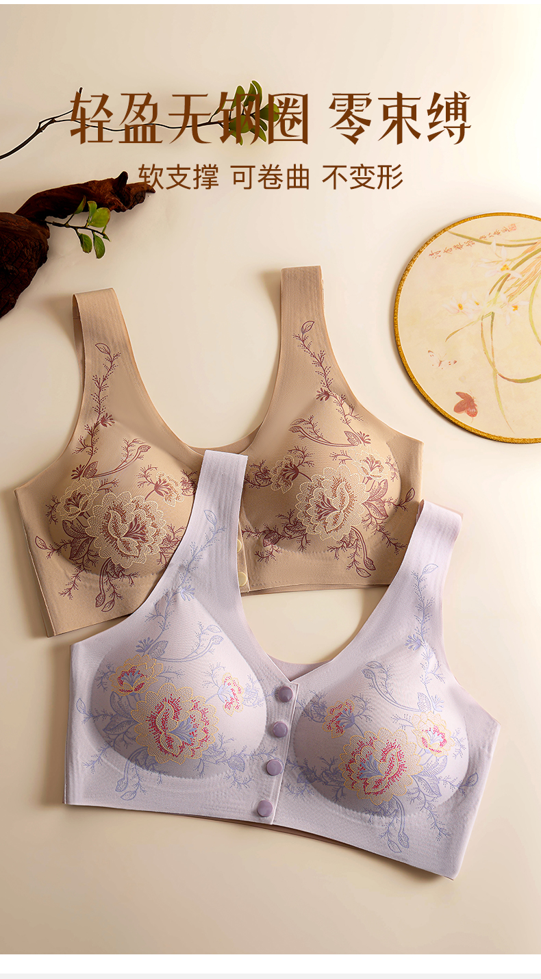 樱姿霞前扣内衣,优雅设计+舒适贴合 前扣更方便,精致国风纹理点缀你的每一天