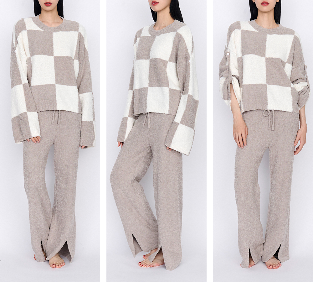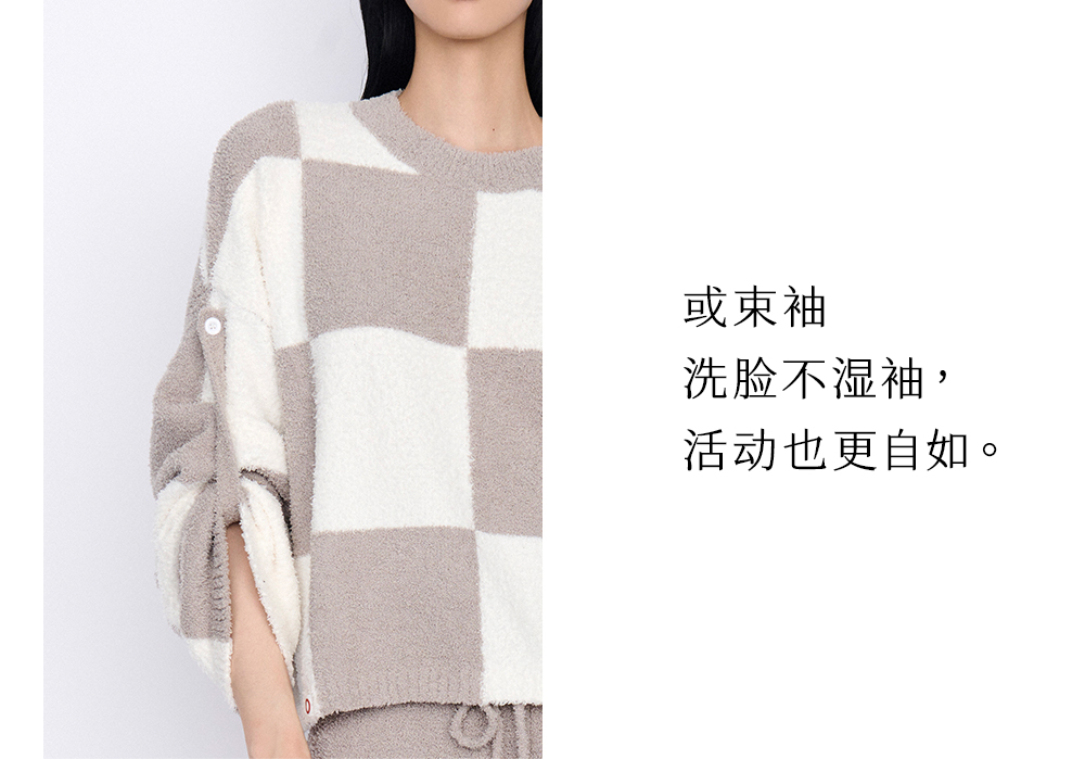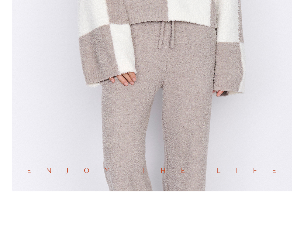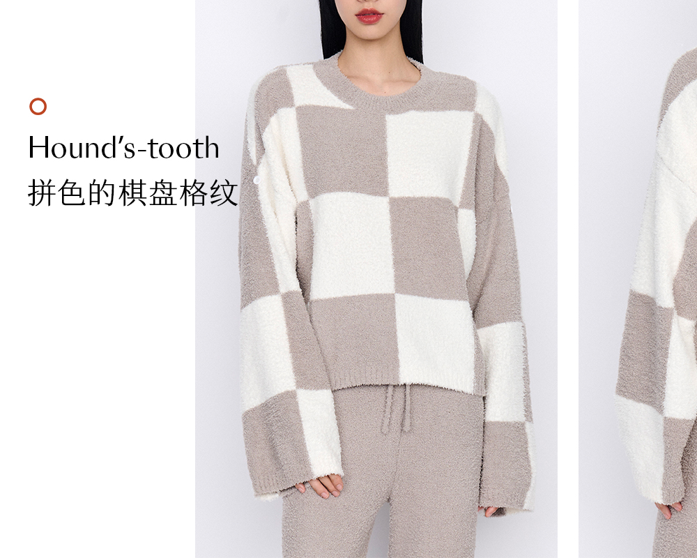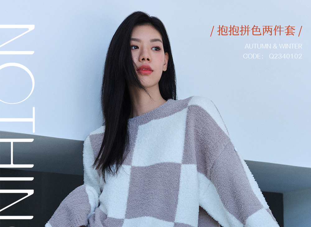 从轻抱抱家居服两件套装拼色套头睡衣简约保暖亲肤软绒秋冬女