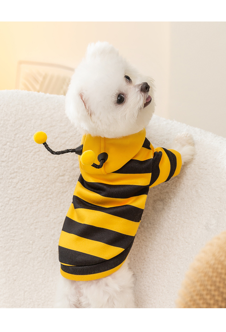 【搞笑可弯曲触角❗️自带牵引绳变色小可爱】25年新款狗狗秋冬加厚保暖小蜜蜂绒衣宠物猫咪比熊泰迪两脚变身装。hc