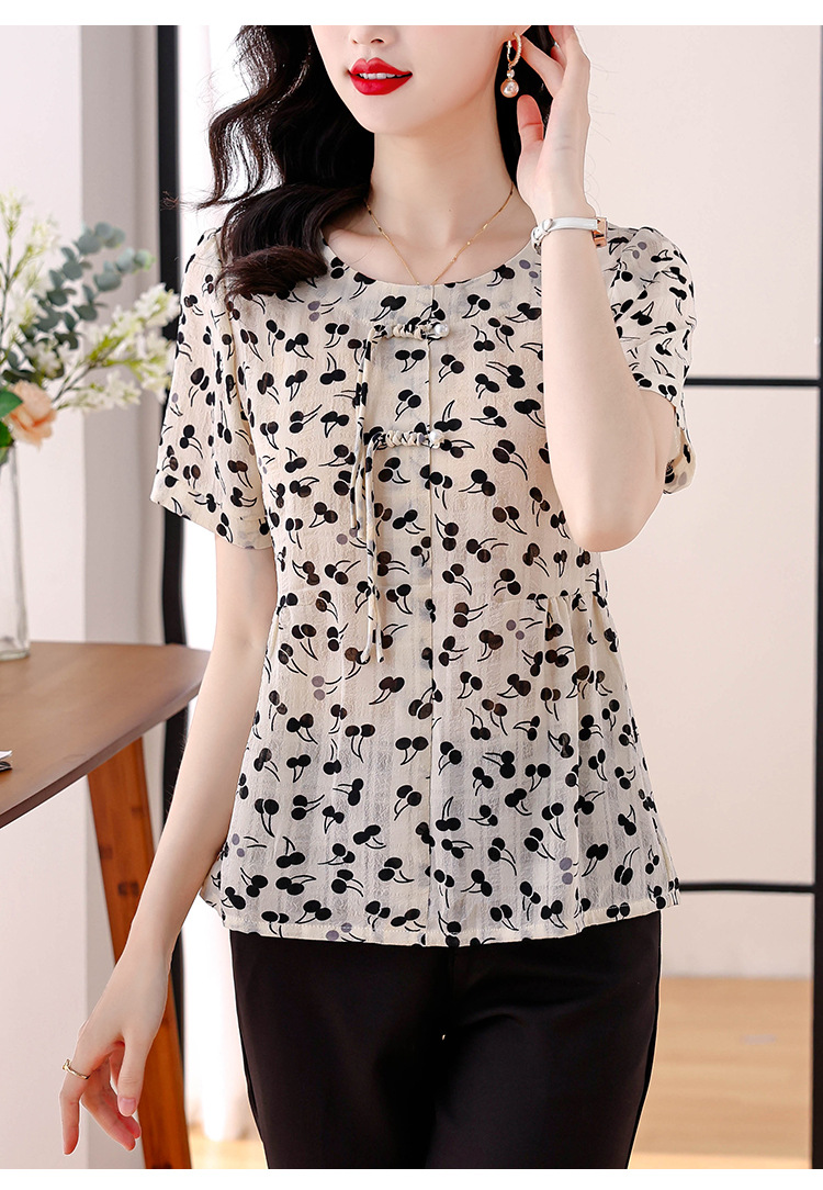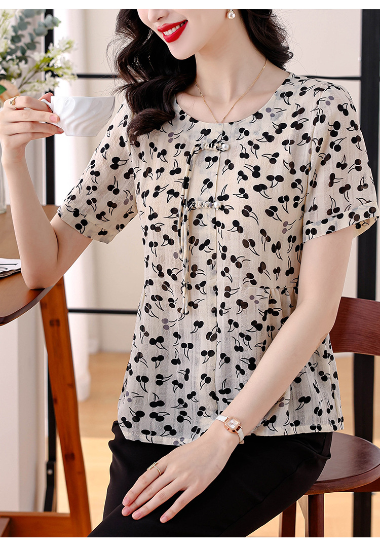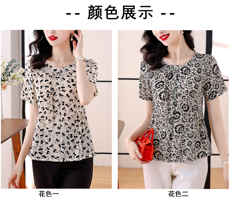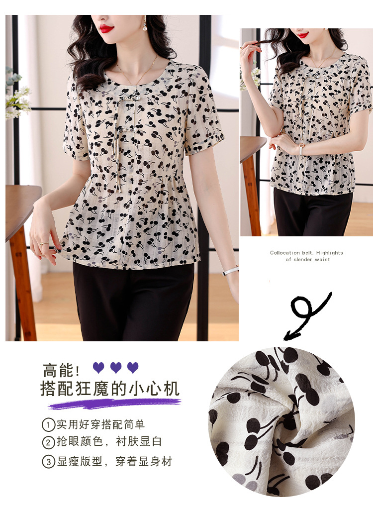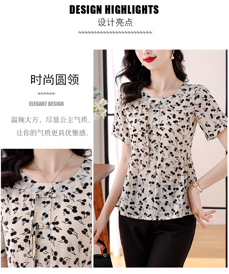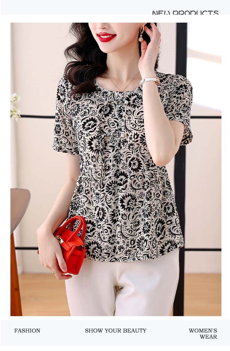 MZ1738洋气妈妈短袖漂亮碎花小衫女2025夏装收腰遮肚雪纺衫中年盘扣上衣