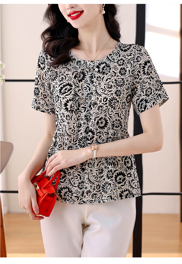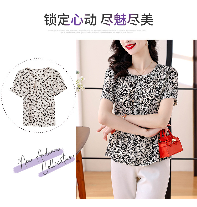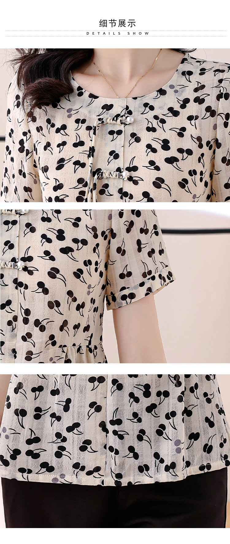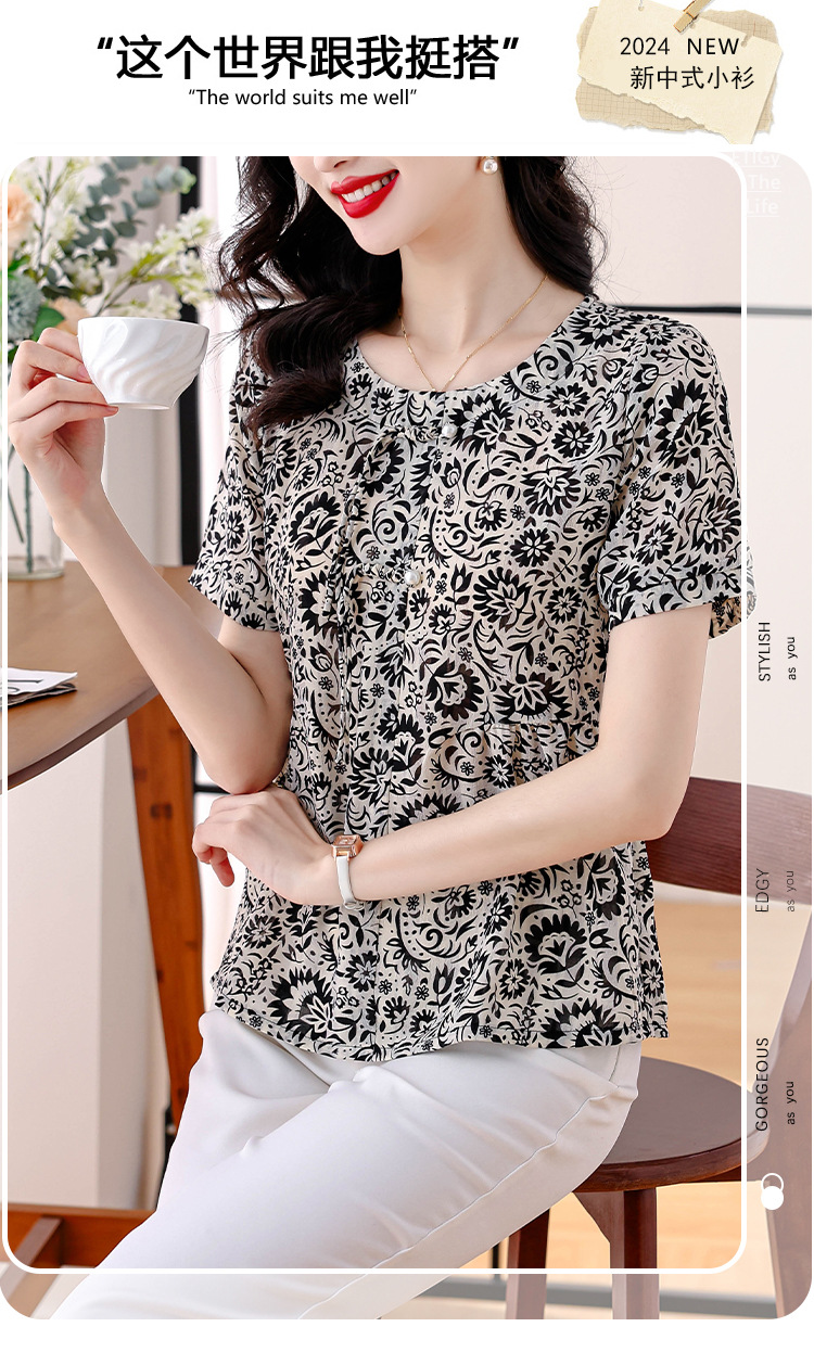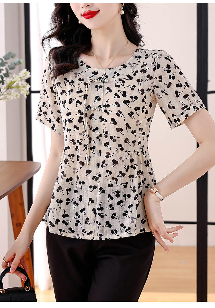 MZ1738洋气妈妈短袖漂亮碎花小衫女2025夏装收腰遮肚雪纺衫中年盘扣上衣