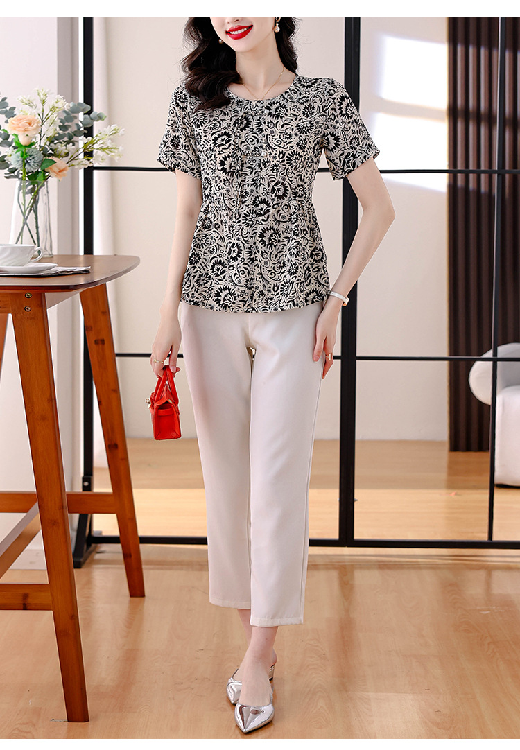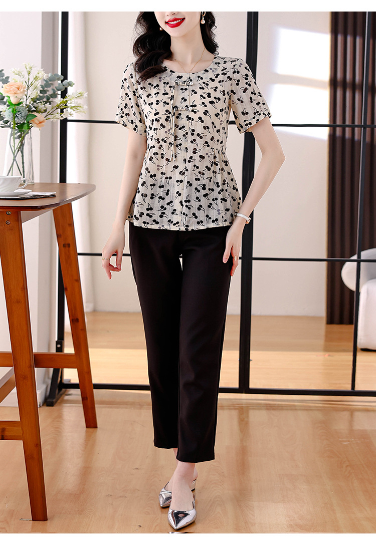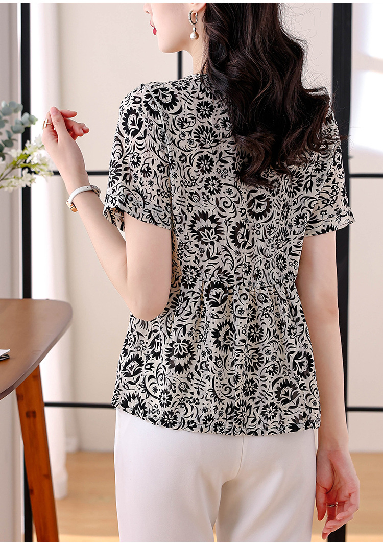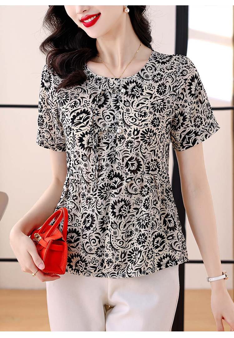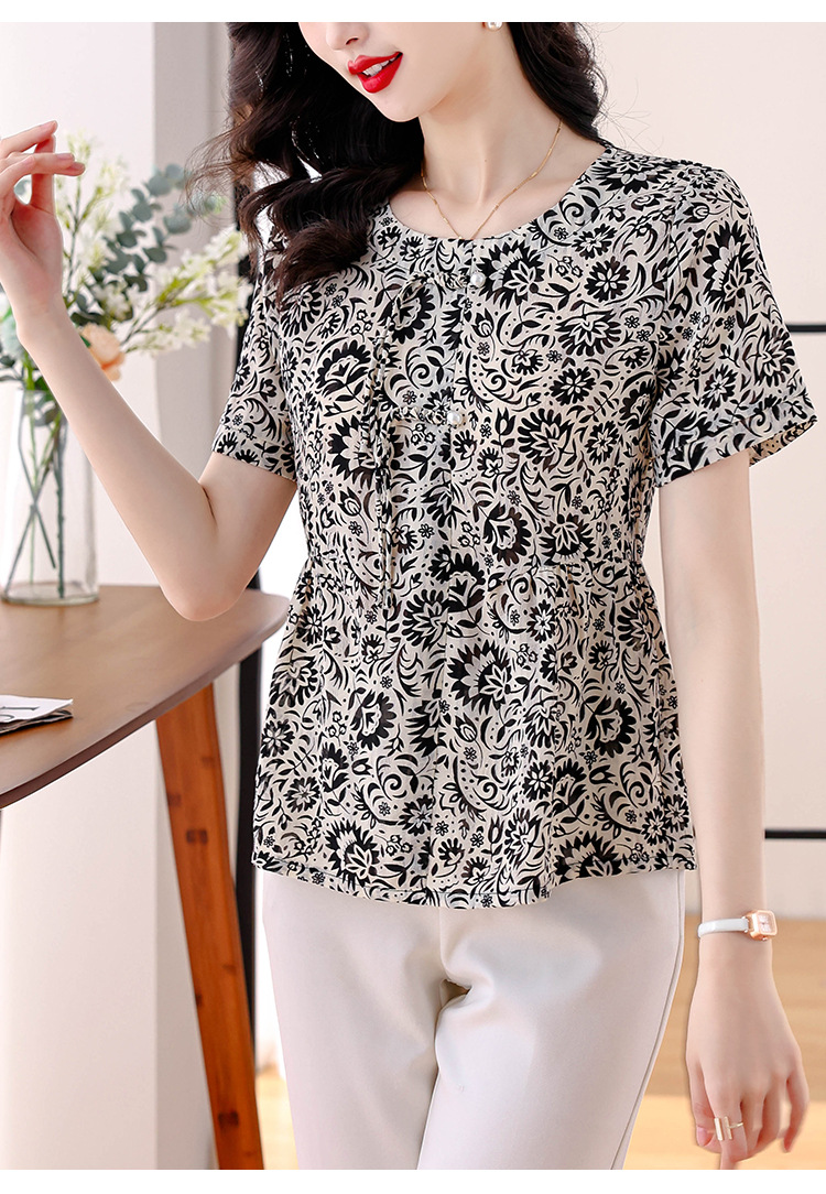 MZ1738洋气妈妈短袖漂亮碎花小衫女2025夏装收腰遮肚雪纺衫中年盘扣上衣