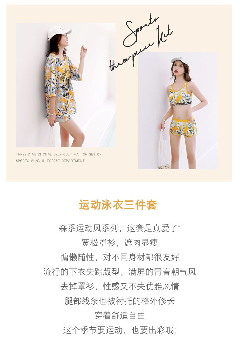 游泳衣女分体仙女范三件套保守性感遮肚显瘦学生ins风泡温泉泳装