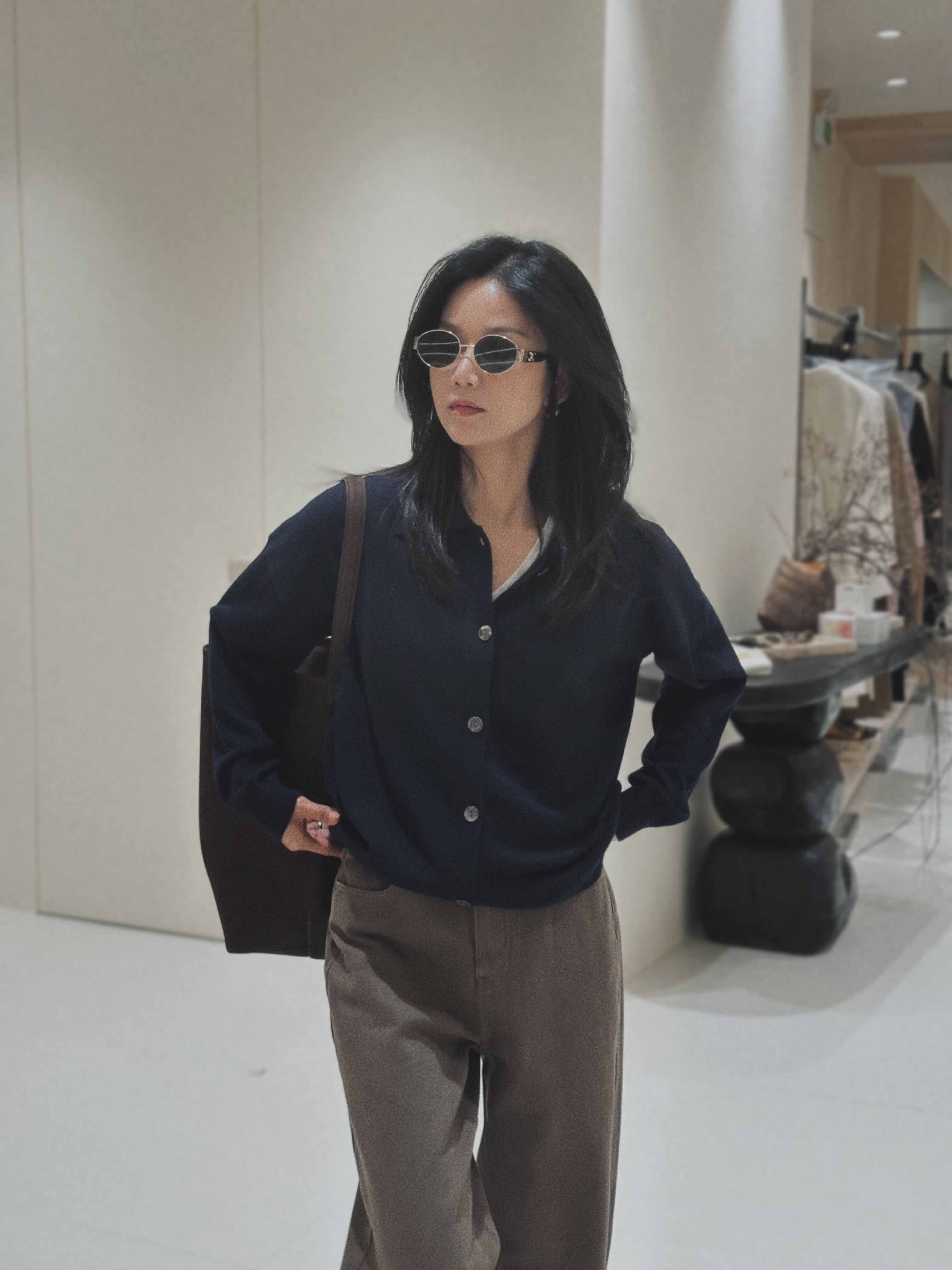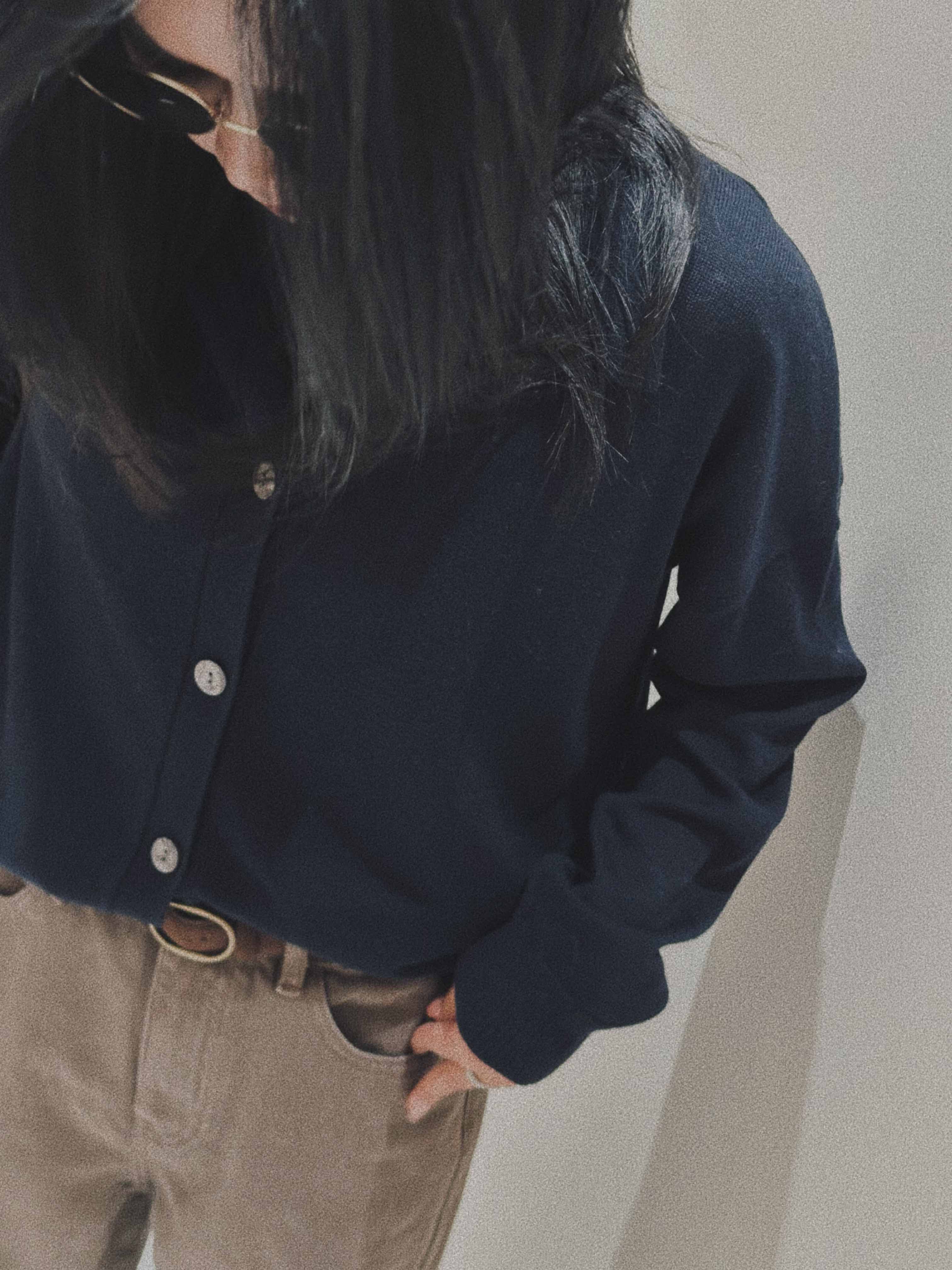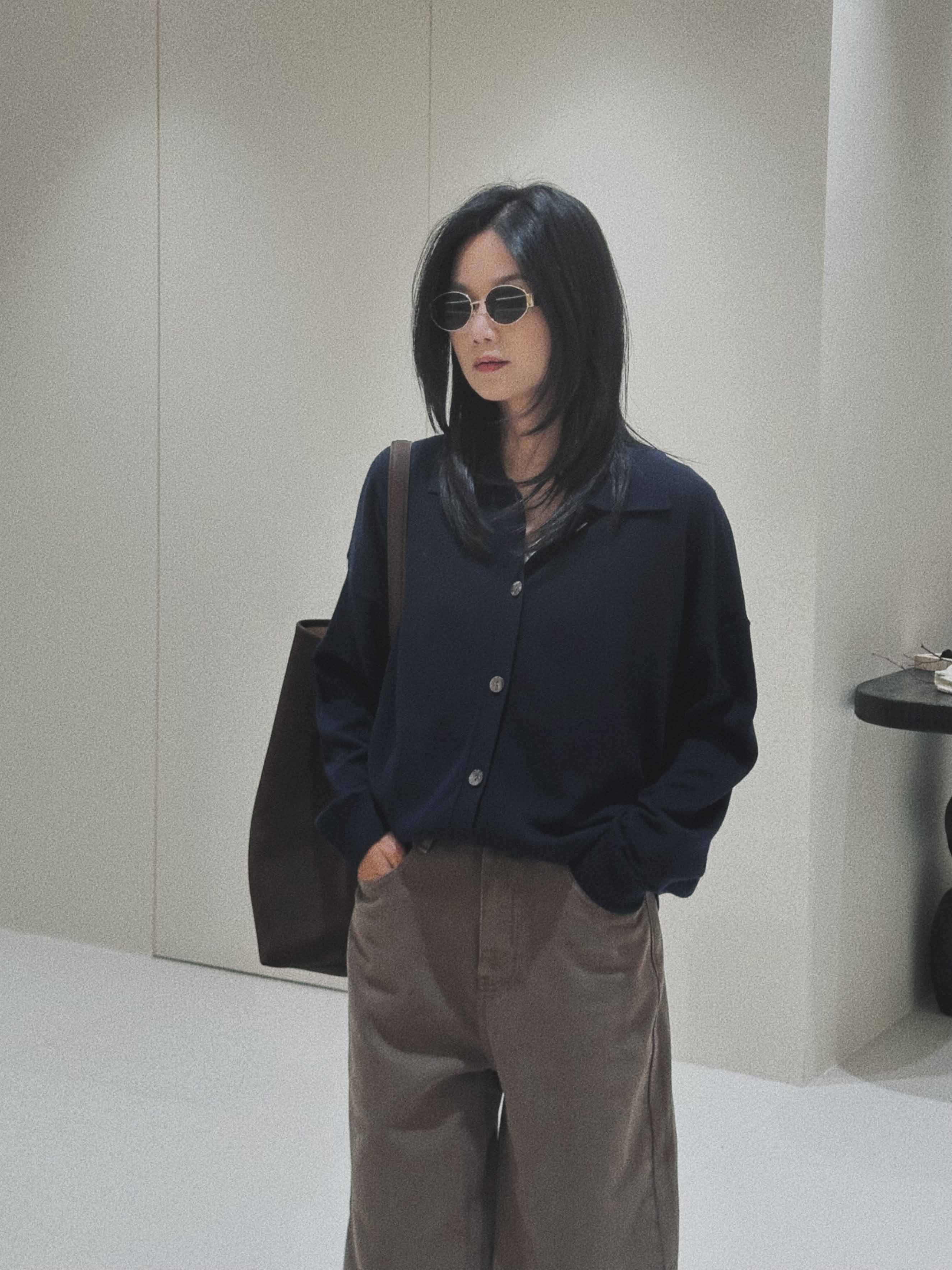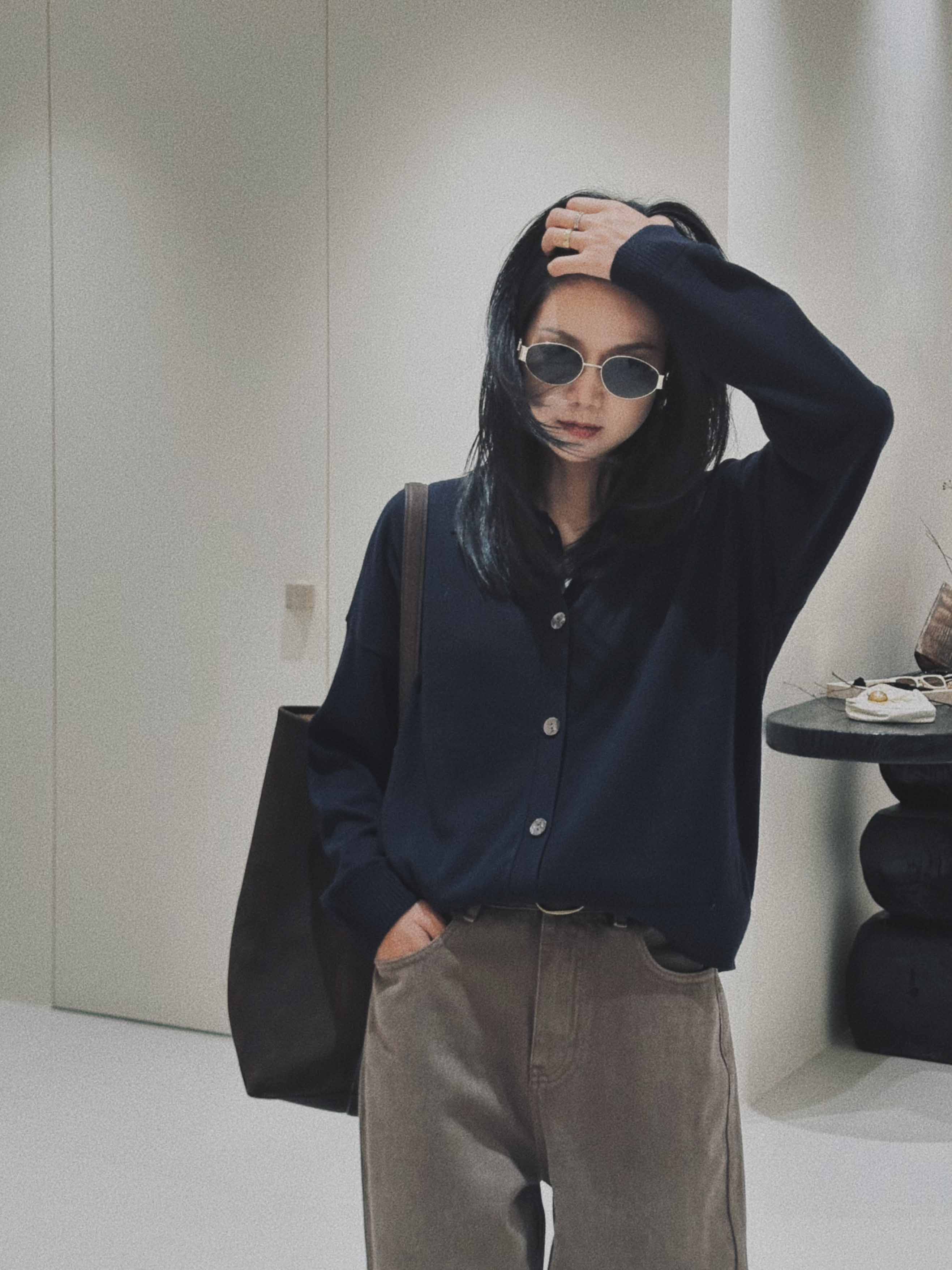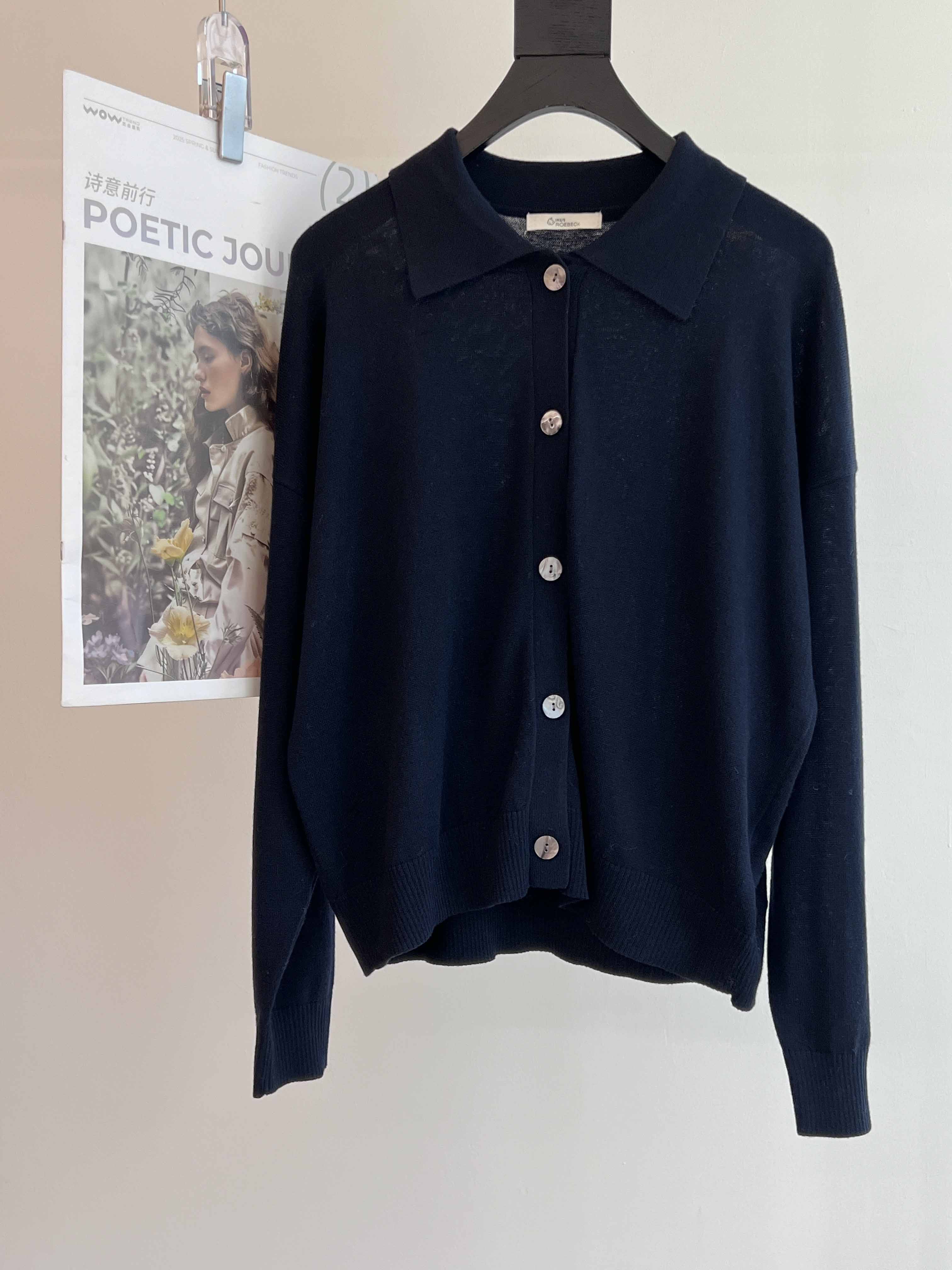 一件提升穿搭贵价❗️藏青色羊毛翻领针织开衫,自带气质buff!
