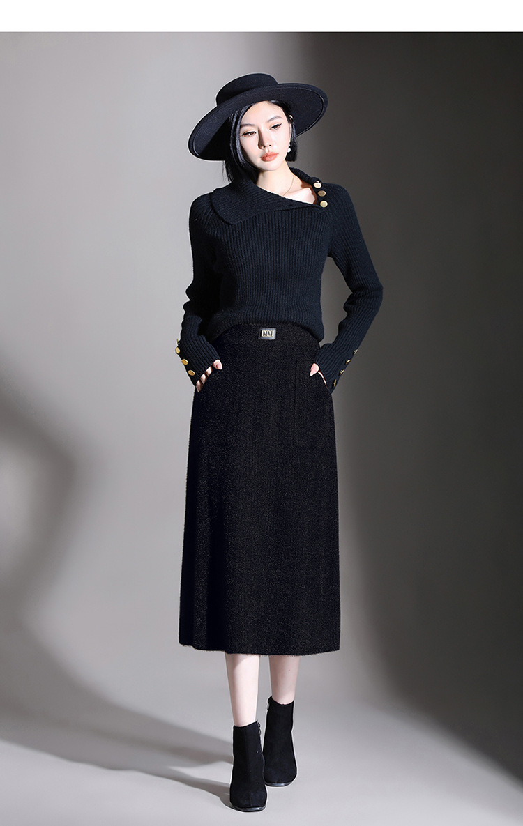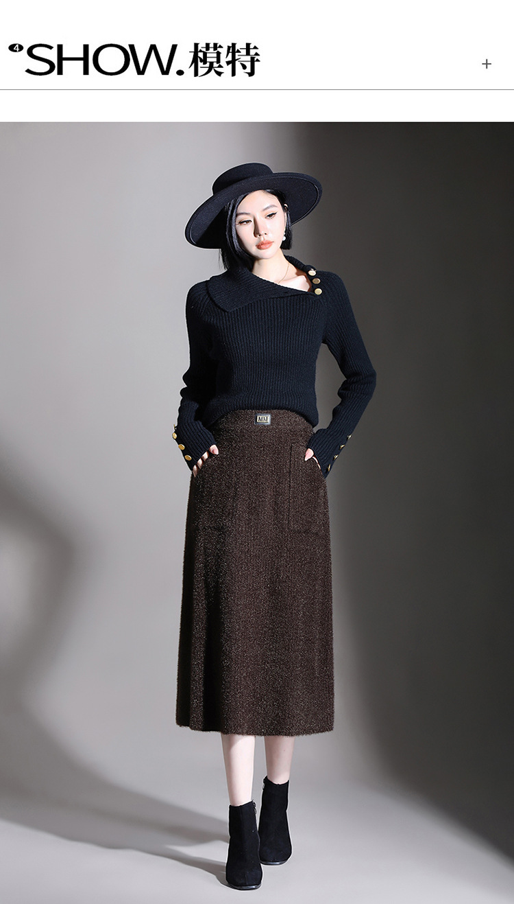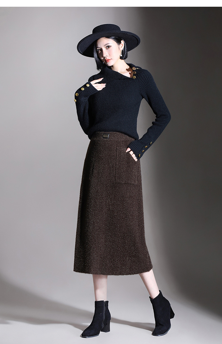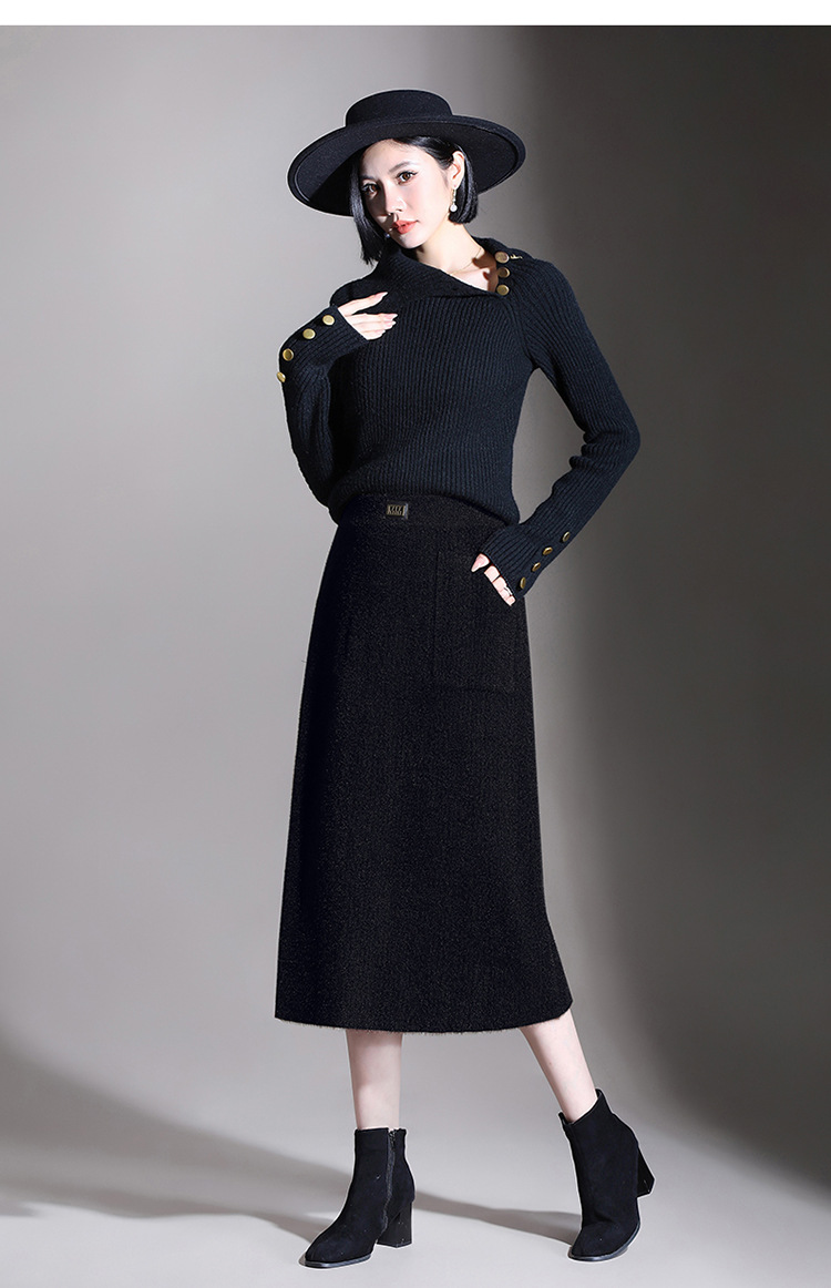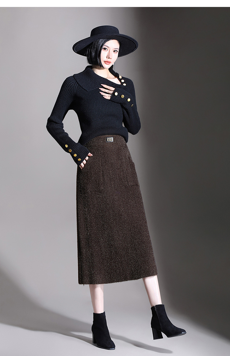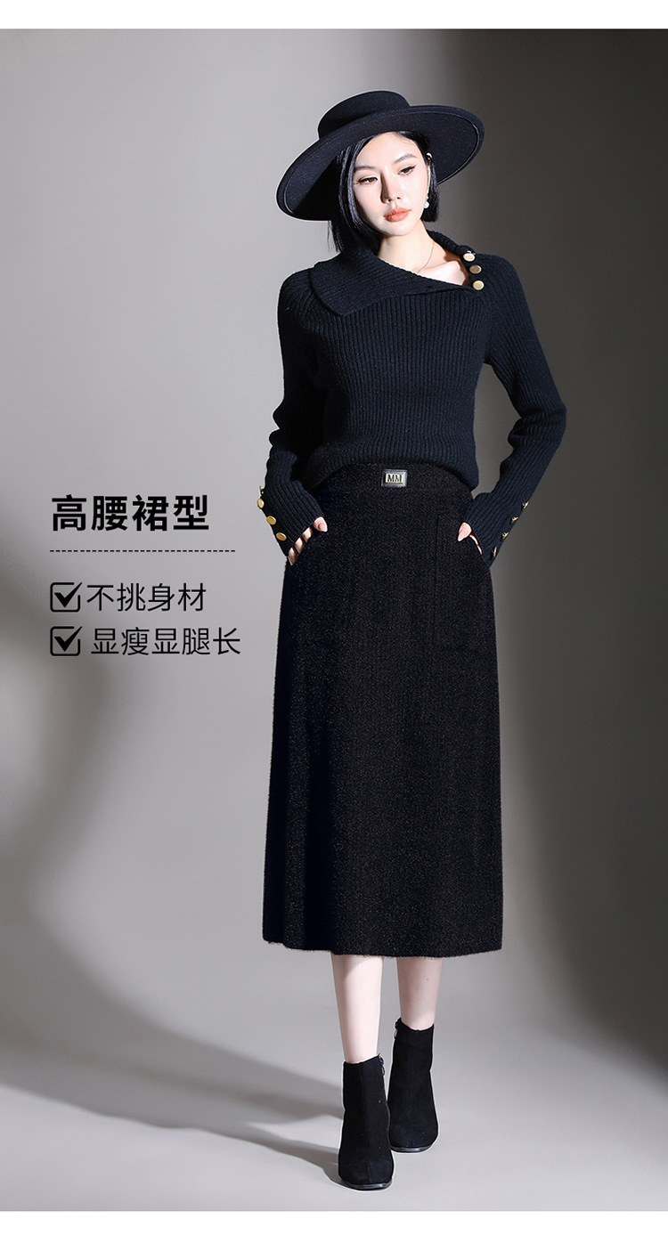 MYX-YGLR-1232-L垂感修身针织毛线裙弹力直筒裙中长款显瘦修身包臀裙秋冬款半身裙