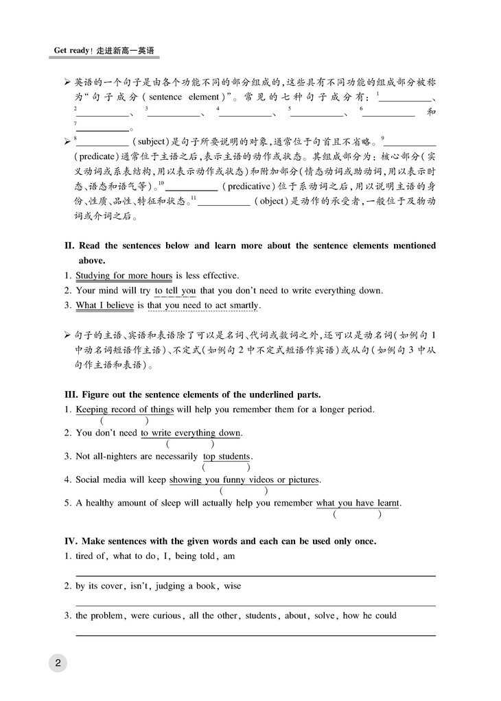 《Get ready!走进新高一英语》编写组针对高一新生英语学习方面的薄弱环节,精心设计练习活动,通过以下三个方面帮助学生突破初升高英语重难点: