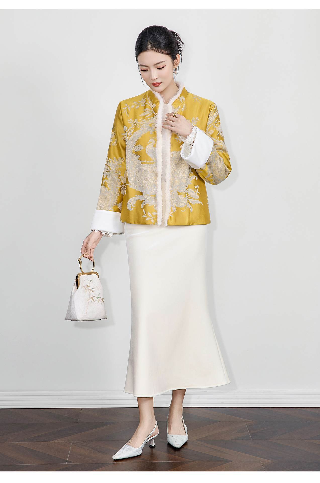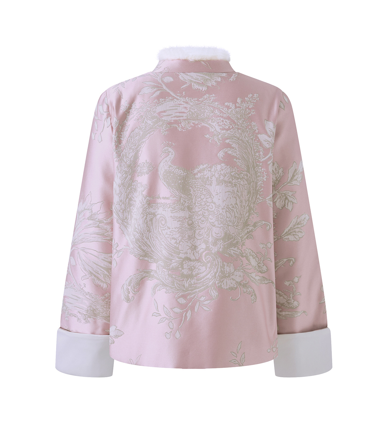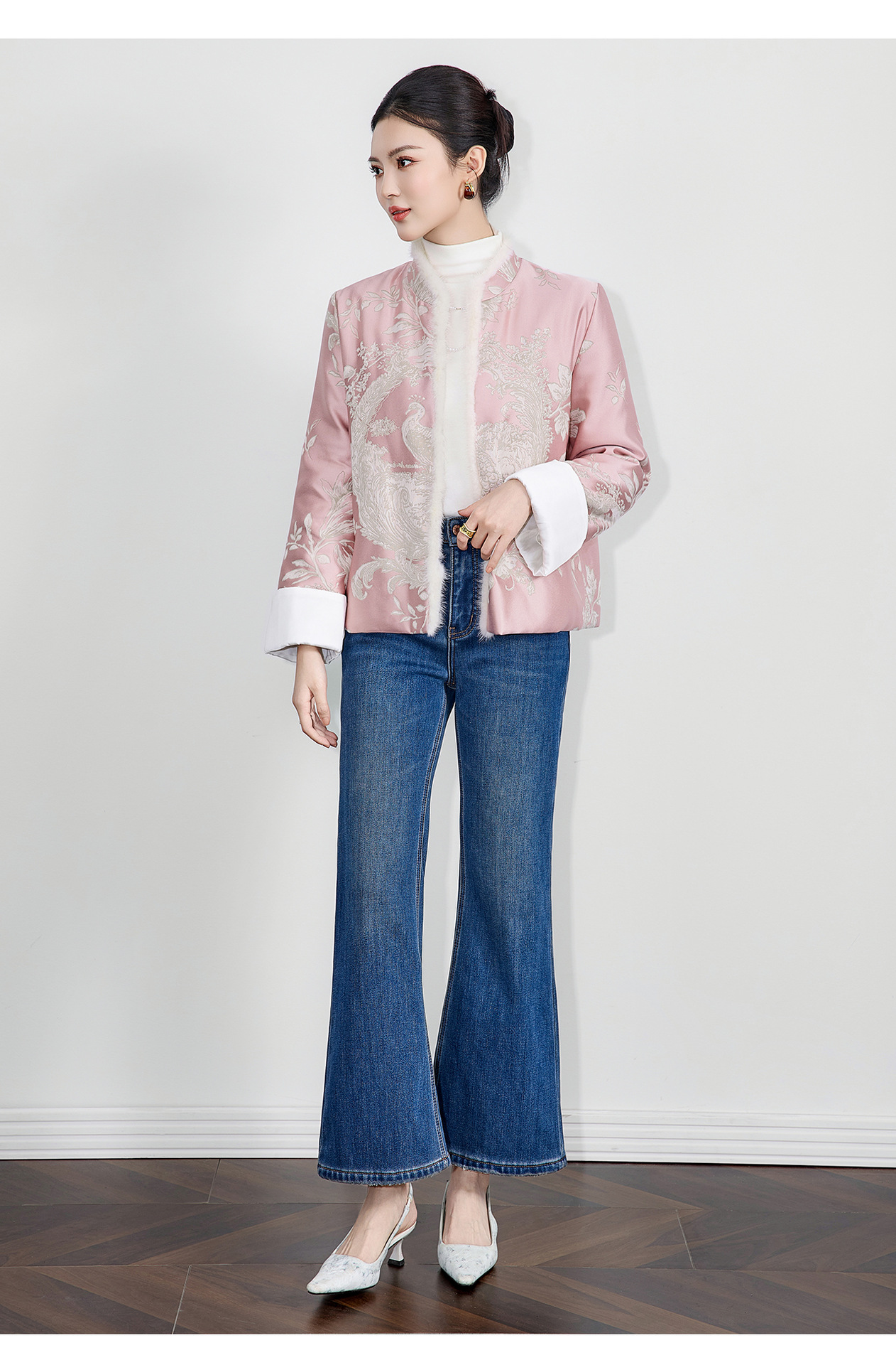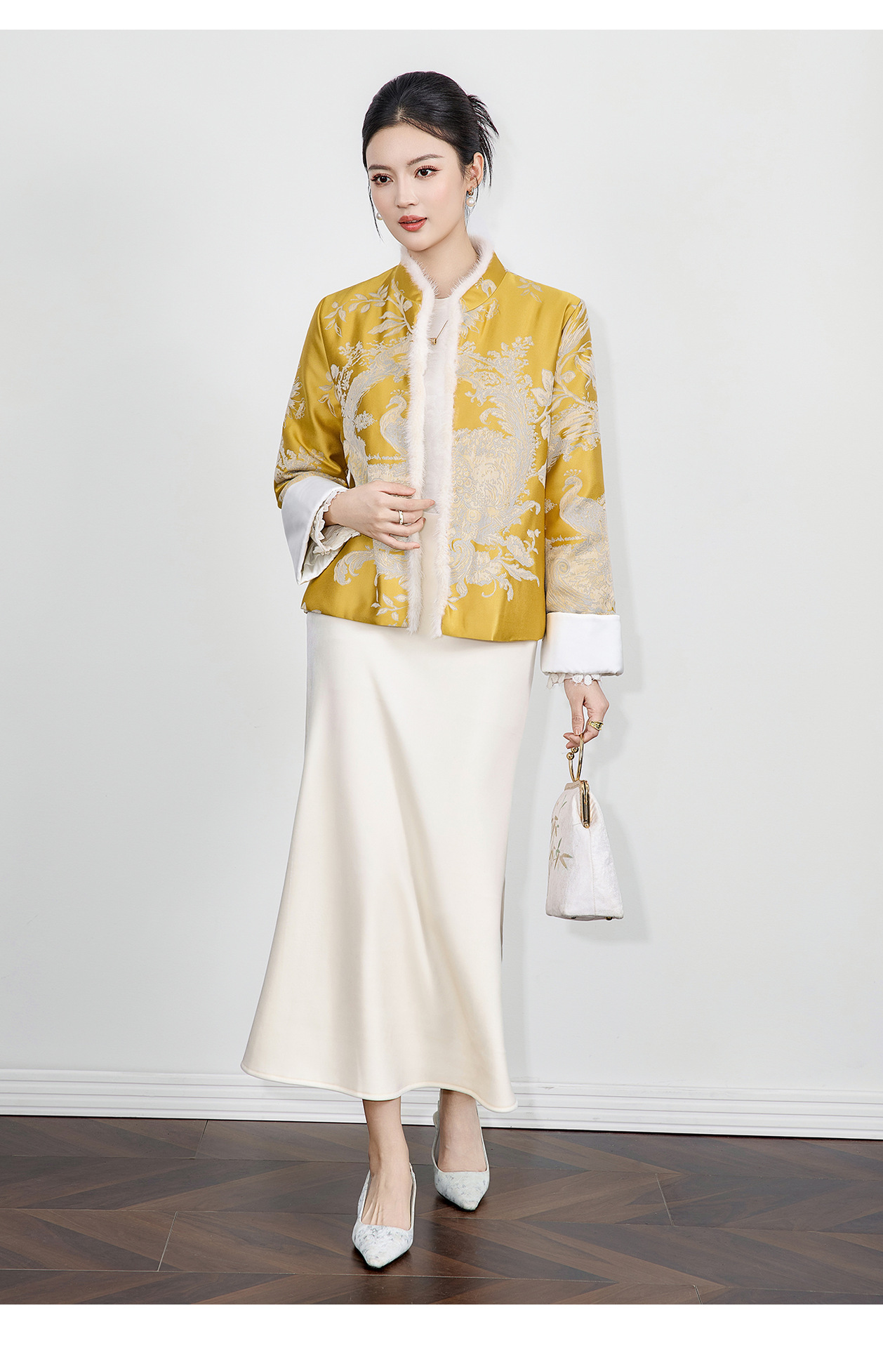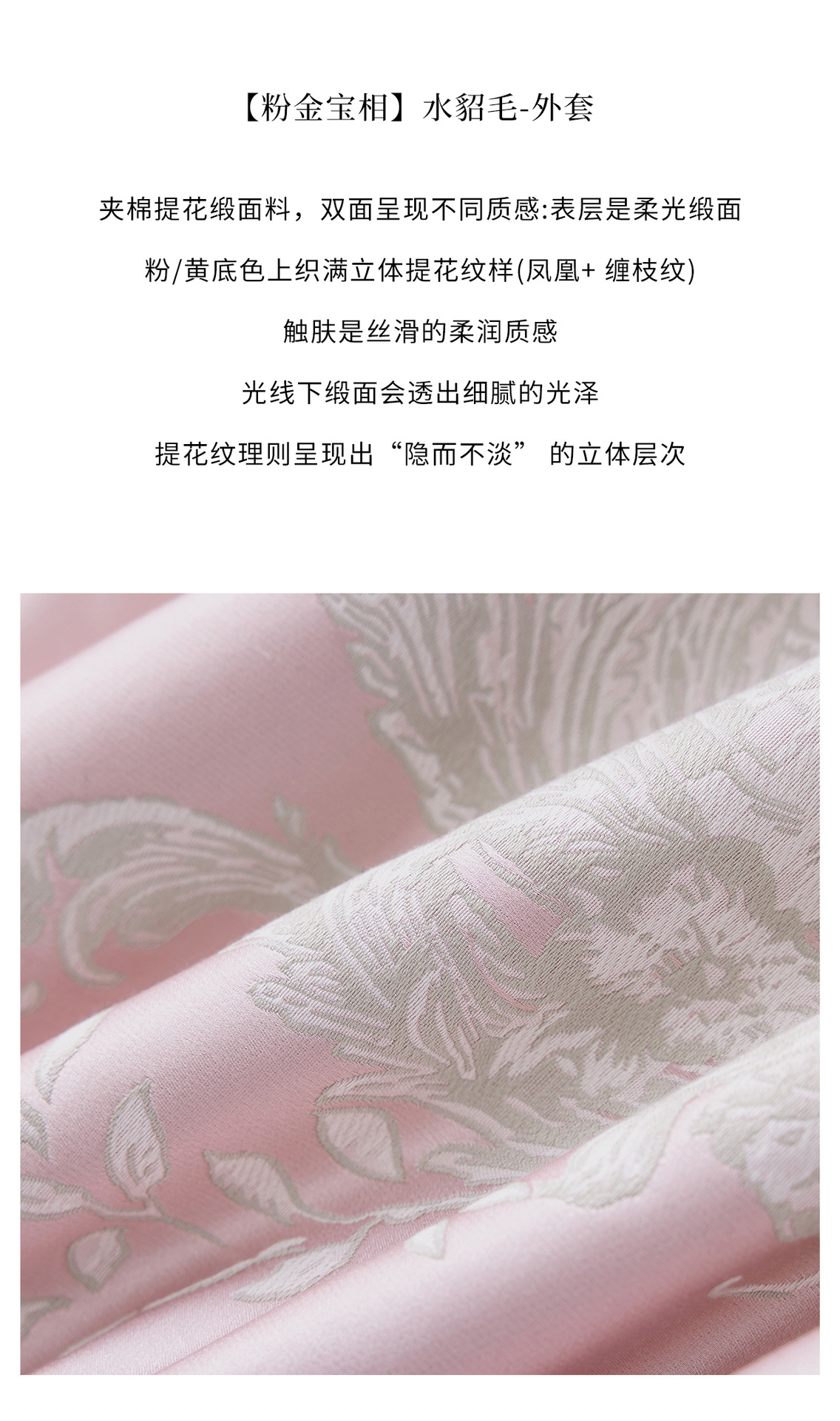 「高货wl」全新升级【铂金会员422/天猫569/差价147】(05147)洛诗琳夹棉提花缎水貂毛拼接外套2025冬季气质国风棉衣女