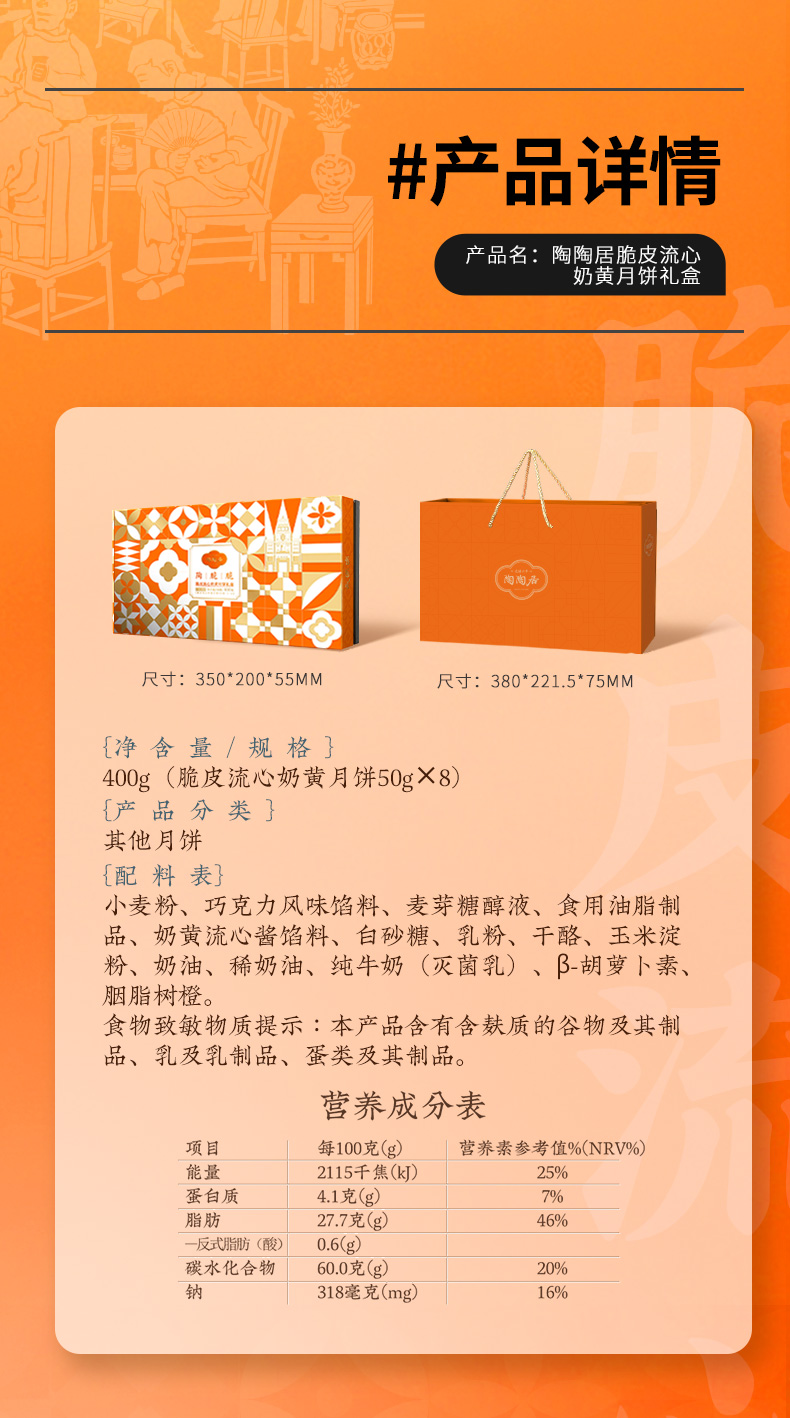 陶陶居陶脆脆脆皮流心奶黄月饼400g