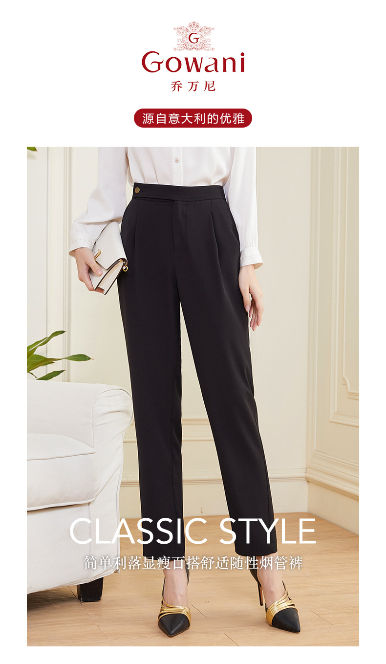 乔万尼黑色裤子夏季女薄款新款梨形身材显瘦长裤DF2F425