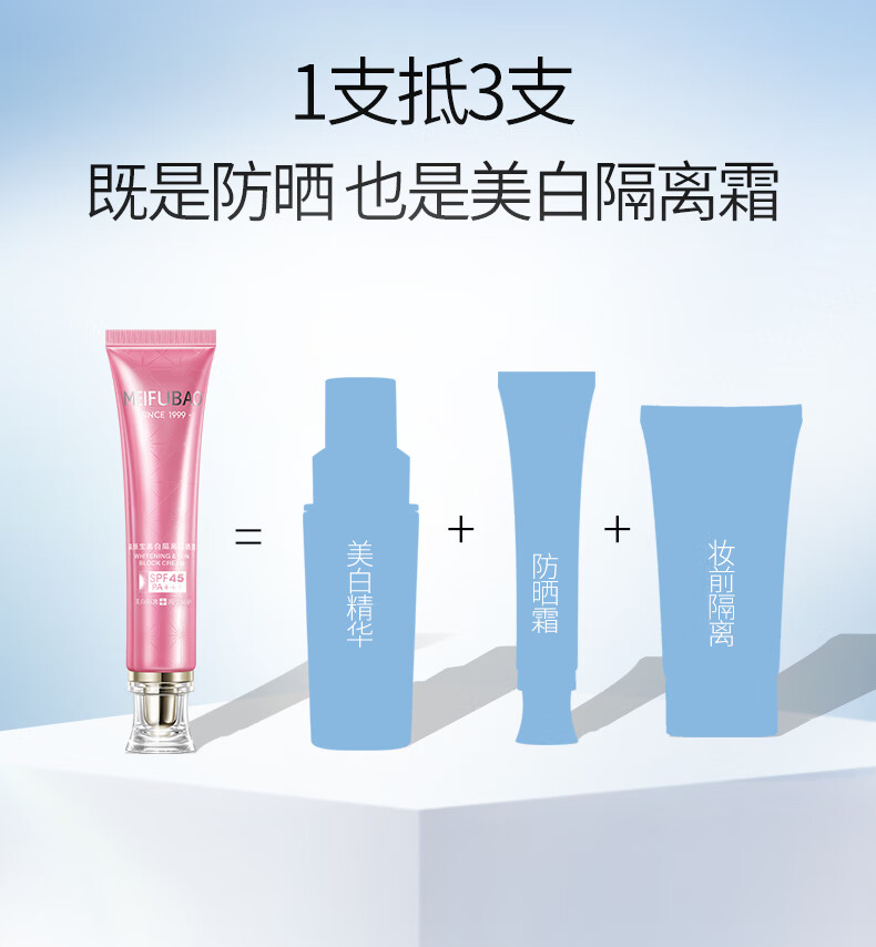 【新升级】美肤宝美白隔离防晒霜套盒(防晒40g+芦荟胶50ml)SPF45 PA+++