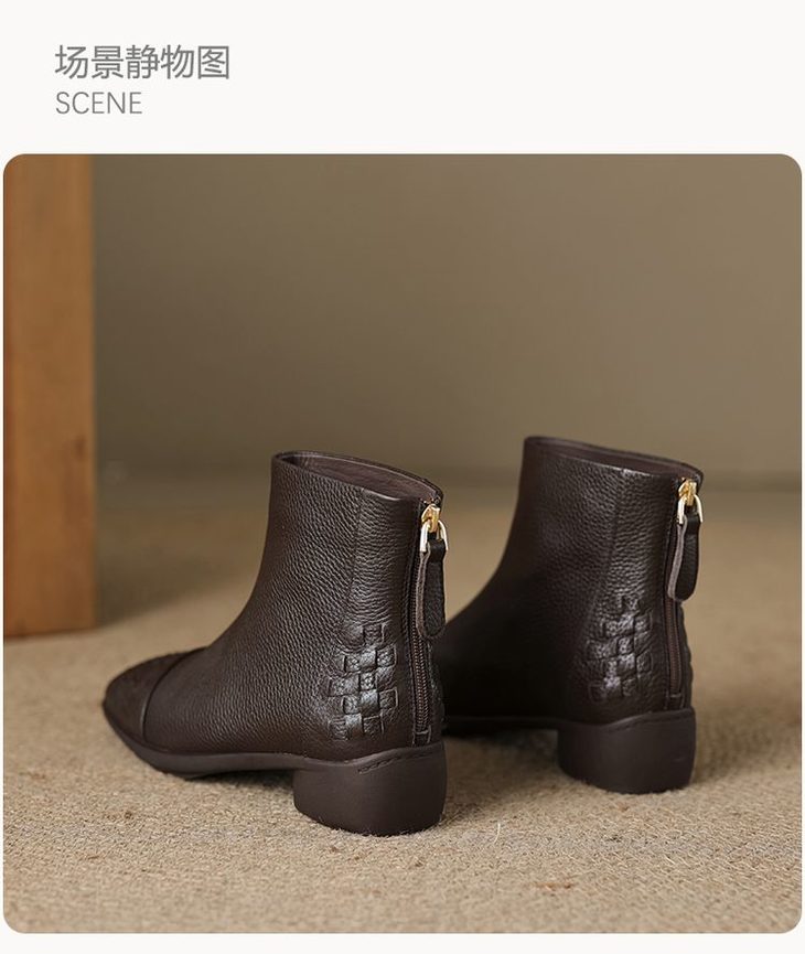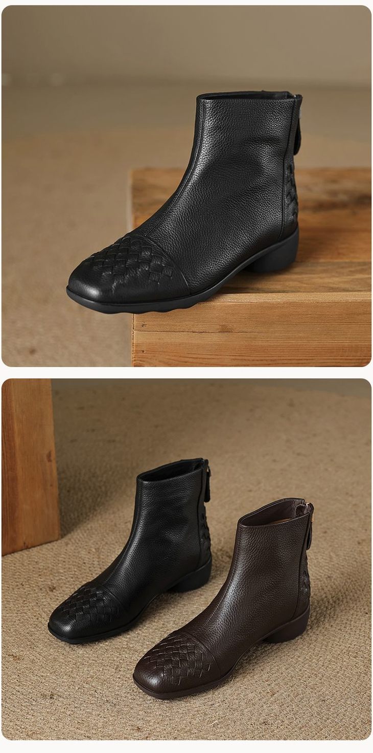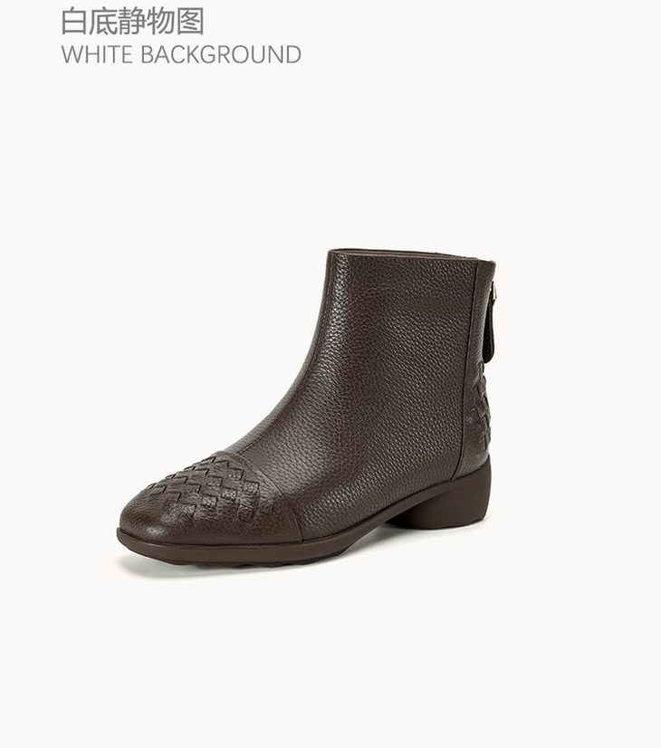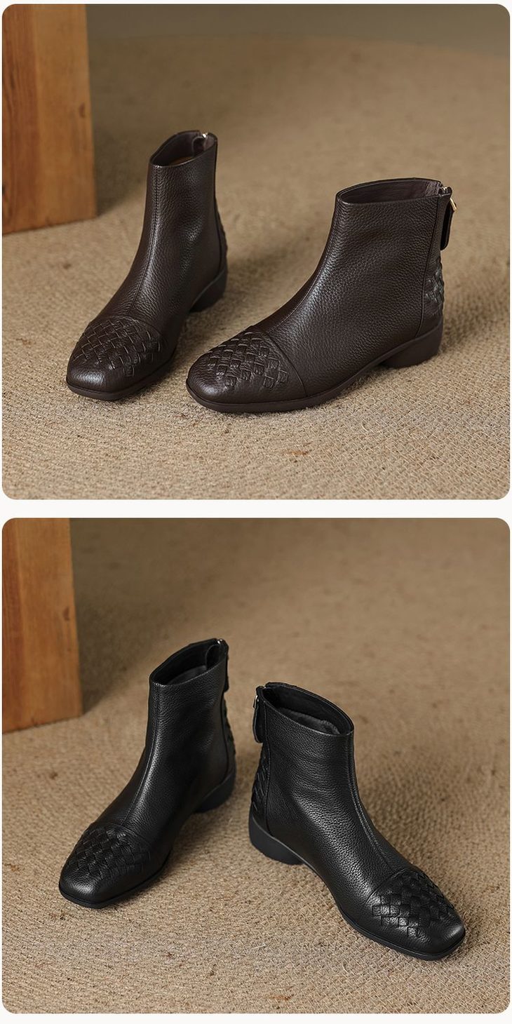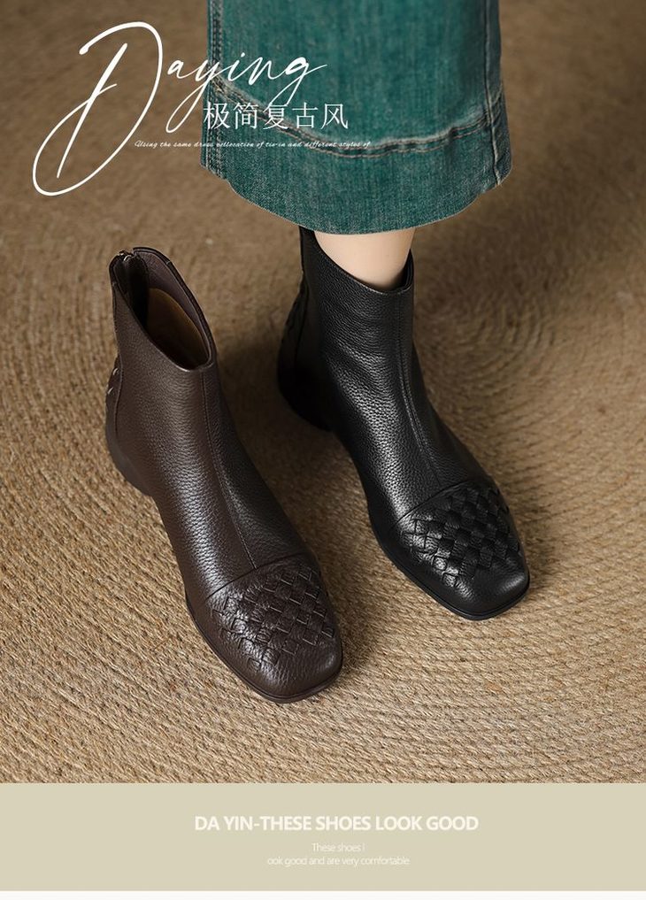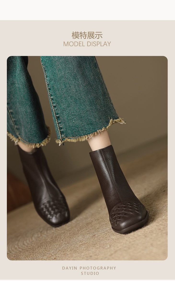 【预售5天】方头马丁靴小众中跟短靴,粗跟编织牛皮女靴子YCJX&HL-6173
