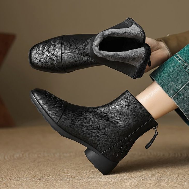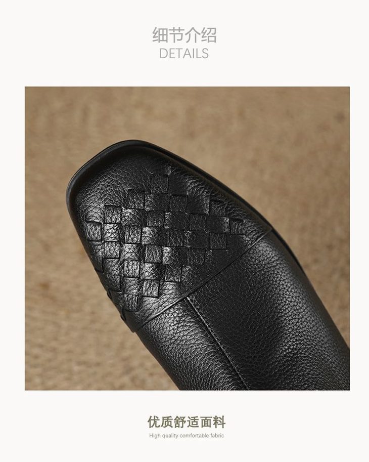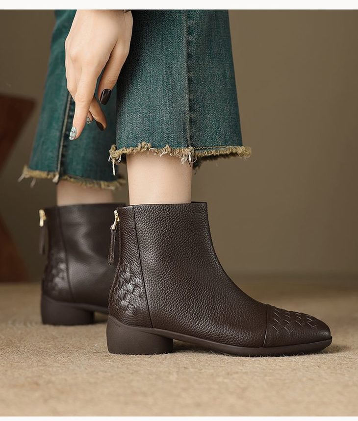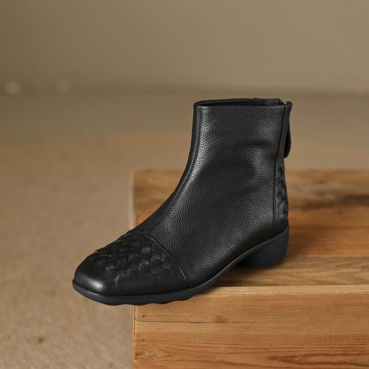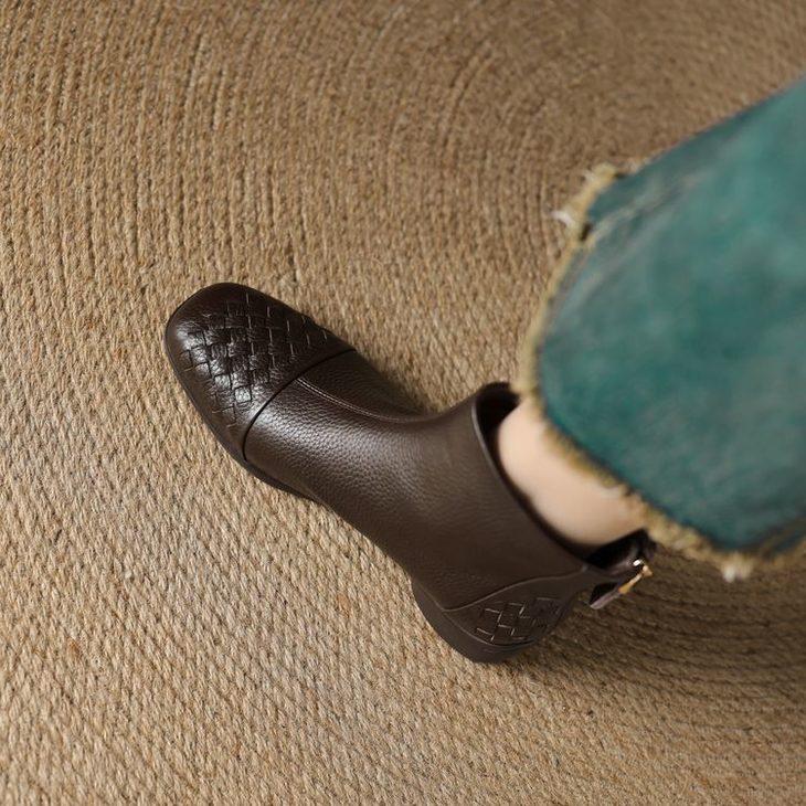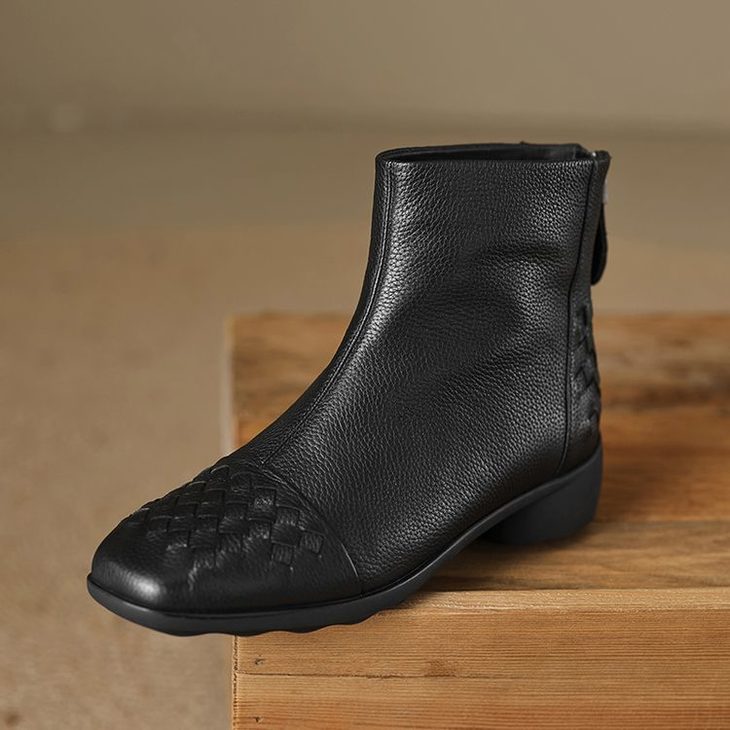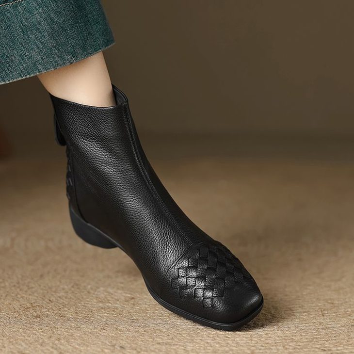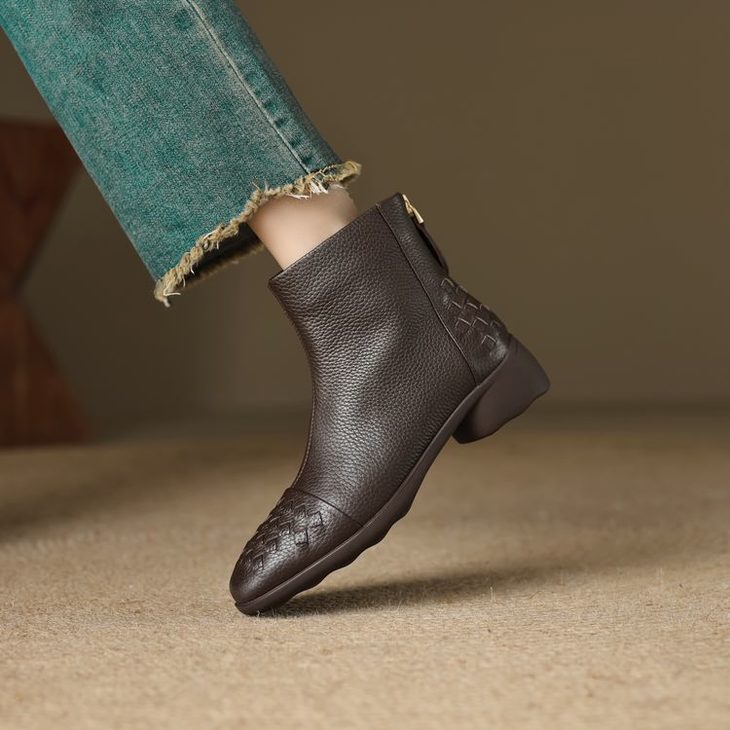 【预售5天】方头马丁靴小众中跟短靴,粗跟编织牛皮女靴子YCJX&HL-6173