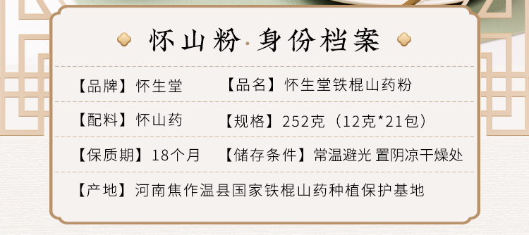 【2袋装】 怀生堂铁棍山药粉 健脾养胃 滋精固肾 疗五劳七伤 100%纯铁棍山药粉 252克