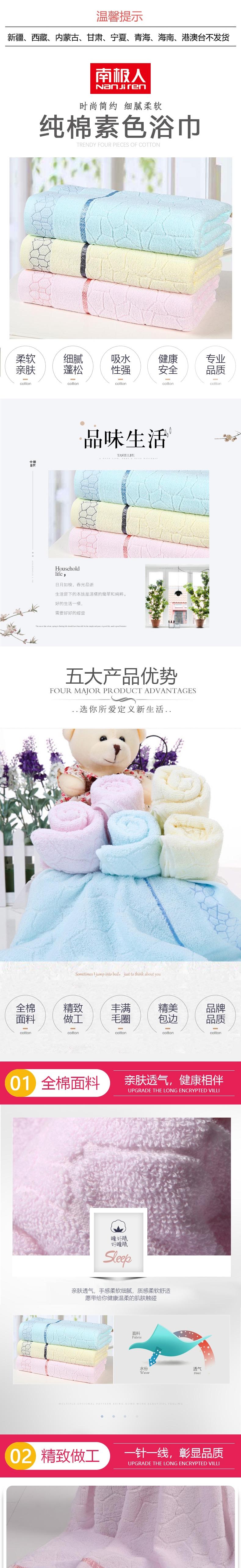 南极人 浴巾家用纯棉素色吸水速干柔软浴巾70*140cm N08005-2