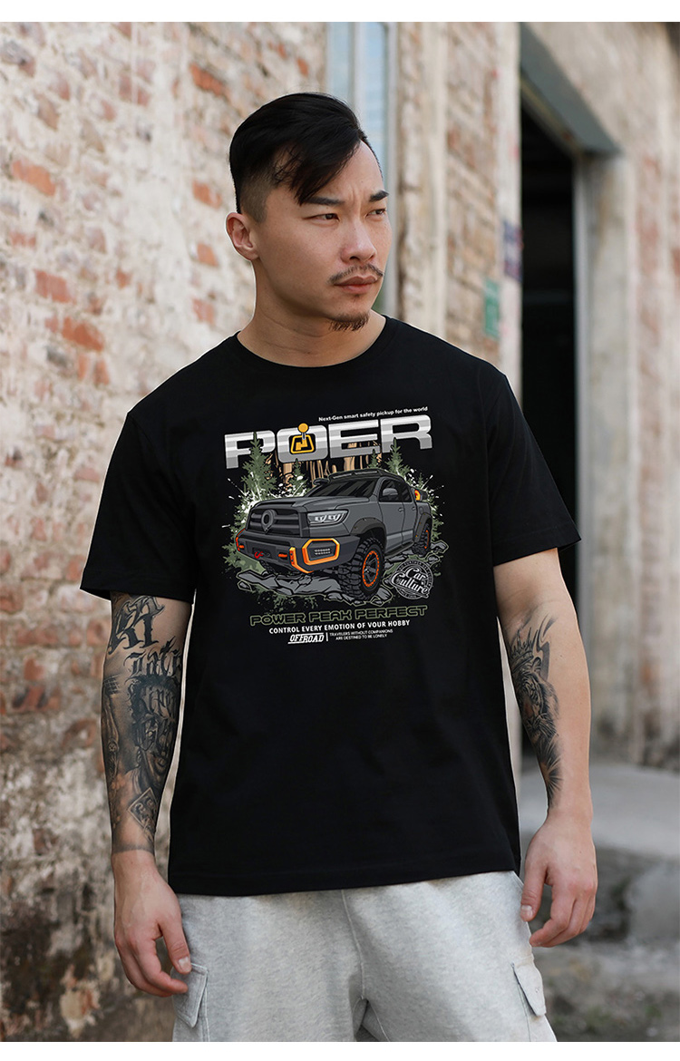 自由基地男士弹力棉短袖T恤夏季半袖汗衫原创长城炮黑弹图案印花 NMT-1863