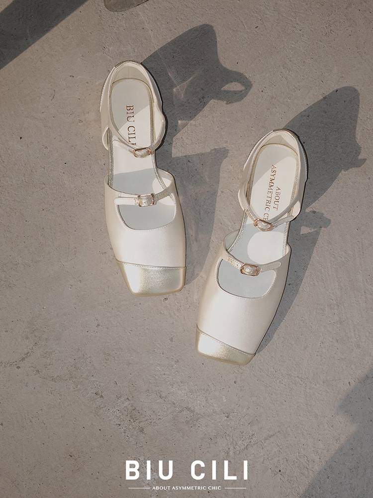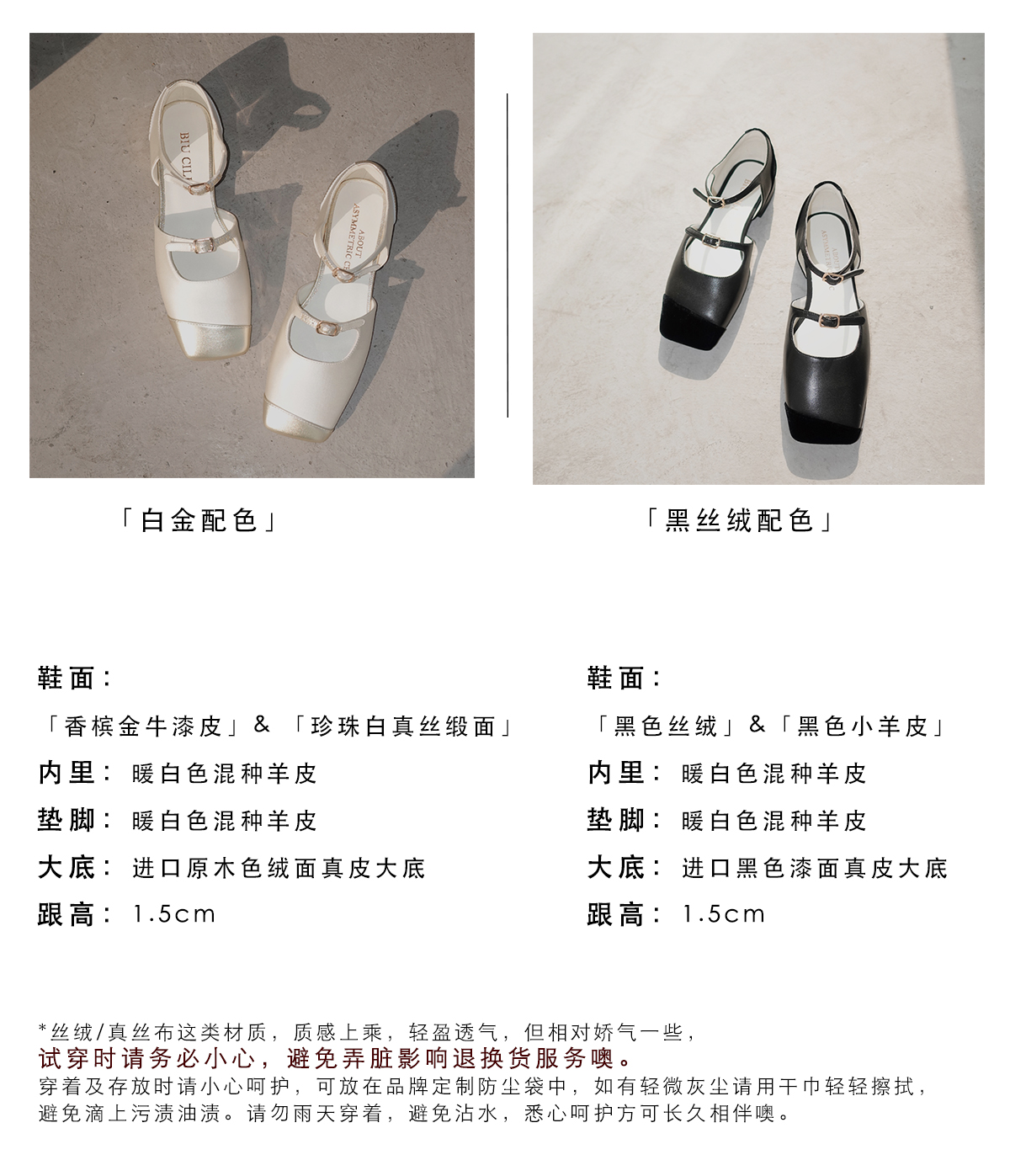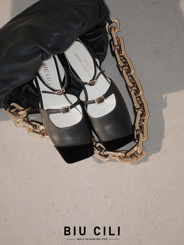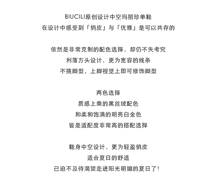 BIUCILI 原创设计 新中式丝绒真丝布芭蕾舞鞋中空玛丽珍女单鞋