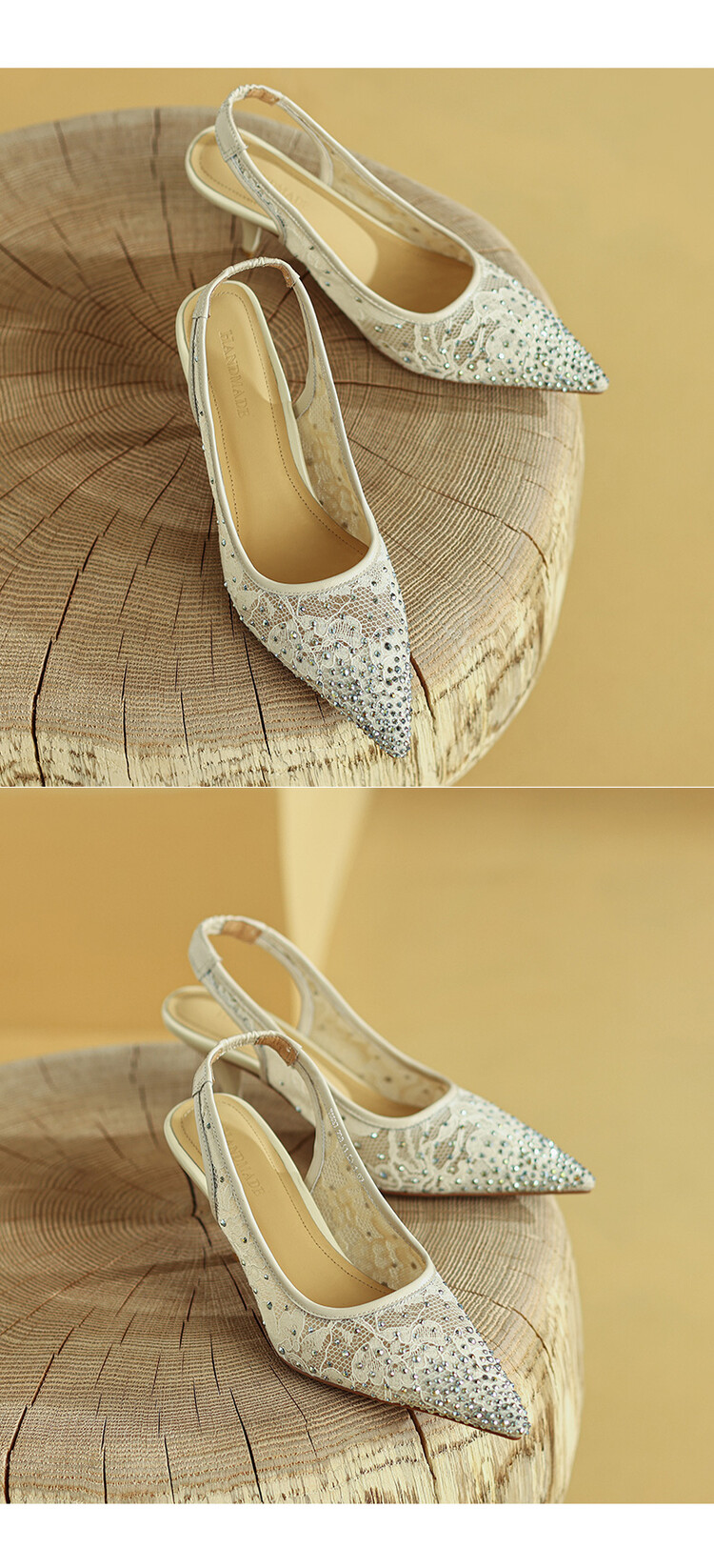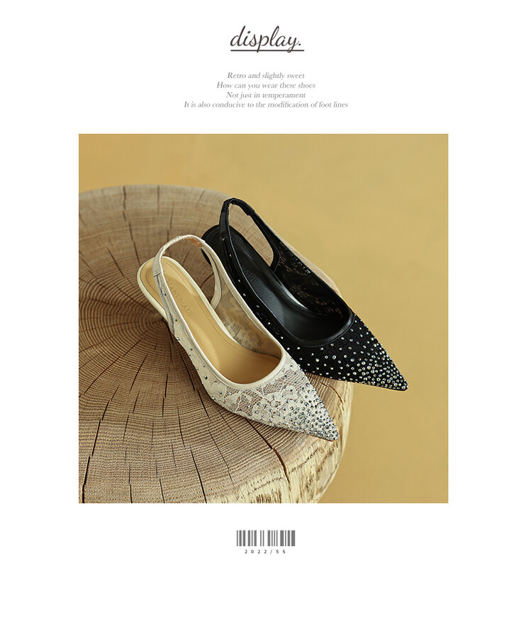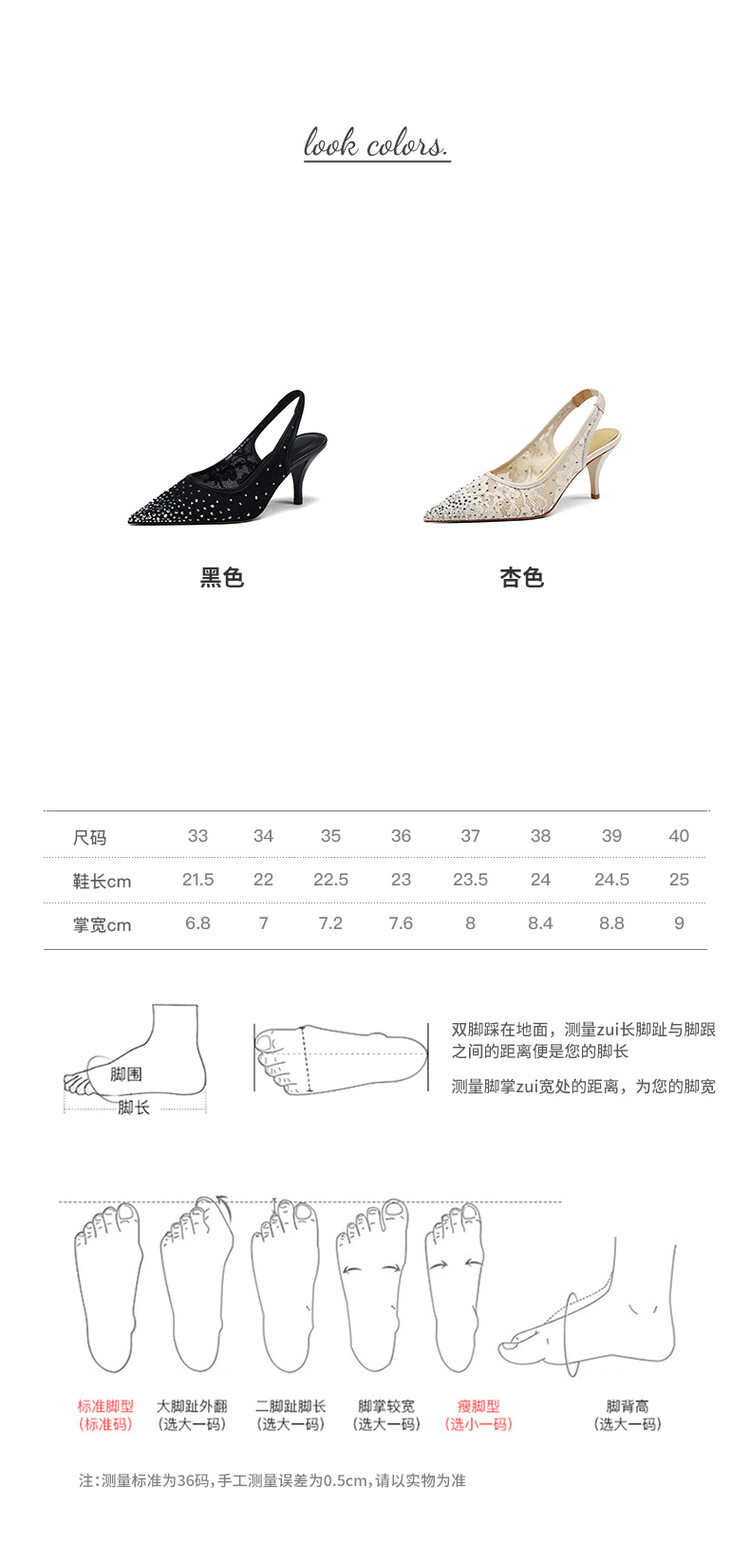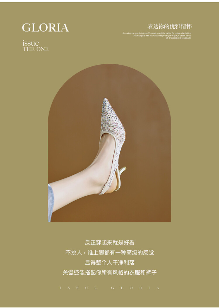 包头尖头亮片,职业杏色淑女鞋高跟凉鞋 OFSM-6537